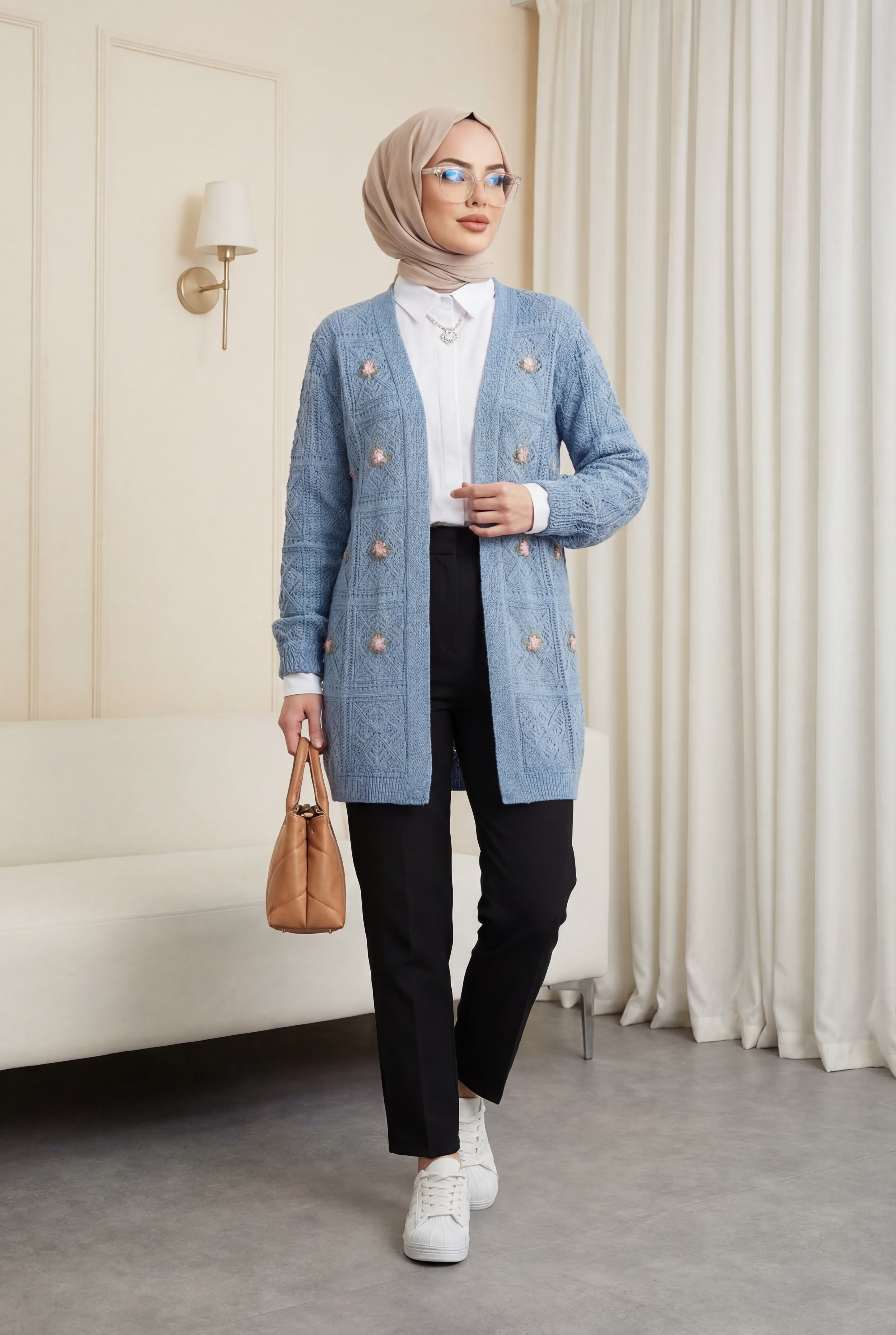 يُعد نموذج كارديجان كارديغان المخرم والمطرز بالأزهار من بين أشهر الموديلات في الموسم الجديد.