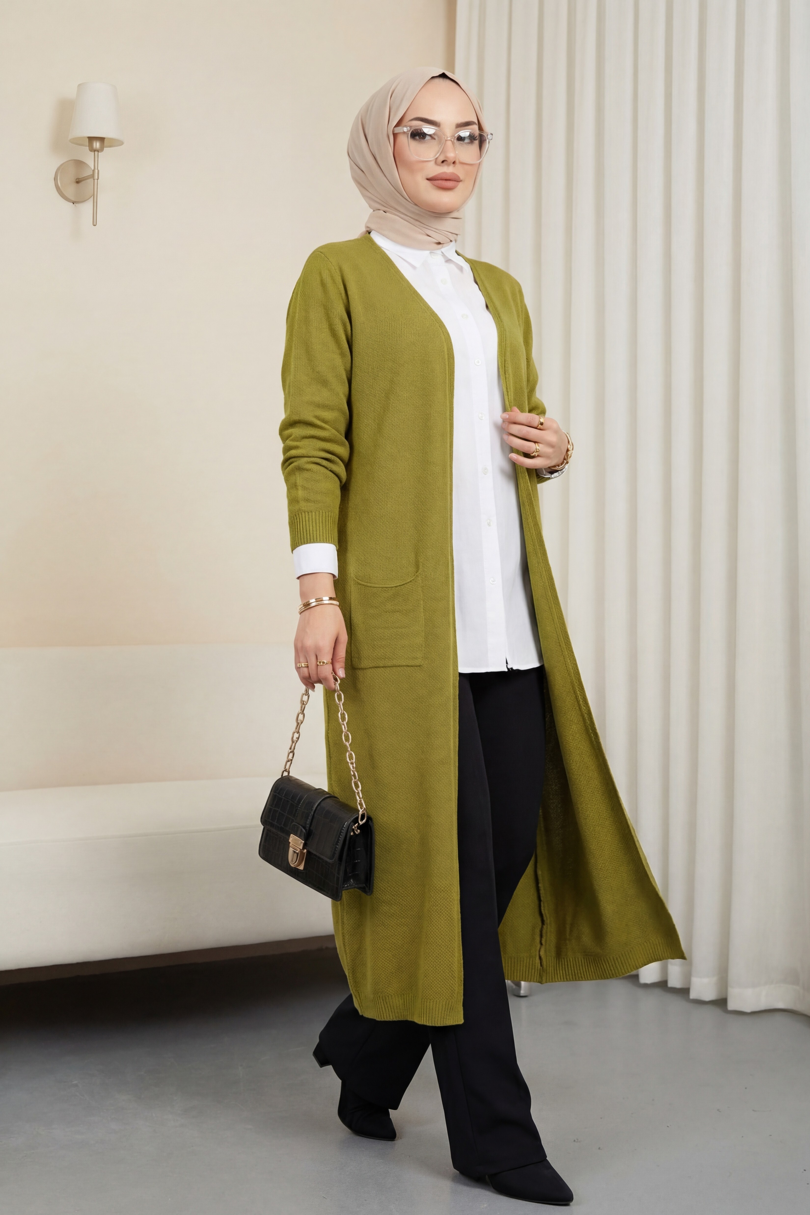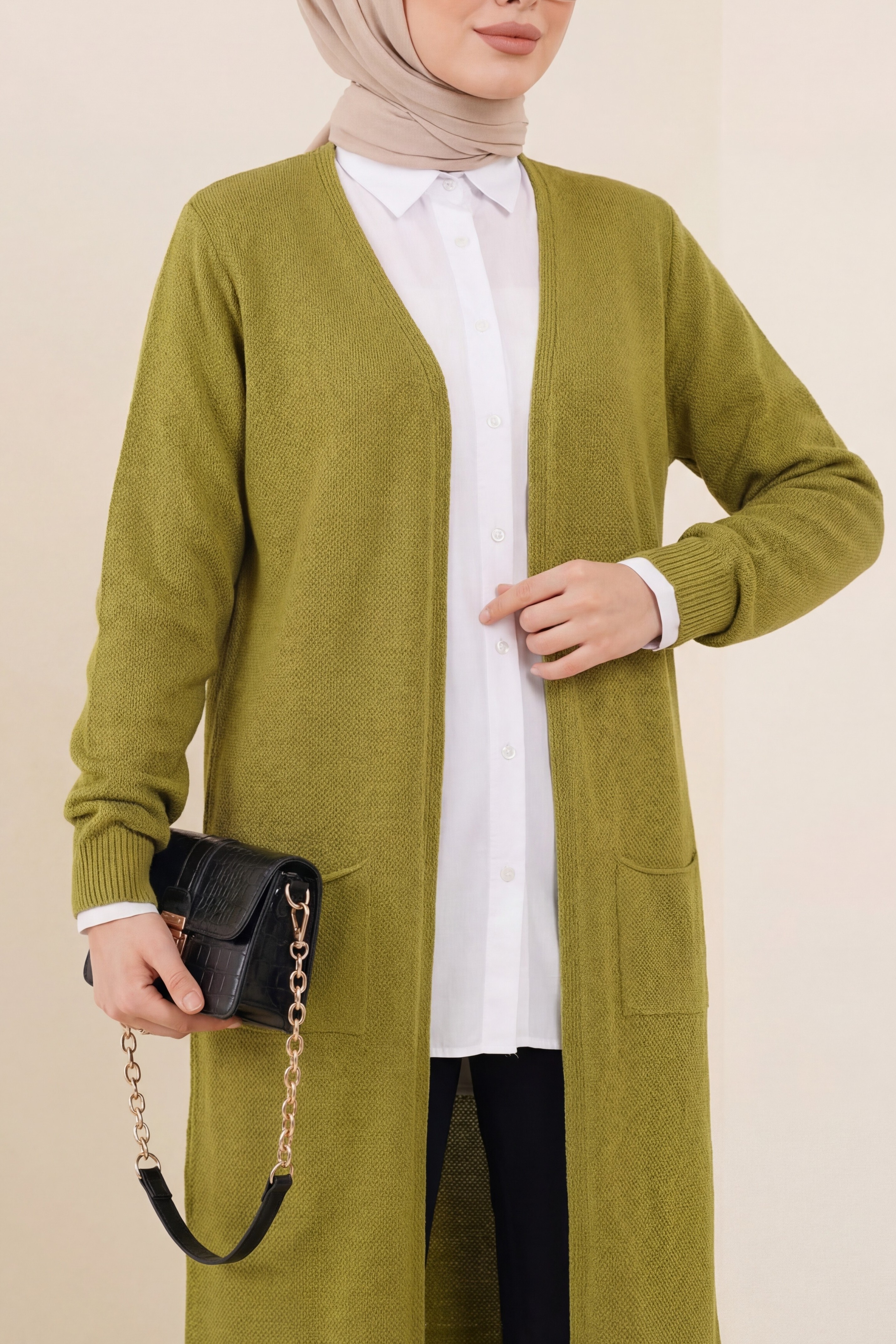 كارديجان طويل الجيب -زيت أخضر