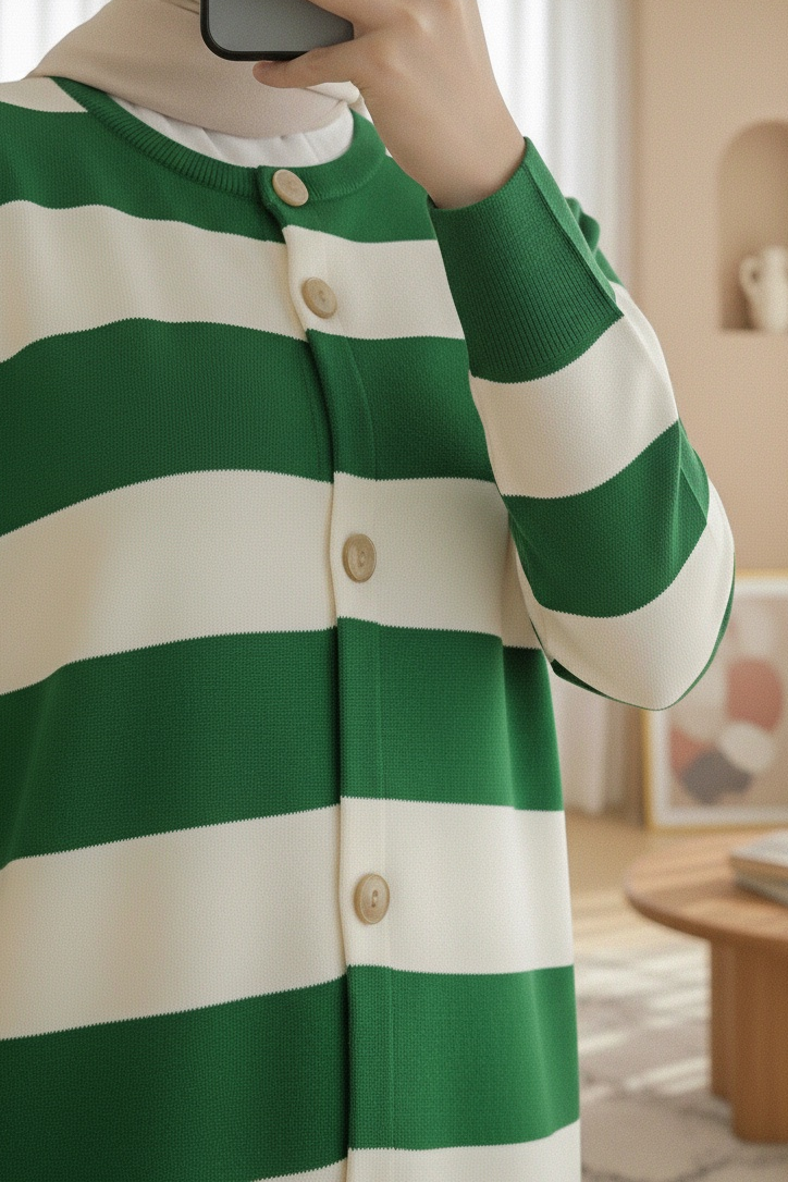 كارديغان واسع مع أزرار معدنية حلزونية وقماش محبوك من الصلب هو قطعة عصرية تجمع بين الأناقة والراحة. تضيف تفاصيل الأزرار المعدنية لمسة أنيقة، بينما يوفر القماش المحبوك من الصلب مظهرًا متينًا وأنيقًا. يوفر التصميم الواسع ارتداء مريح وفضفاض، مما يضفي لمسة من الراحة. هذا الكارديغان مثالي للاستخدام اليومي والمناسبات الأنيقة، مما يجعله إضافة رائعة لخزانتك.
