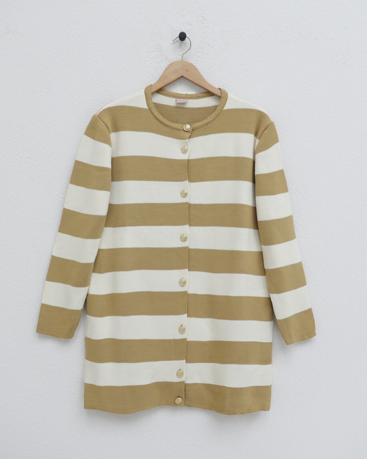 كارديغان واسع مع أزرار معدنية حلزونية وقماش محبوك من الصلب هو قطعة عصرية تجمع بين الأناقة والراحة. تضيف تفاصيل الأزرار المعدنية لمسة أنيقة، بينما يوفر القماش المحبوك من الصلب مظهرًا متينًا وأنيقًا. يوفر التصميم الواسع ارتداء مريح وفضفاض، مما يضفي لمسة من الراحة. هذا الكارديغان مثالي للاستخدام اليومي والمناسبات الأنيقة، مما يجعله إضافة رائعة لخزانتك.