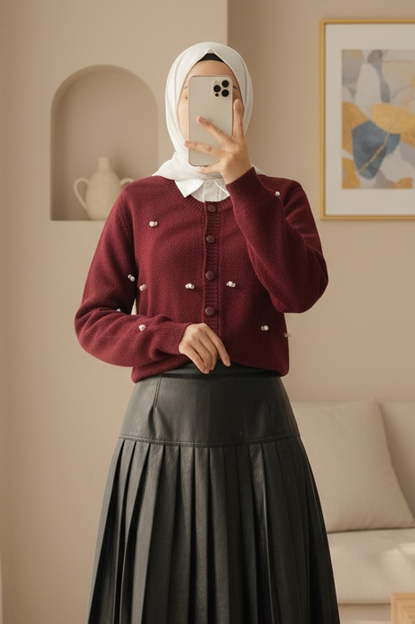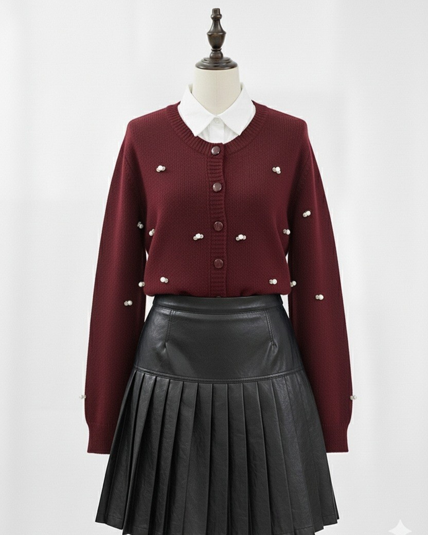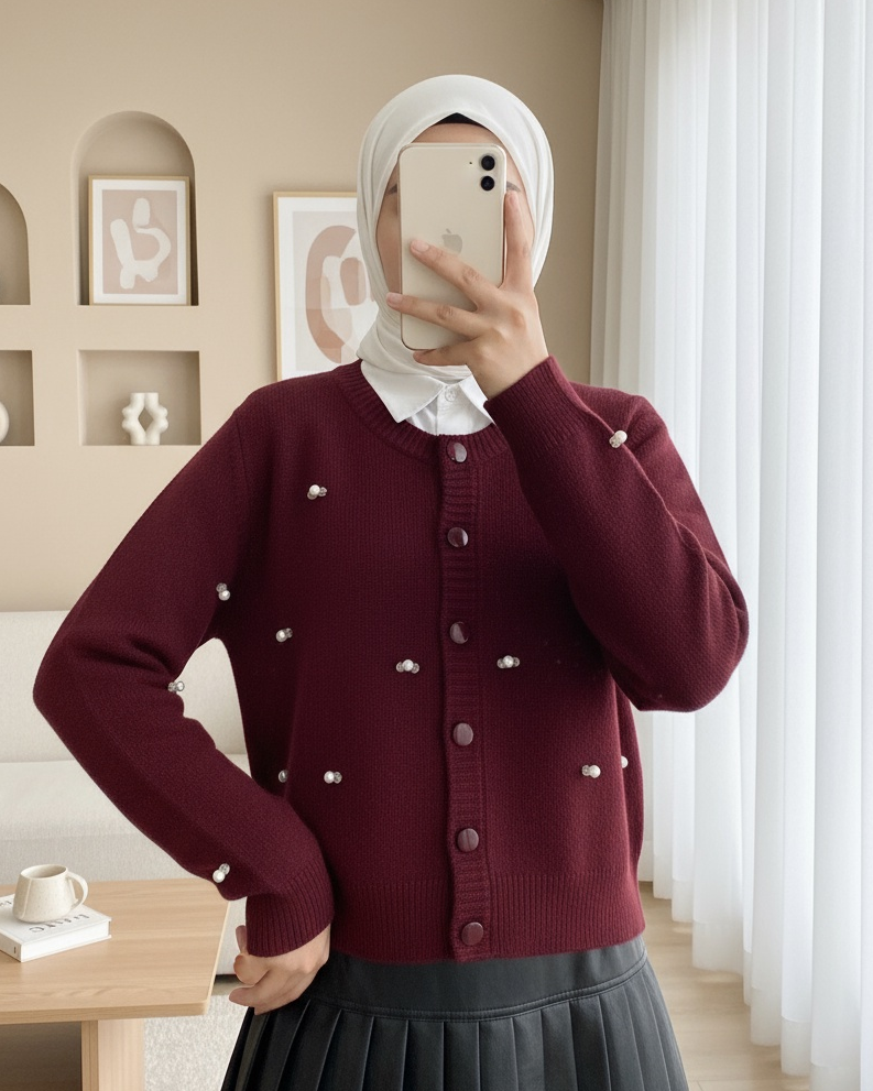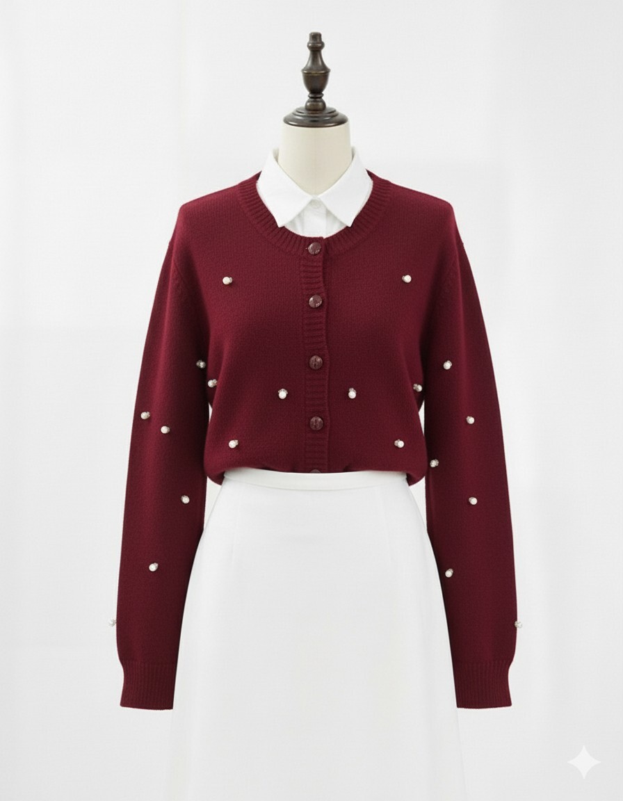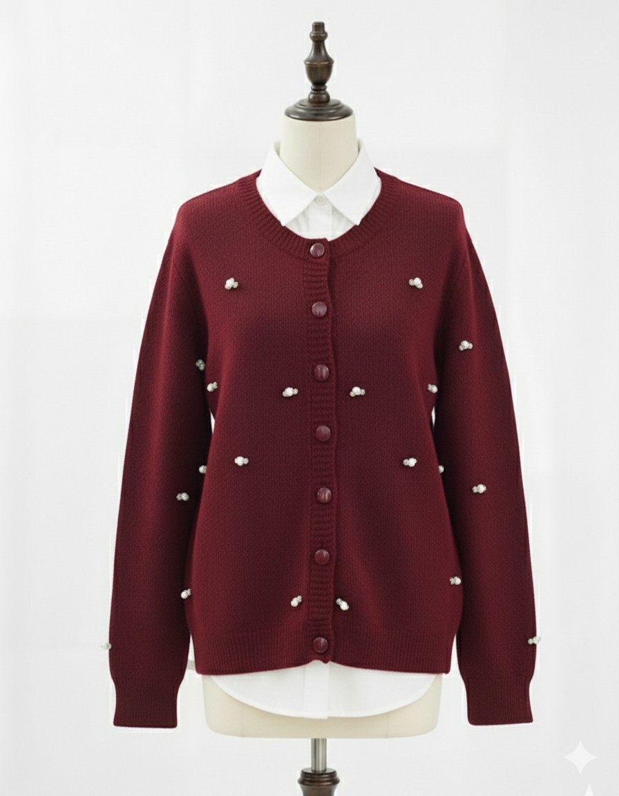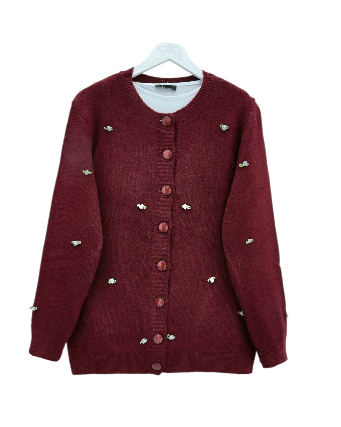كارديجان ناعم مع تفاصيل زهور بأزرار -بوردو