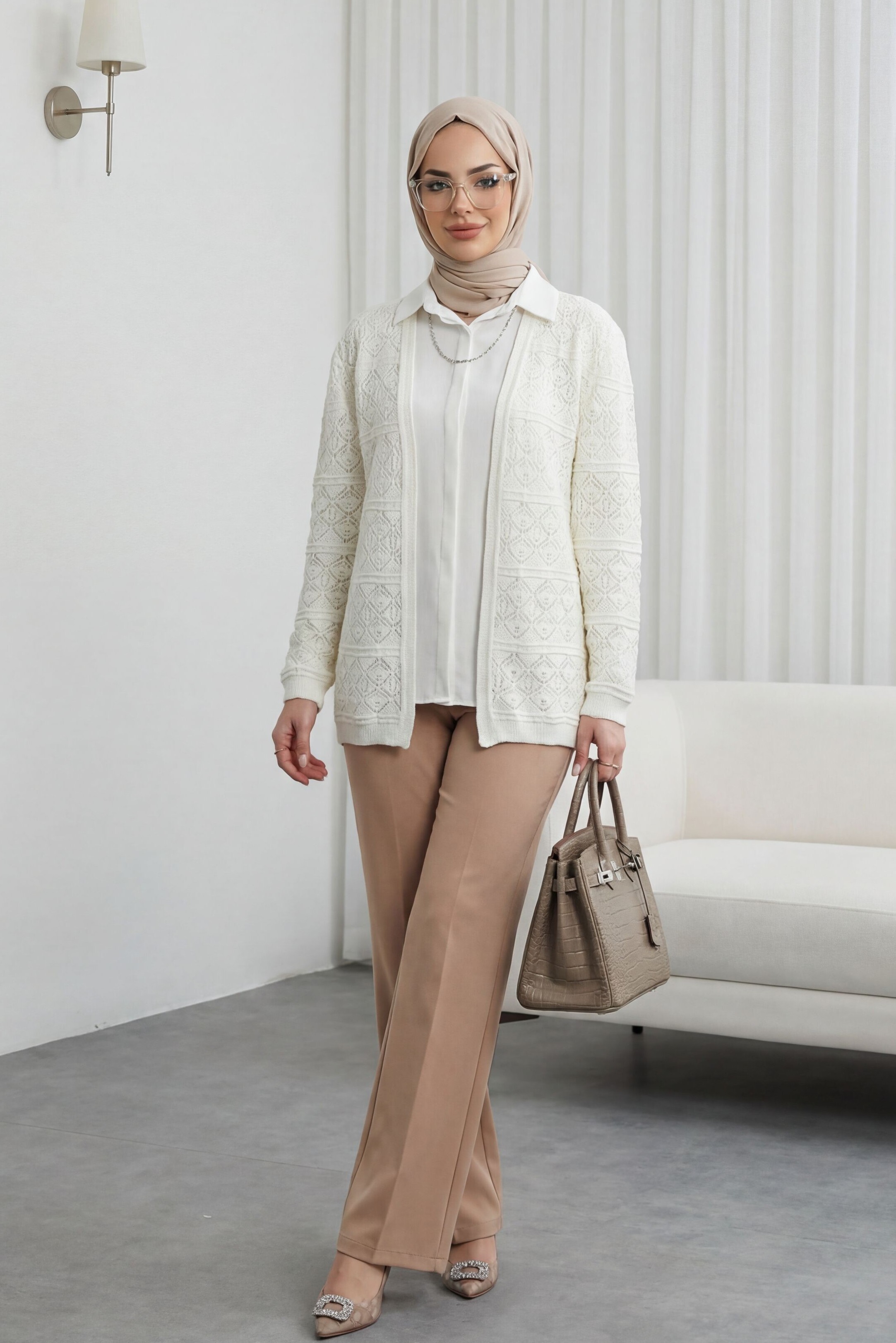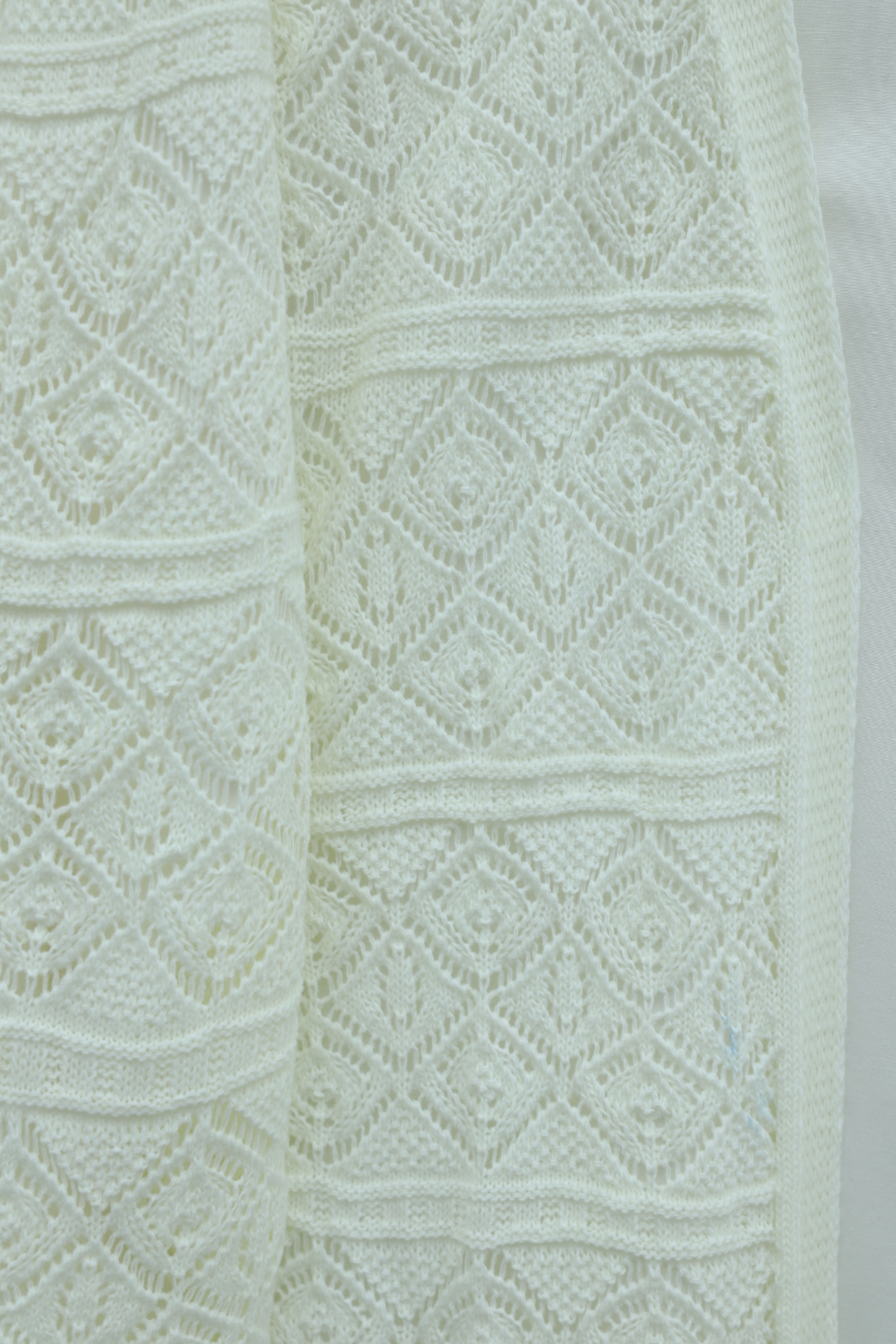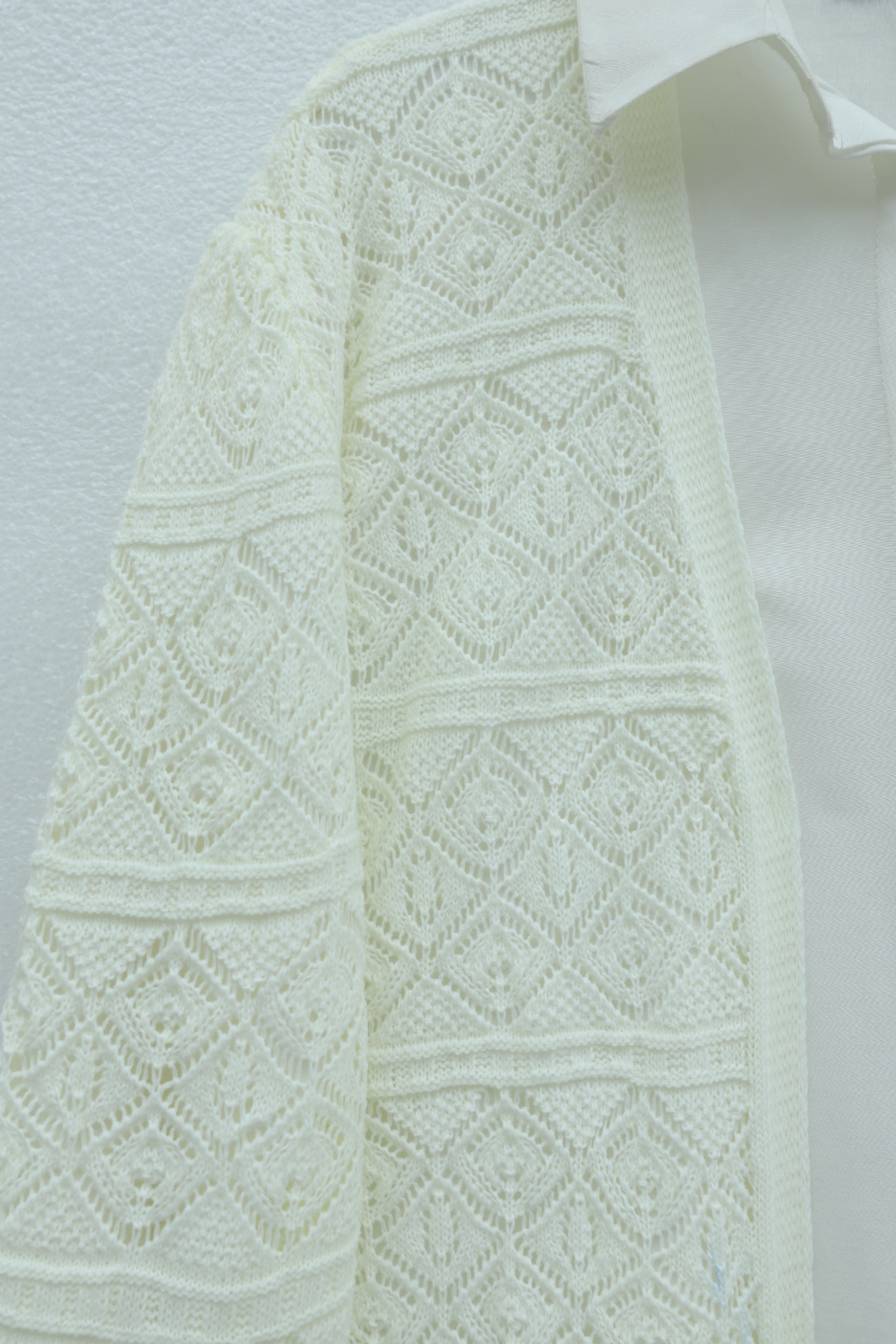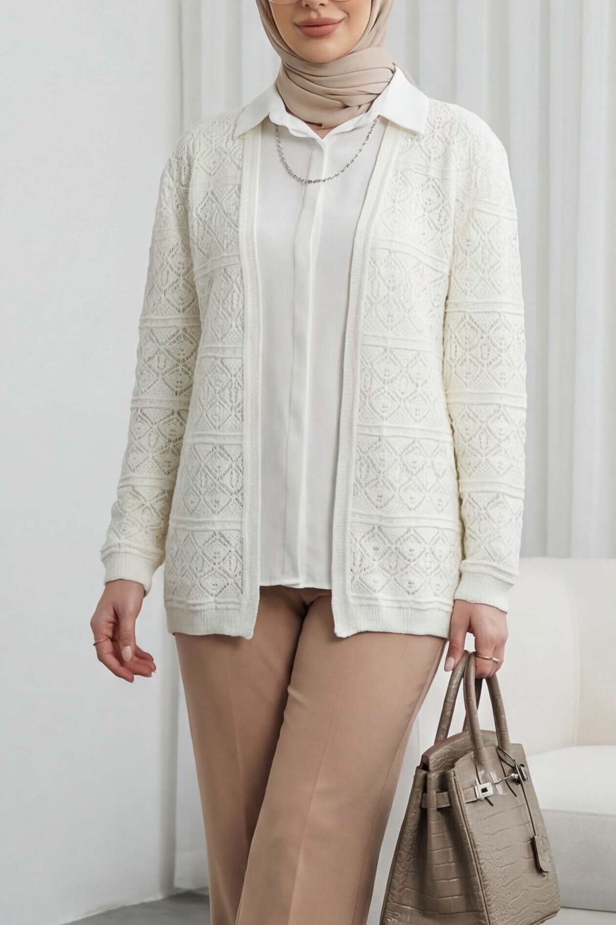كارديجان فضفاض محبوك بنقوش مربعة مفتوحة -أبيض