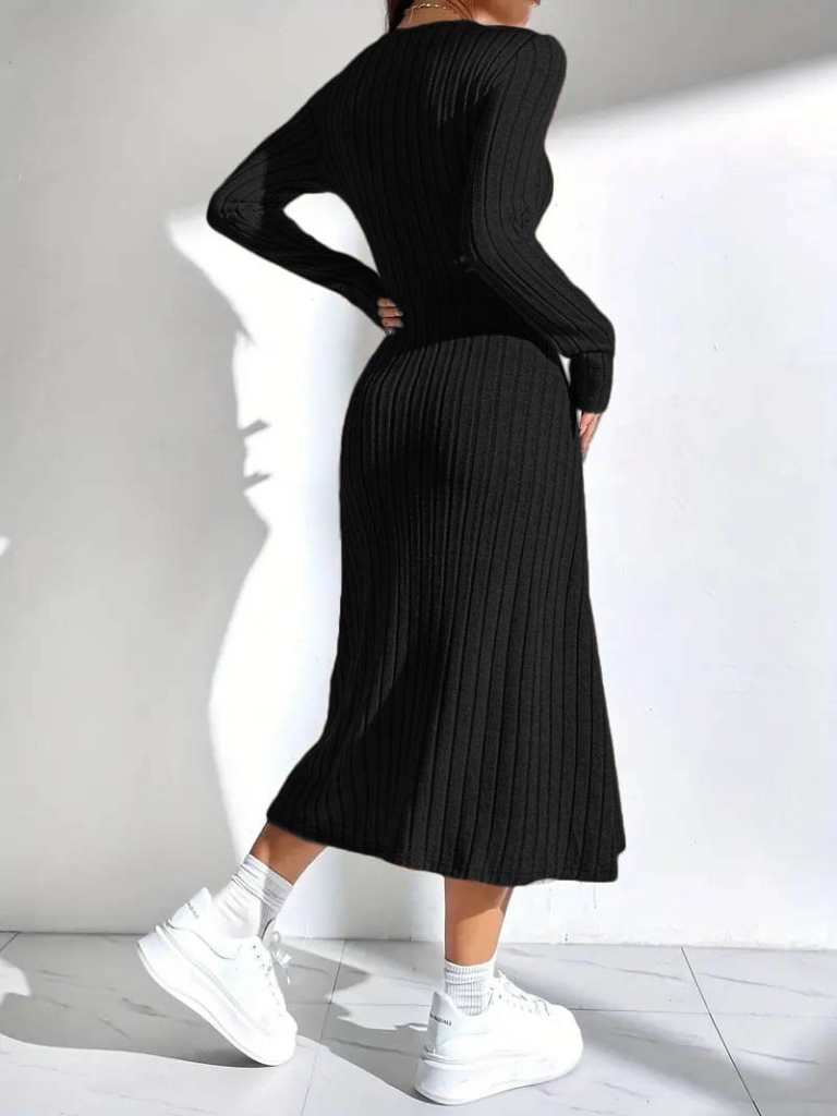 فستان نسائي بأكمام طويلة ورقبة مربعة وقصة متوسطة الطول وقميص داخلي مرتفع، رمز المخزون: 135330