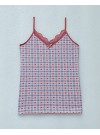 قميص داخلي من الدانتيل بنقشة الكرز مع أشرطة حبلية -أبيض