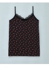 قميص داخلي منقوش بالدانتيل مع أشرطة حبلية -أسود