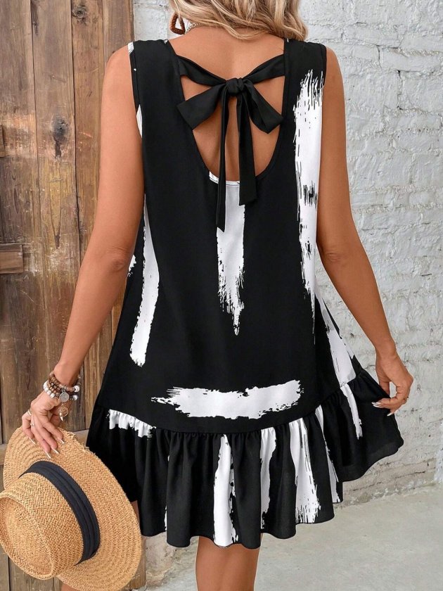 فستان قصير بدون أكمام بياقة دائرية من ماركة Supreme للنساء، مزين بفيونكة خلفية، رمز المنتج: 185756