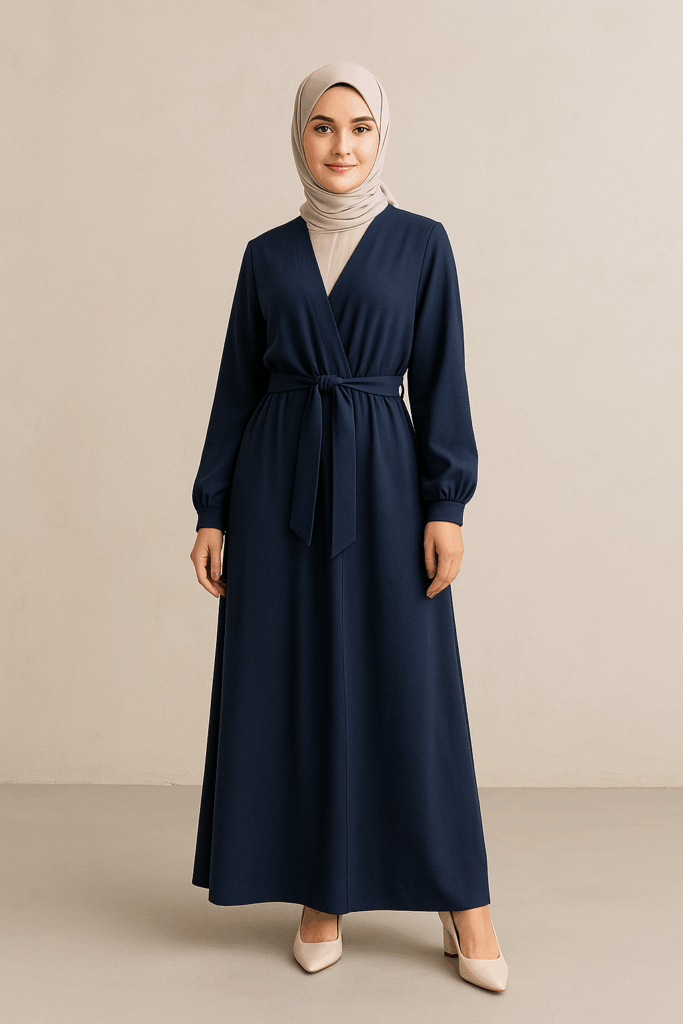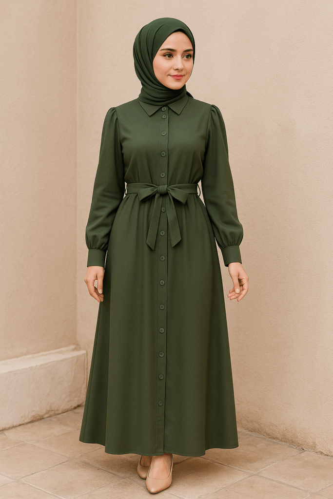 Bel hizasında hafif vurgular oluşturan, omuzları ise minimal detaylarla destekleyen tasarımlar; vücudu daha dengeli ve uzun gösterir. Yüksek bel kemerli elbiseler veya belden itibaren hafif dökümlü kesimler, kısa boylular için tesettür giyim kombin önerileri arasında her zaman avantaj sağlar. Böylece hem bel hattı vurgulanır hem de boy algısı yukarı doğru çekilir.