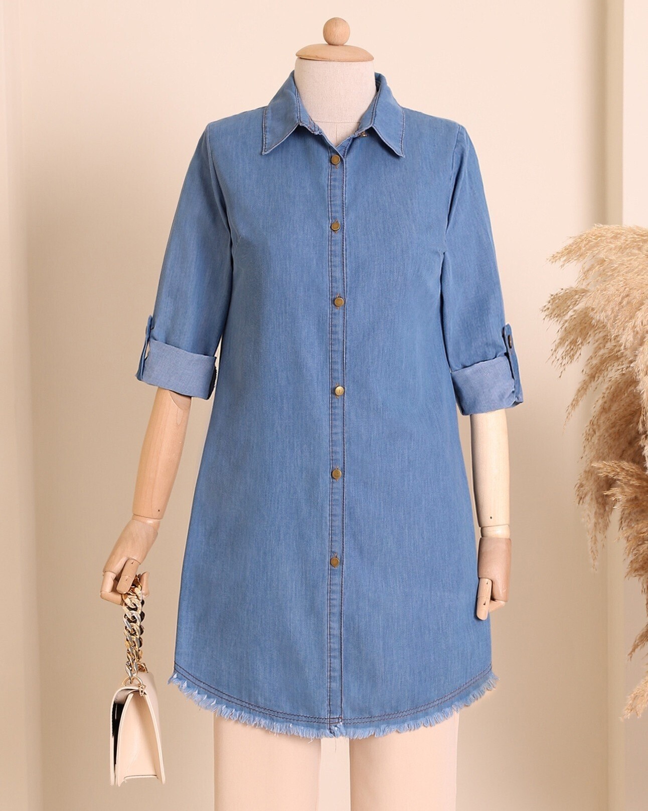 Önden düğmeli, etek ucu püsküllü, kolu katlamalı tunik modelimiz yeni sezonun en çok sevilen modelleri arasında yer almaktadır.