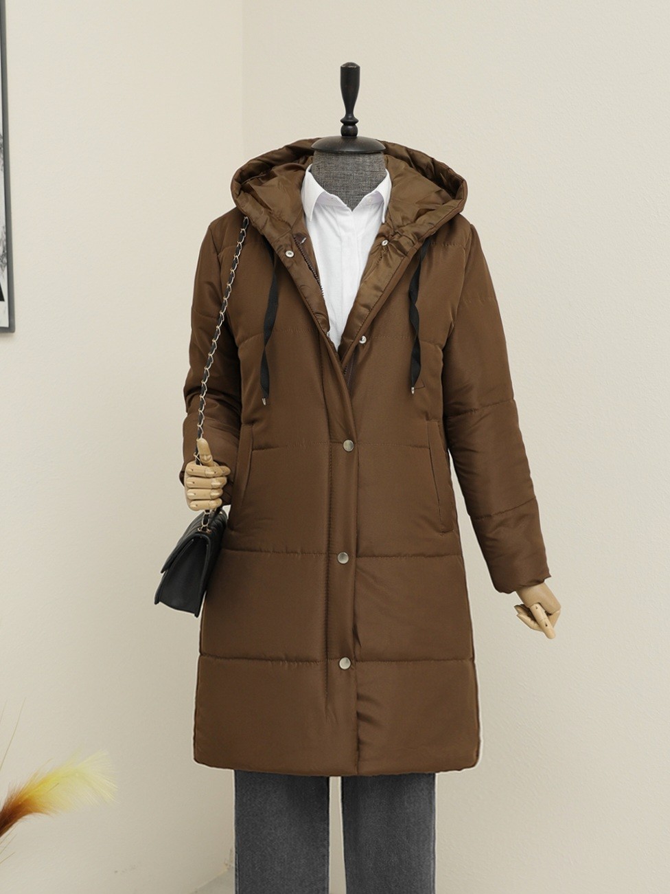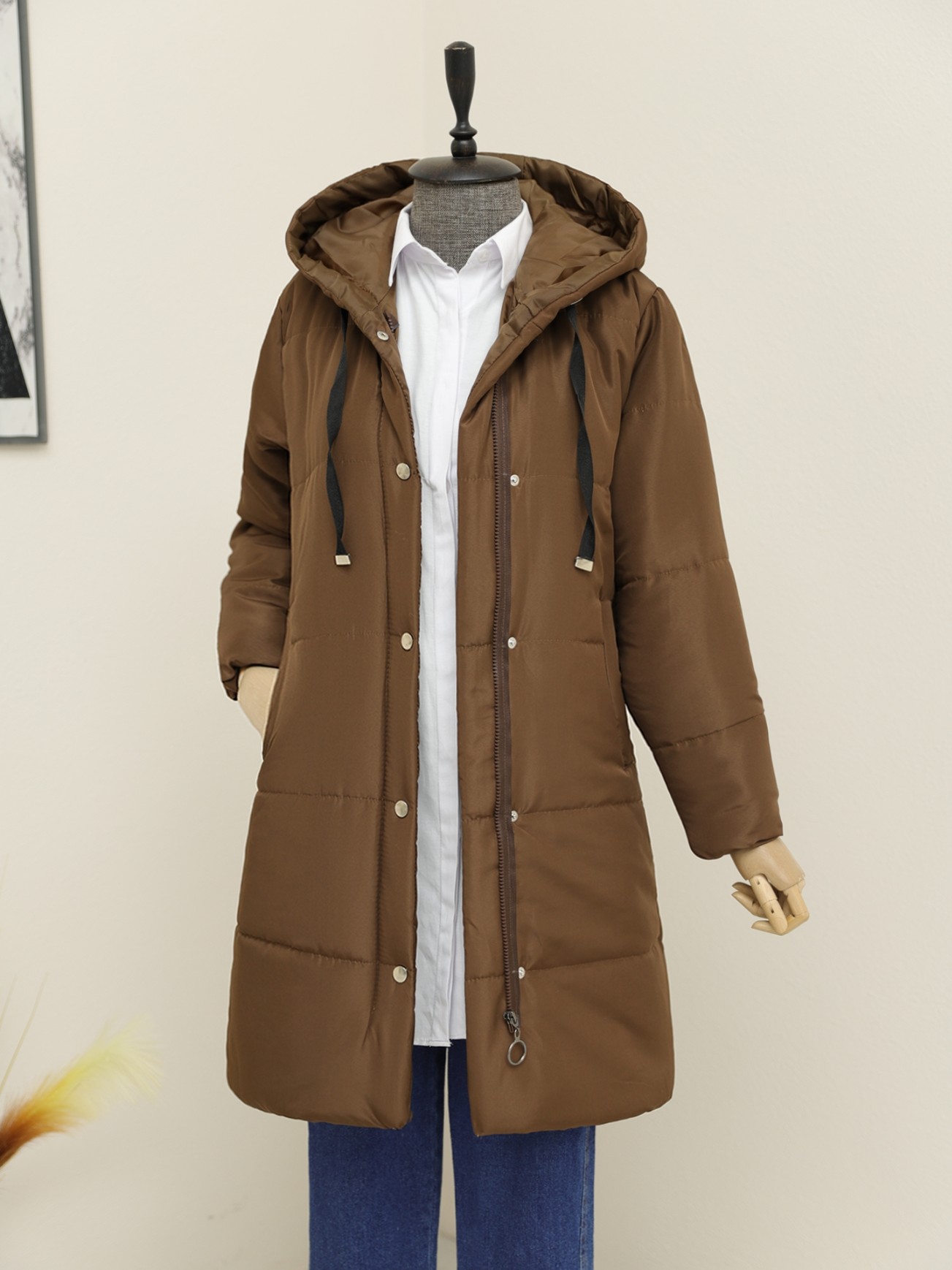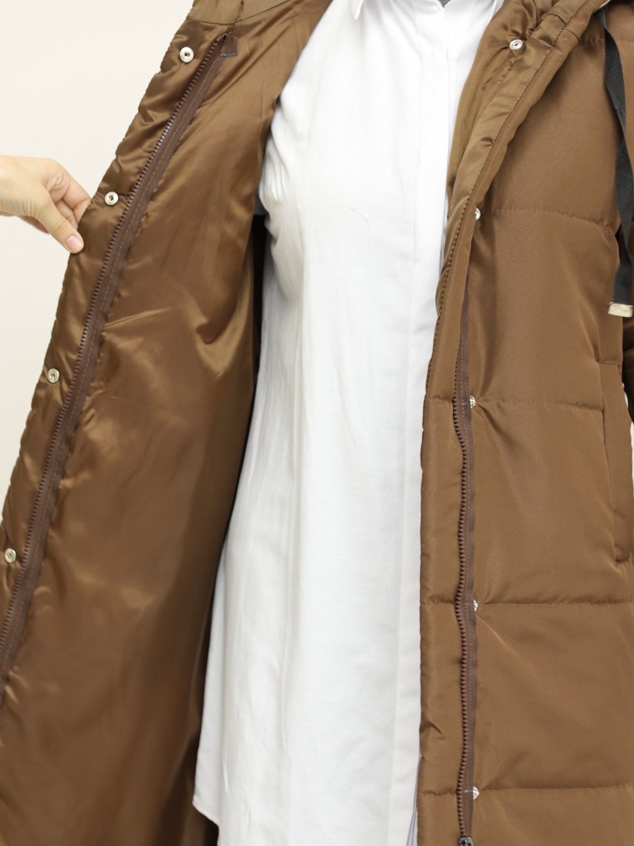 Astarlı Kapşonlu Şişme Kaban -K. Kahve