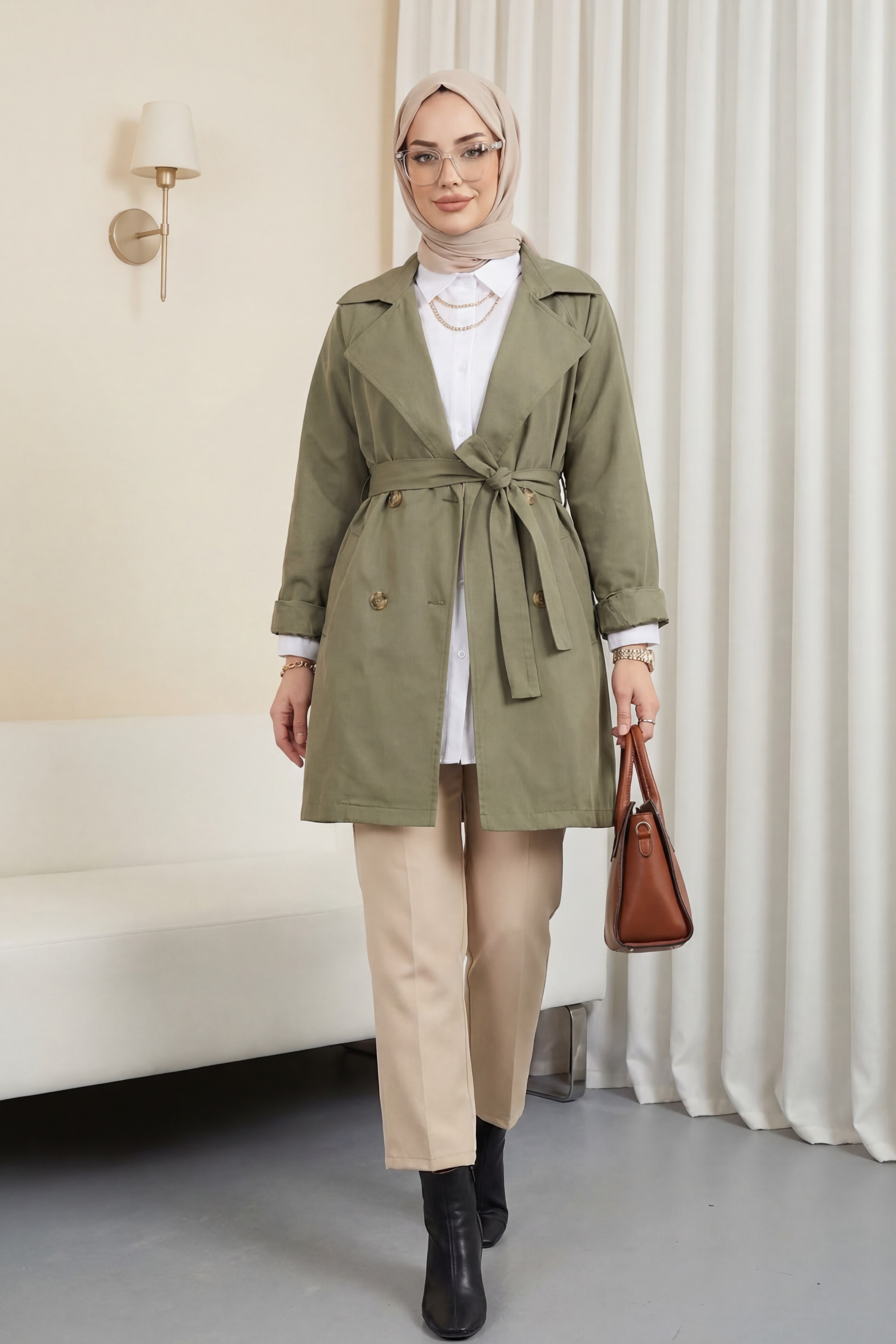 Bolero detaylı, düğmeli, ara boy trençkot; şıklığı ve zarafeti modern bir tasarımla birleştirir. Bolero detayı, trençkota benzersiz bir hava katarken, düğme detayları şıklığı tamamlar. Orta boy tasarımı ise rahatlık ve hareket özgürlüğü sağlar. Hem günlük kullanım hem de şık davetler için mükemmel bir seçenek.
