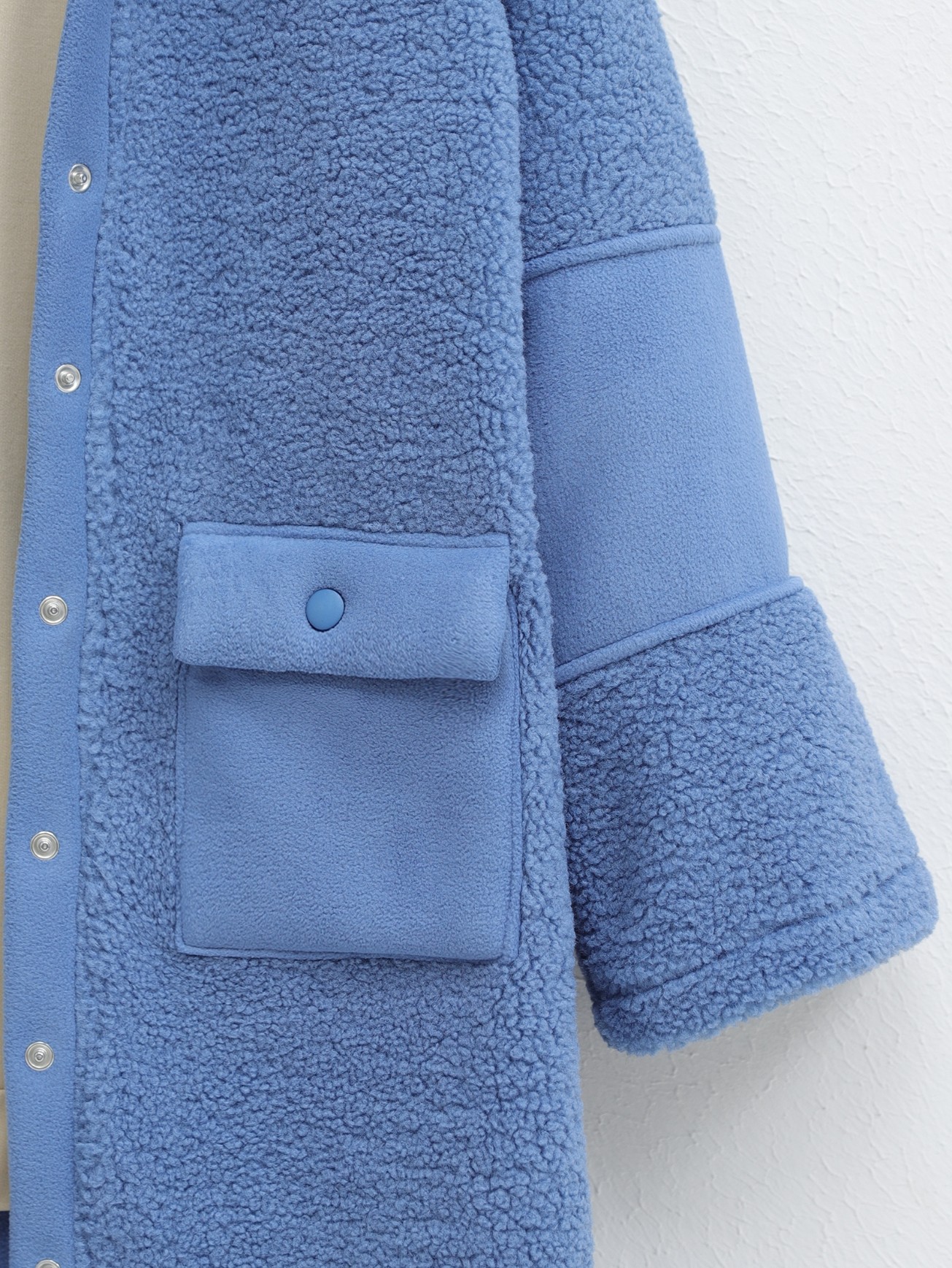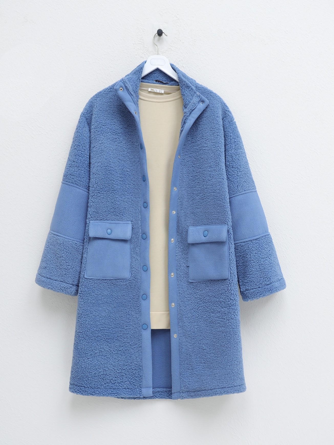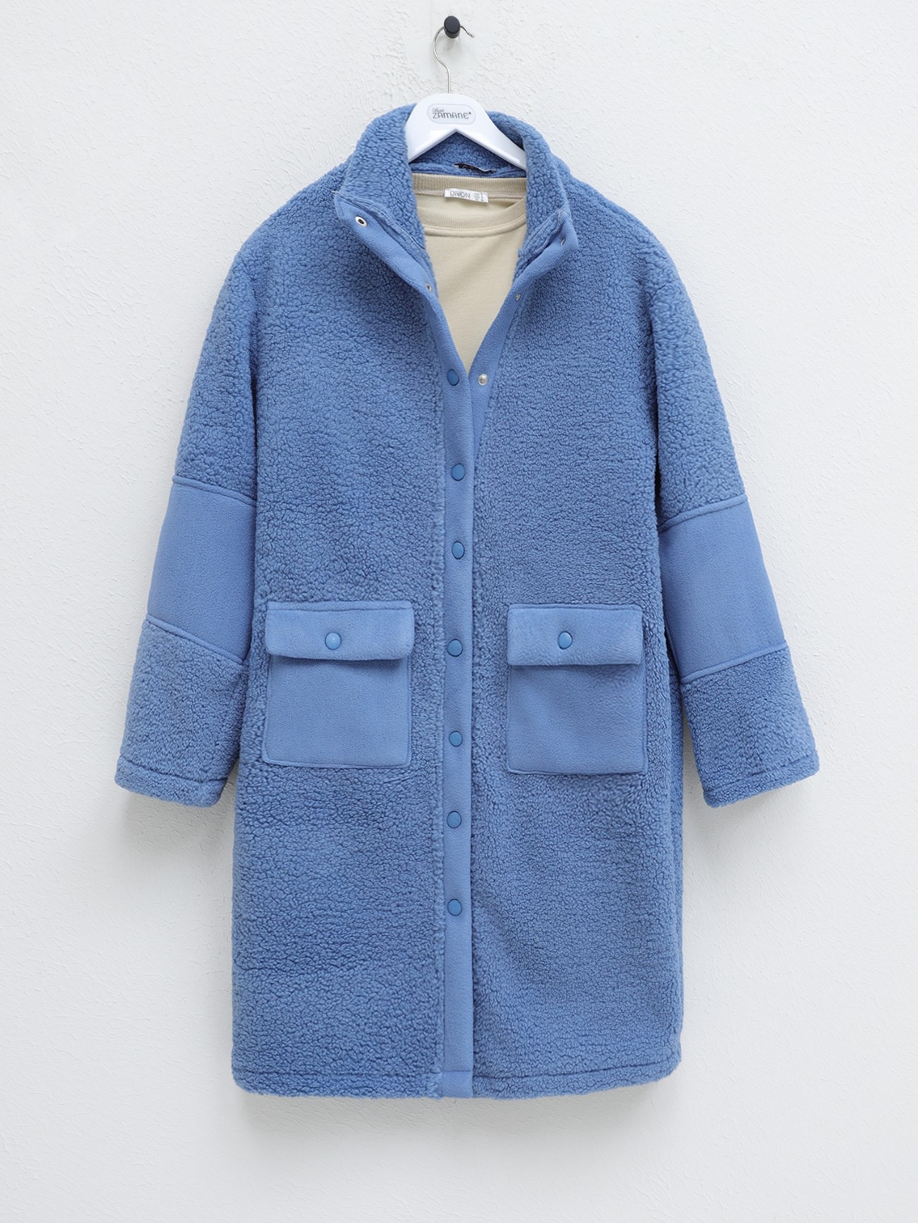Boydan Çıtçıtlı İçi Polarlı Cepli Kap -Mavi