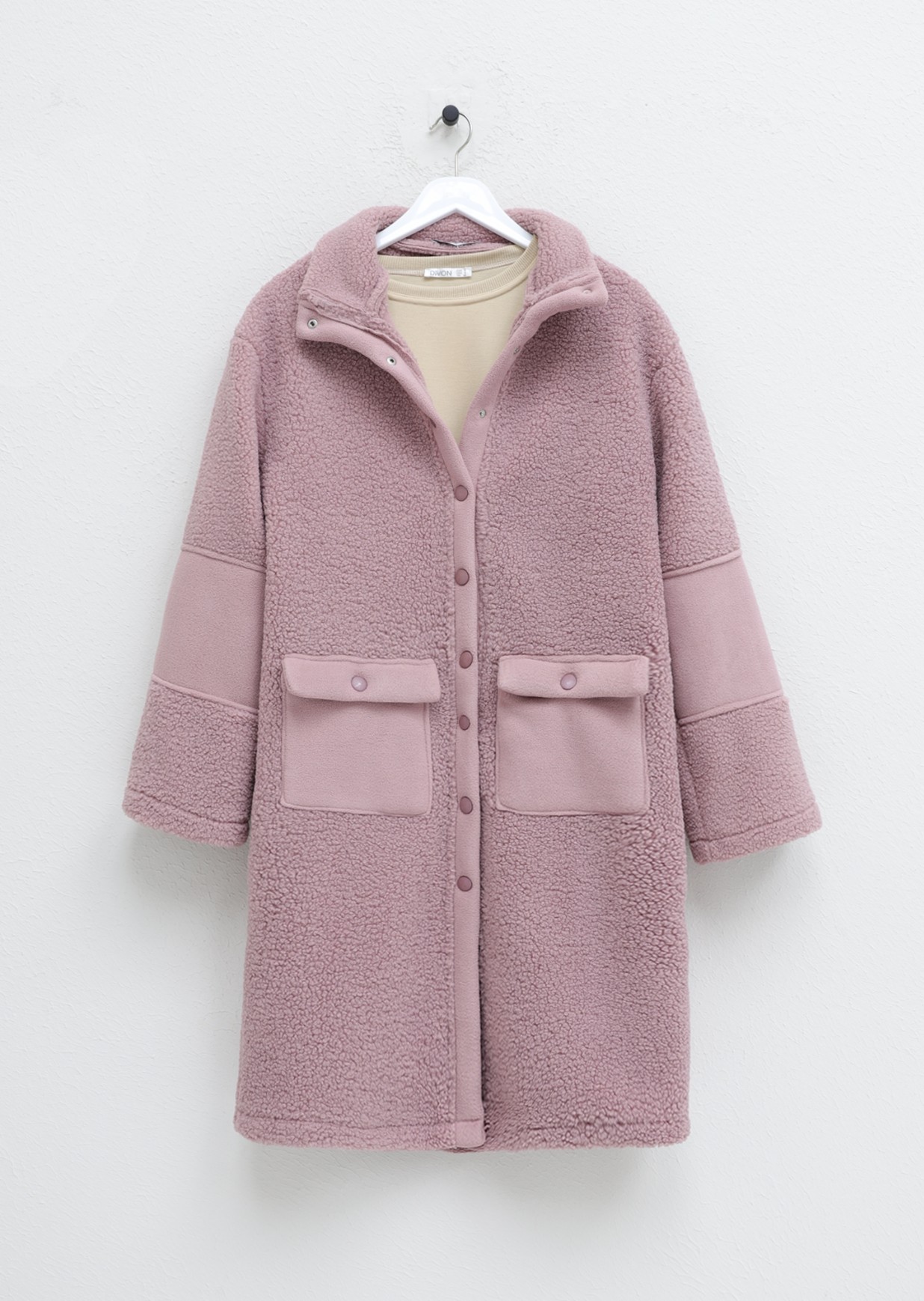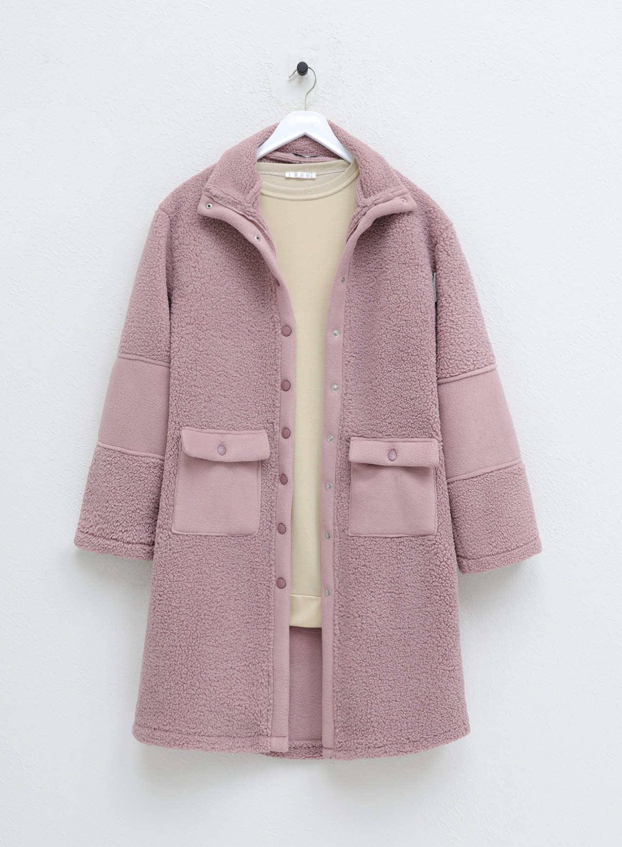 Boydan Çıtçıtlı İçi Polarlı Cepli Kap -Pembe