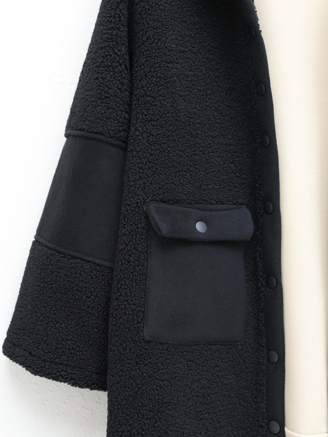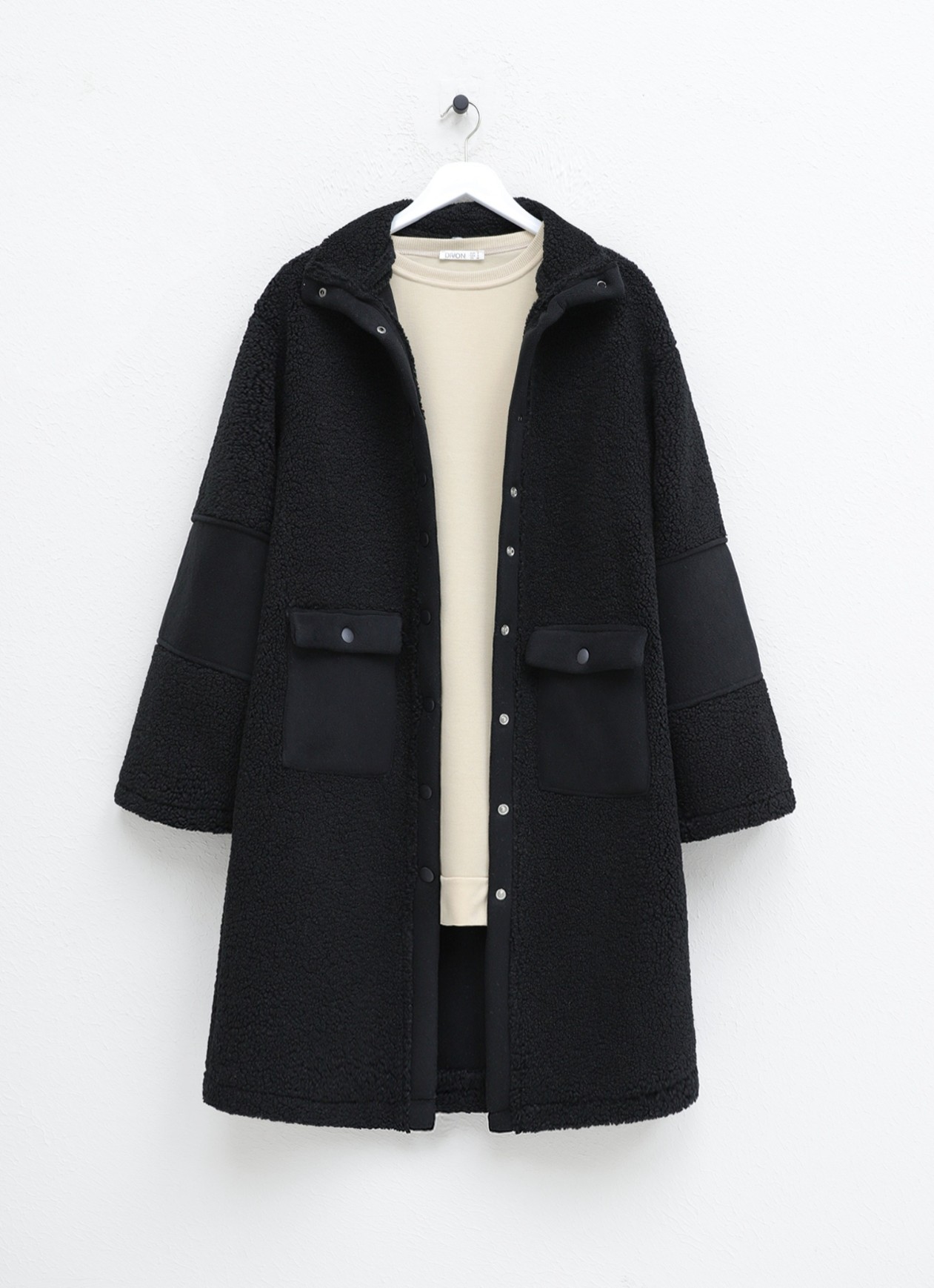 Boydan Çıtçıtlı İçi Polarlı Cepli Kap -Siyah