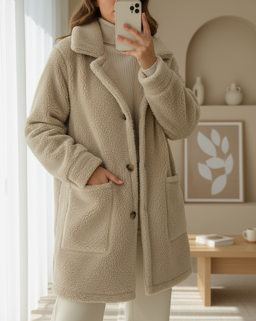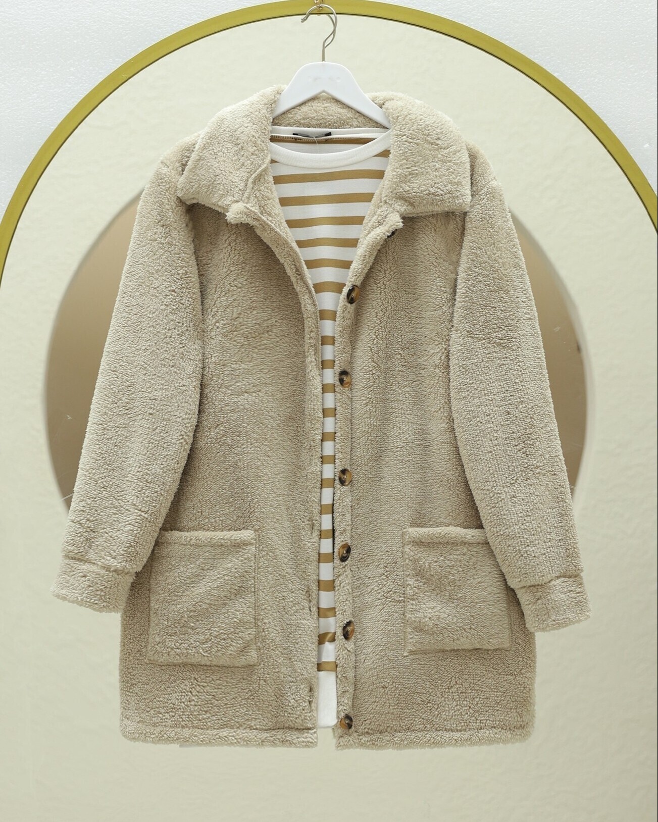 Boydan Düğmeli Cepli Pelüş Ceket, soğuk hava koşullarında şıklığınızı ve rahatınızı bir arada sunan mükemmel bir dış giyim parçasıdır. Yumuşak pelüş kumaşı, sizi sıcak tutarken, boydan düğmeli tasarımı modern ve zarif bir görünüm sağlar. Cepler, hem şıklığı hem de pratikliği bir araya getirir, günlük kullanım için idealdir. Hem rahat hem de şık bir stil arayanlar için mükemmel bir seçenek olan bu ceket, her mevsimde gardırobunuzun vazgeçilmez parçalarından biri olacak.