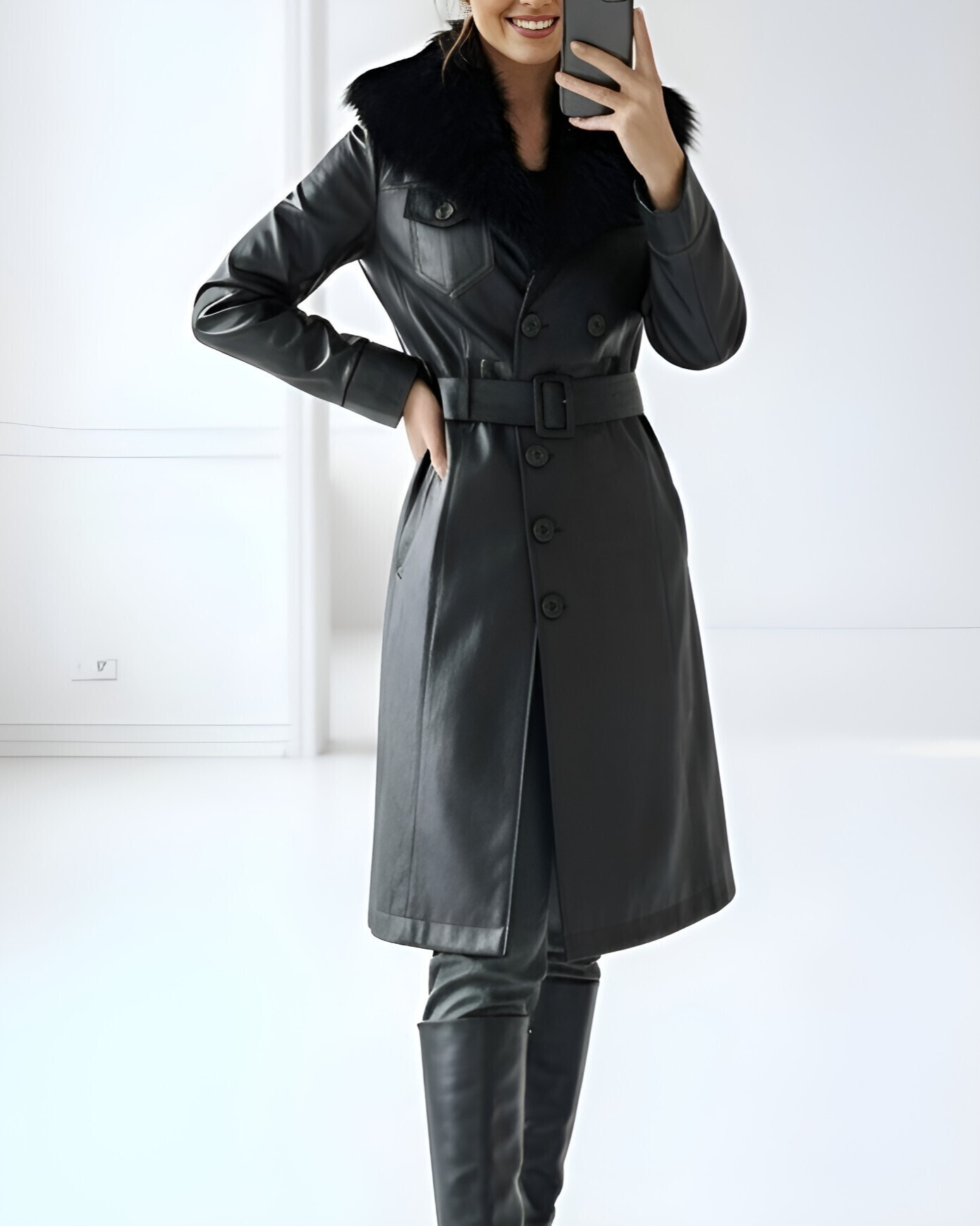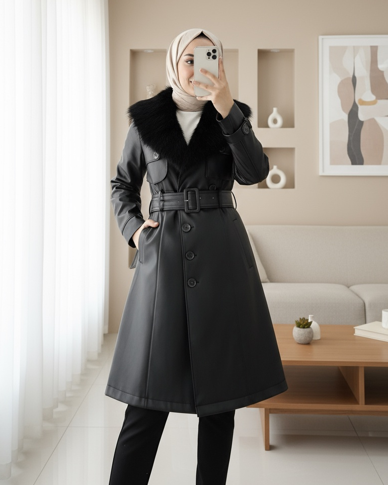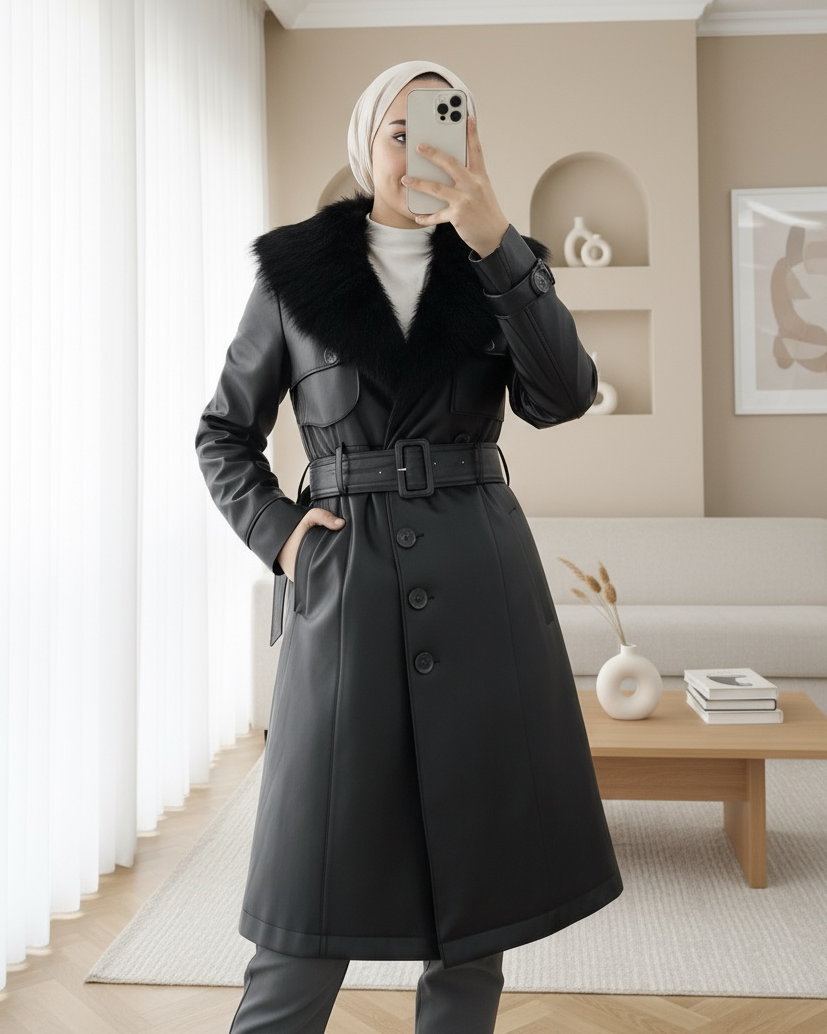 Çift cepli, yakası kürk detaylı, kemerli deri mont modelimiz yeni sezonun en çok sevilen modelleri arasında yer almaktadır.