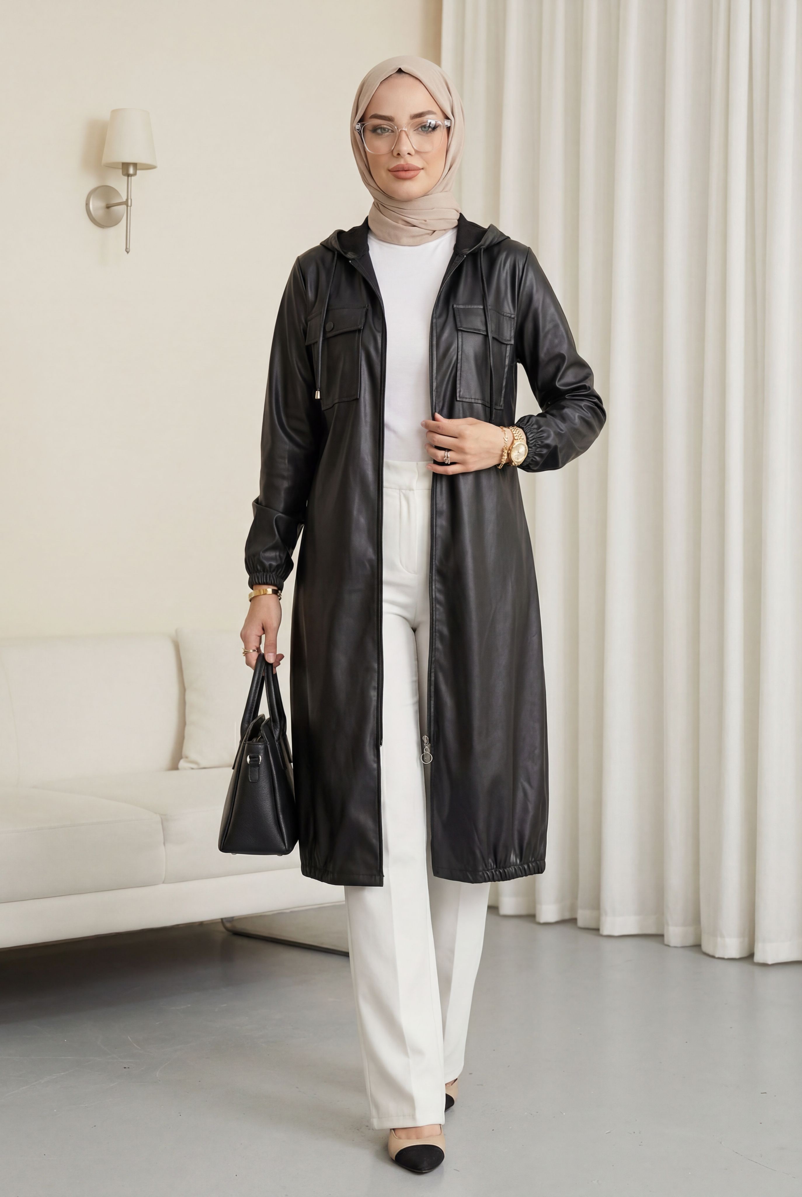 Kapaklı Cepli Boydan Fermuarlı Deri Kap – Şıklık ve Pratiklik