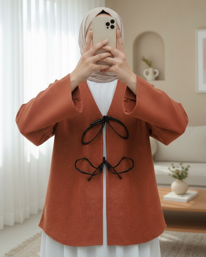 Önü bağcıklı, oval kesim, kaşe kimono modelimiz yeni sezonun en çok sevilen modelleri arasında yer almaktadır.