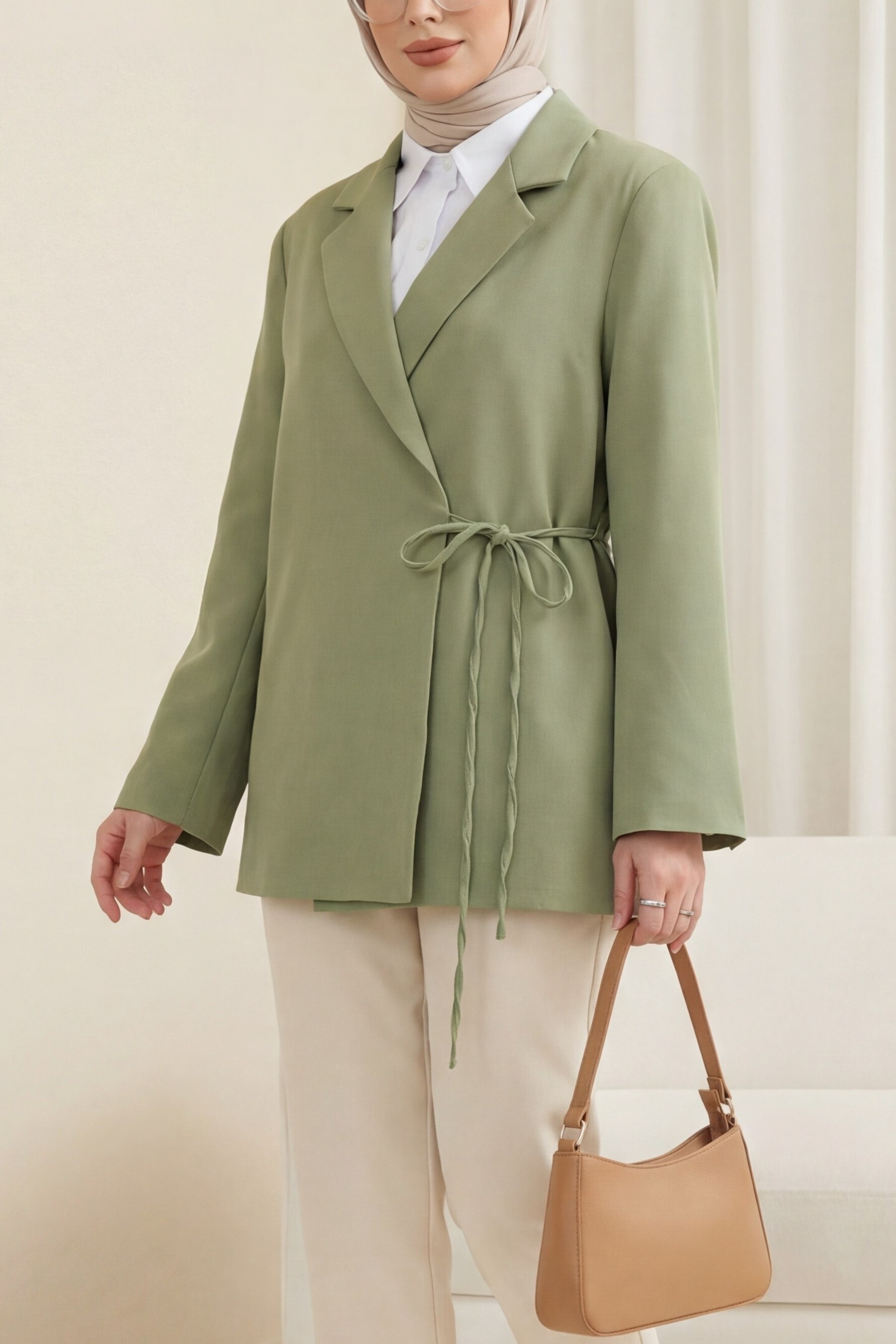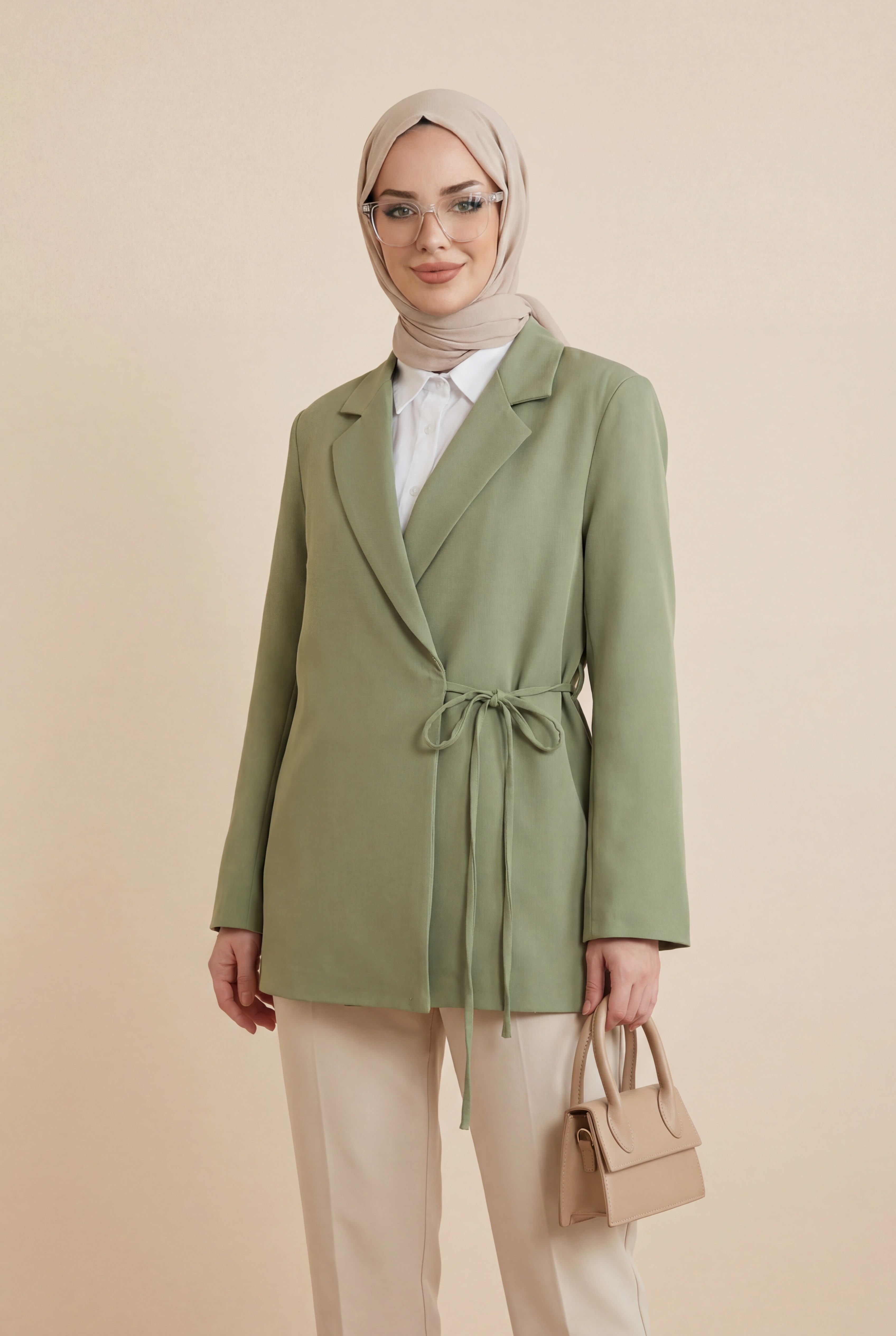 “Double krep ceket”, “bağcıklı kadın ceket”, “astarlı şık ceket”, “modern kadın ceket modeli” gibi adlandırılabilir.