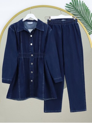 Top Button Shirt and Trousers Set -İndigo