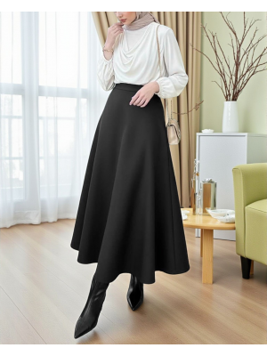 Loose Flared Scuba Puff Skirt -Black