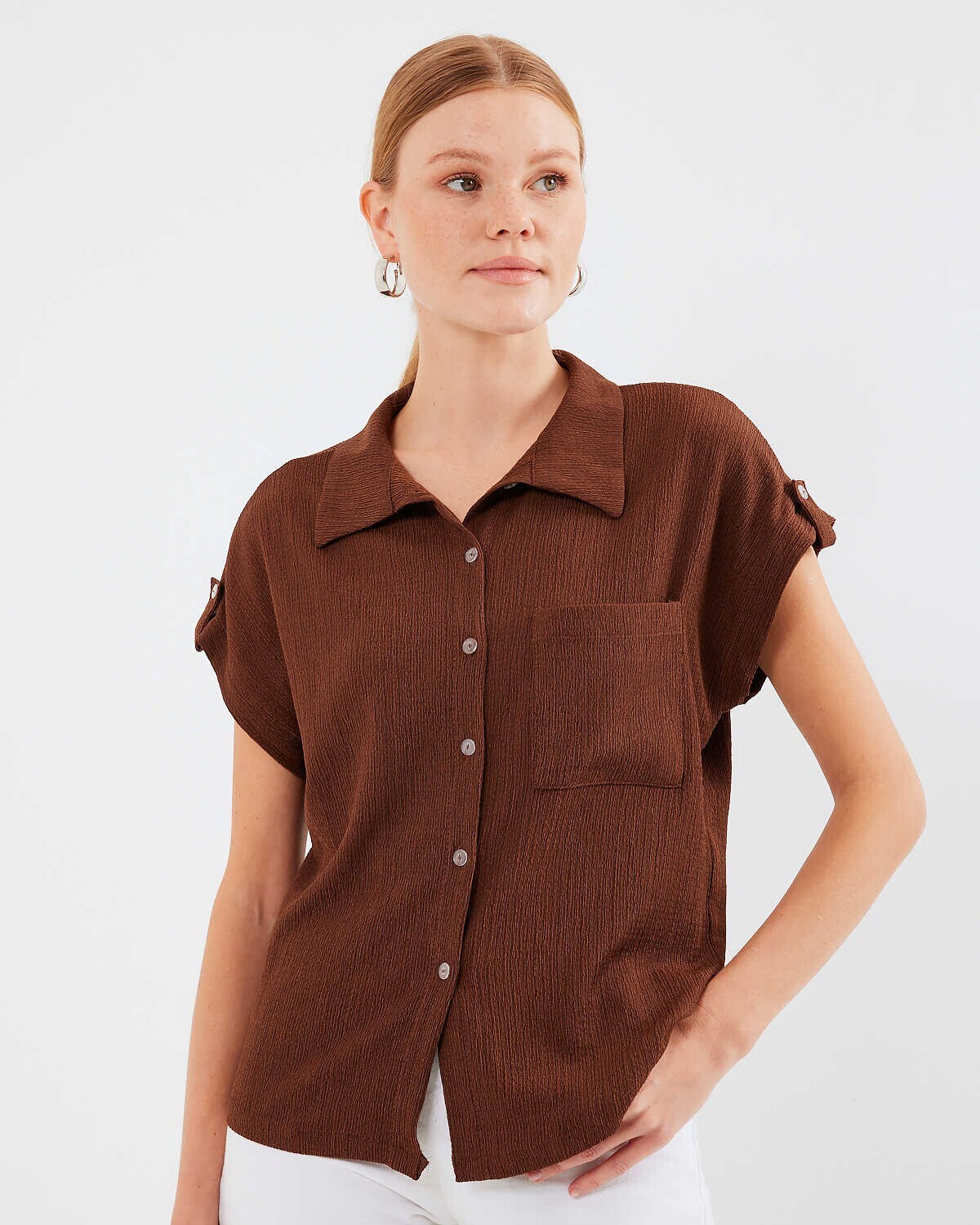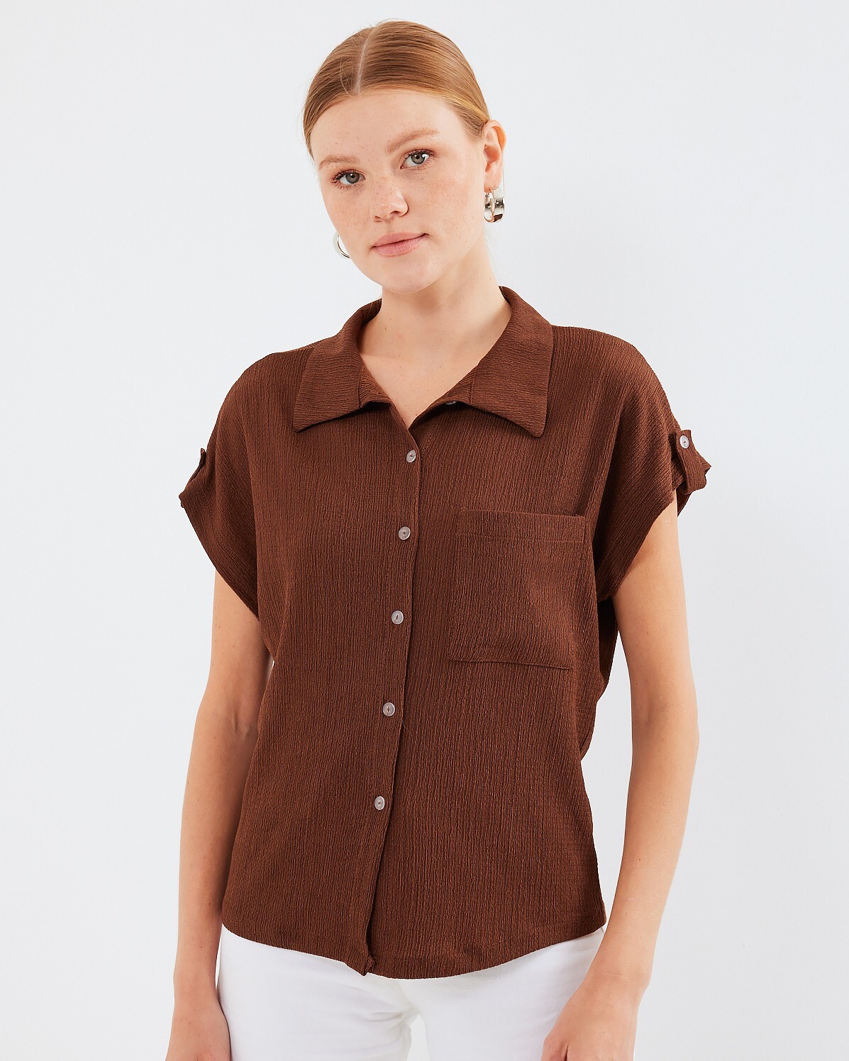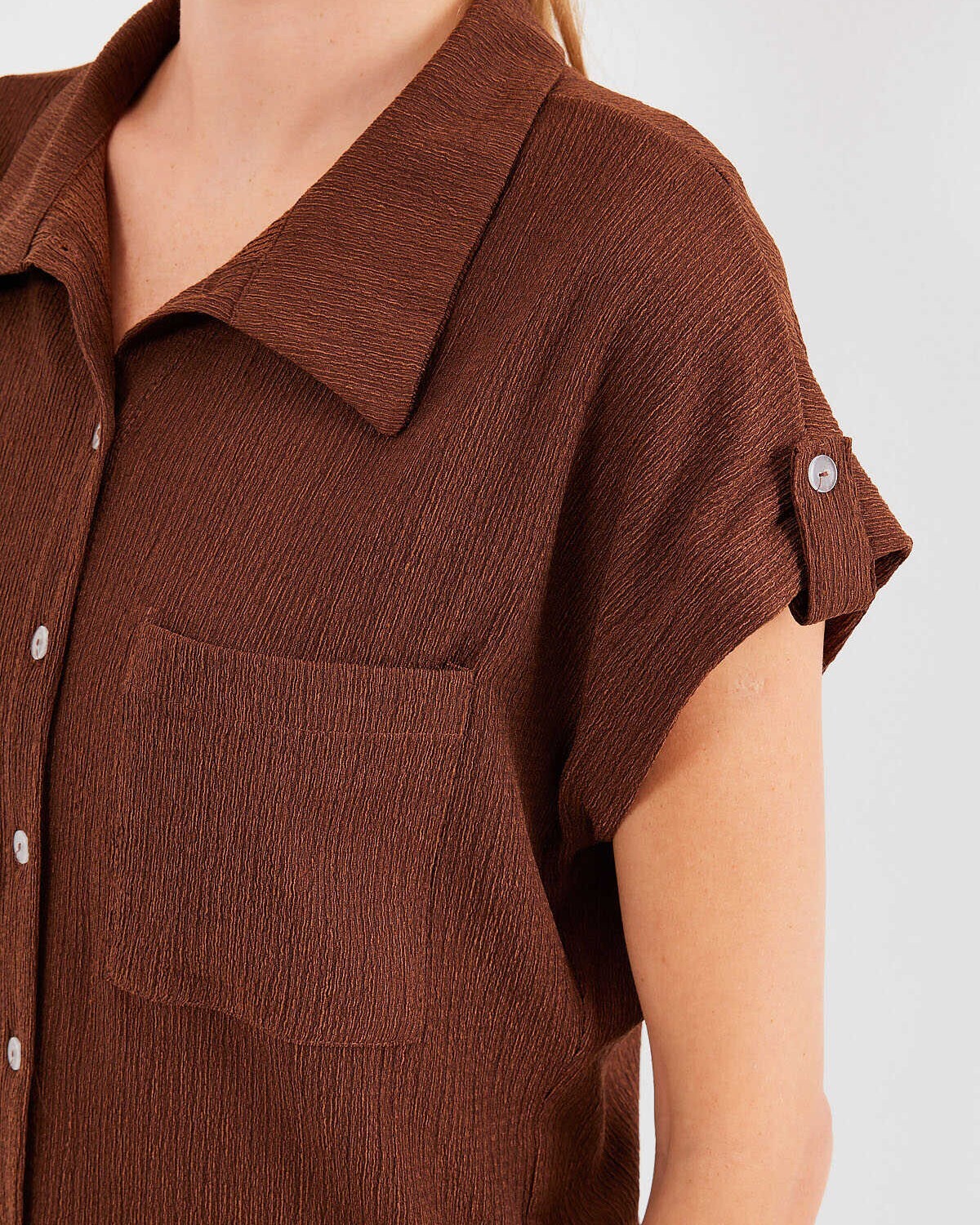 Cuffed Double Short Sleeve Textured Shirt