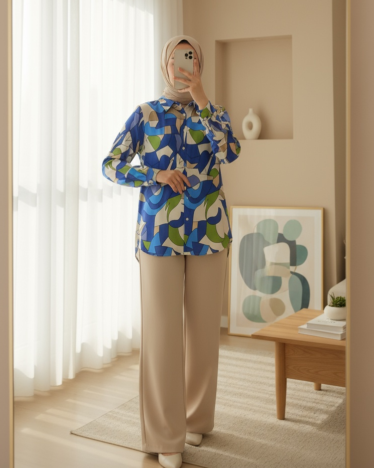 Product features: MIX GRAPHIC PATTERNED VISCOSE SHIRT