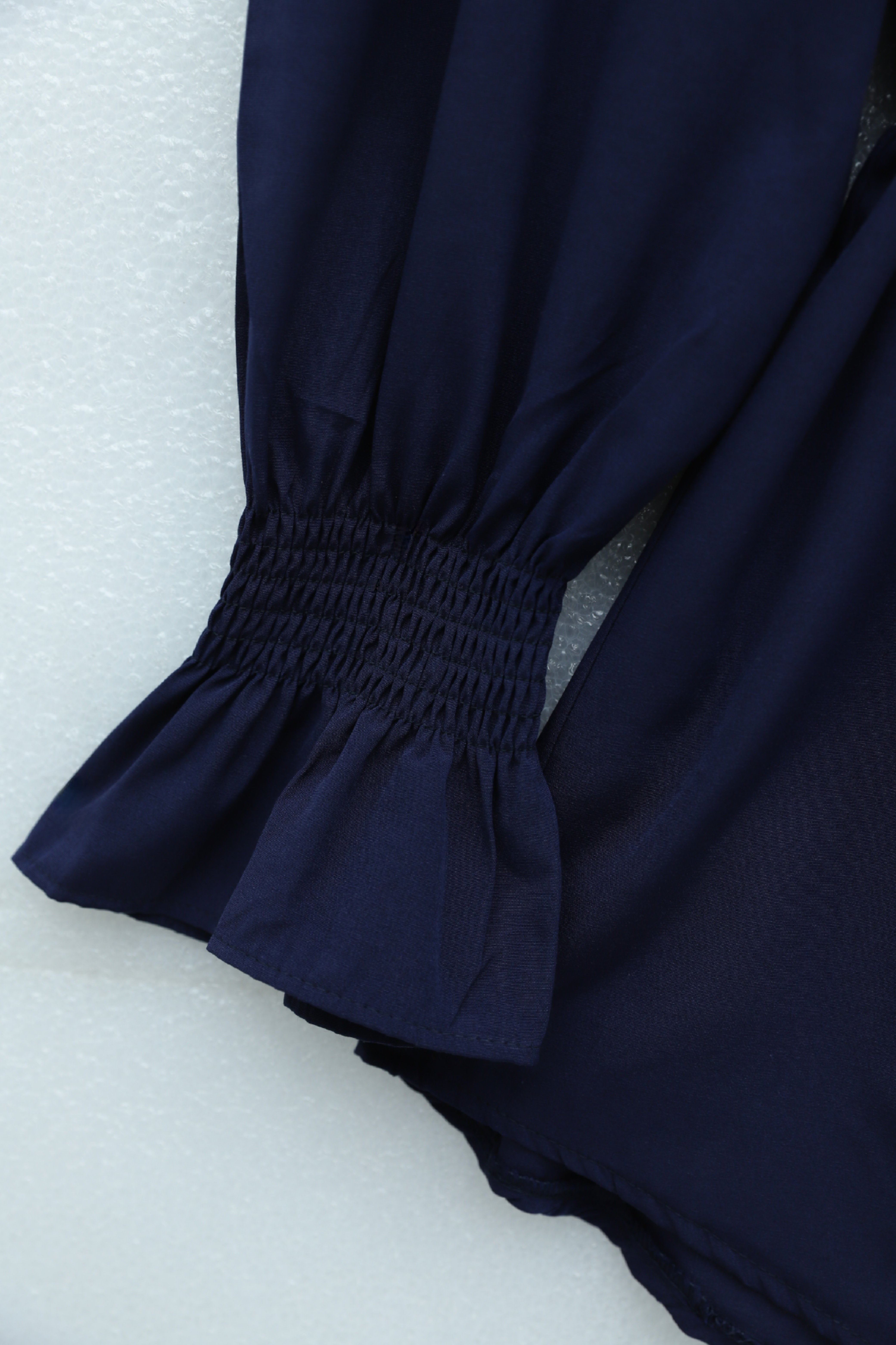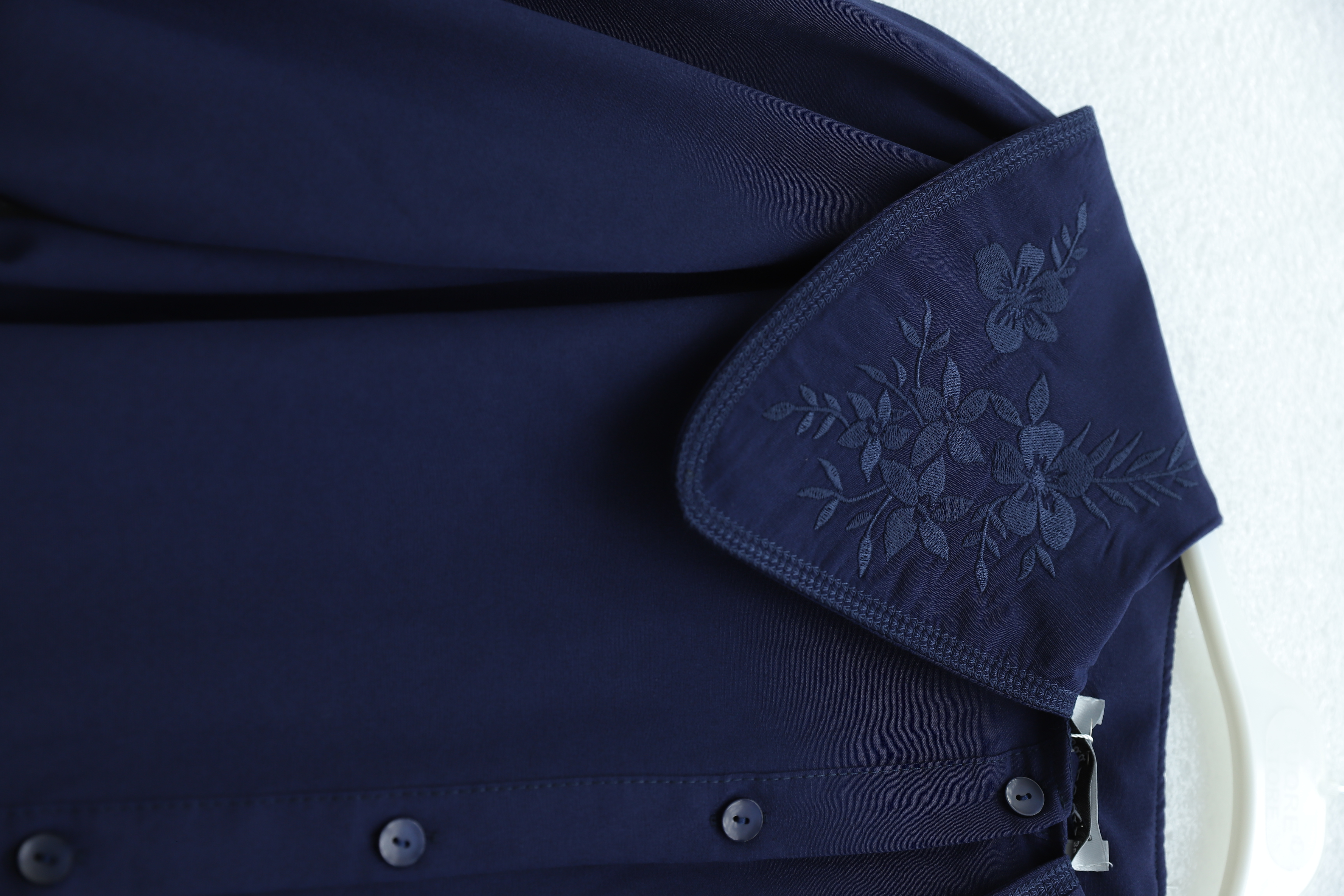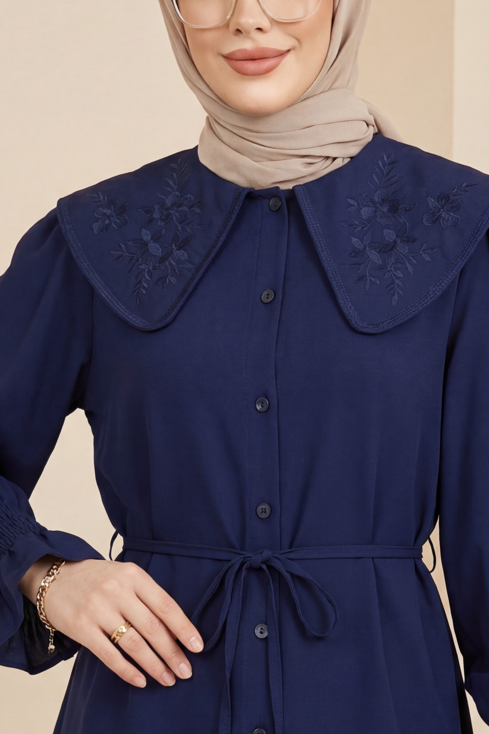 Baby Collar Embroidered Poplin Shirt with Tie Waist -Navy blue