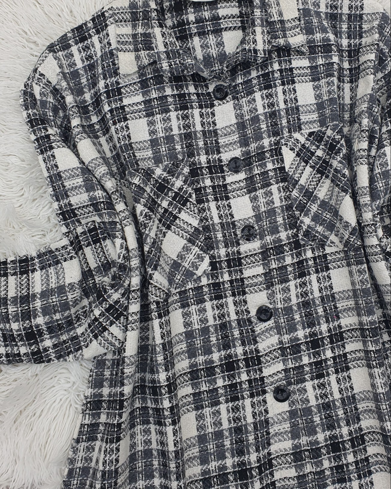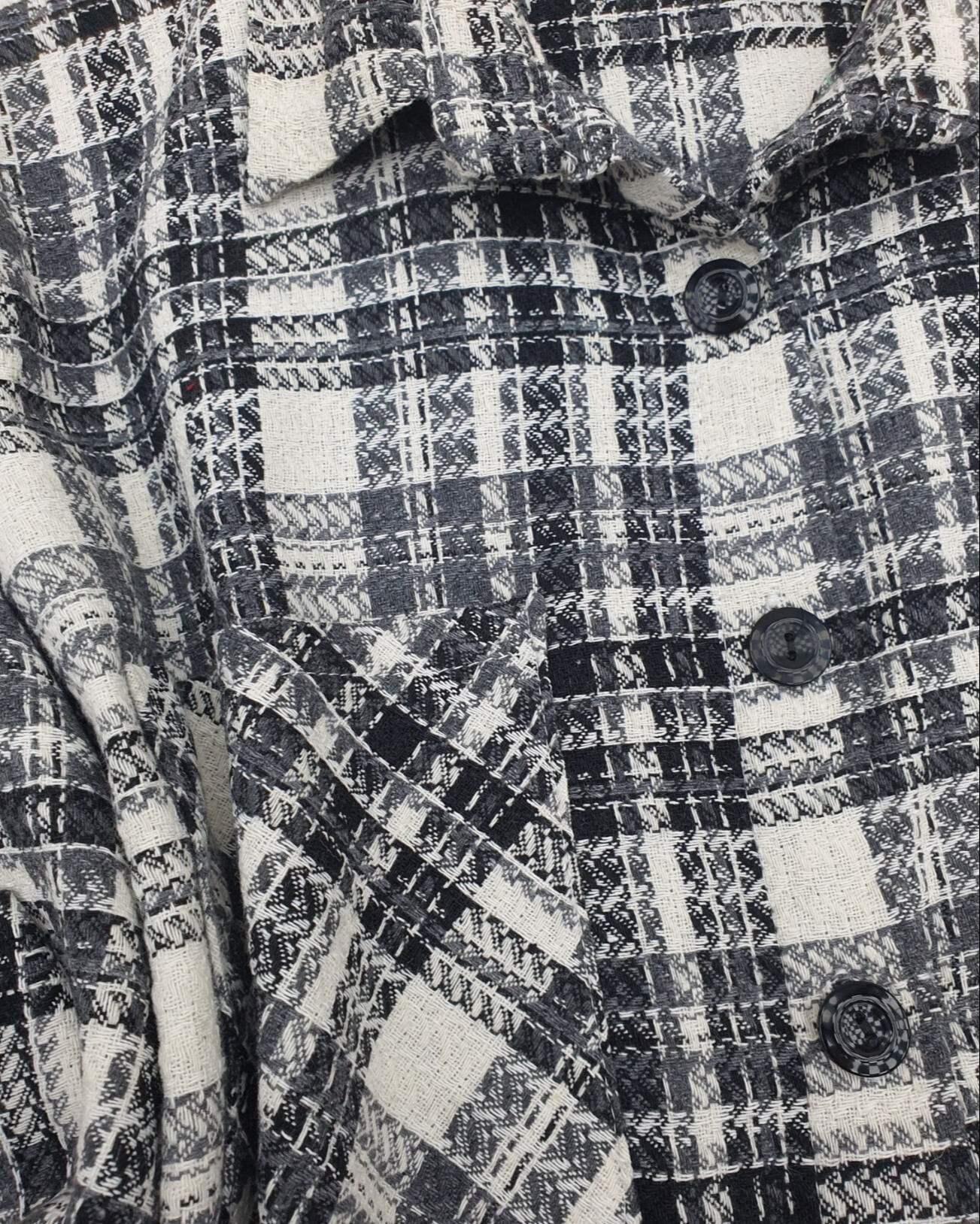 Buttoned Double Pocket Tweed Shirt -Ecru