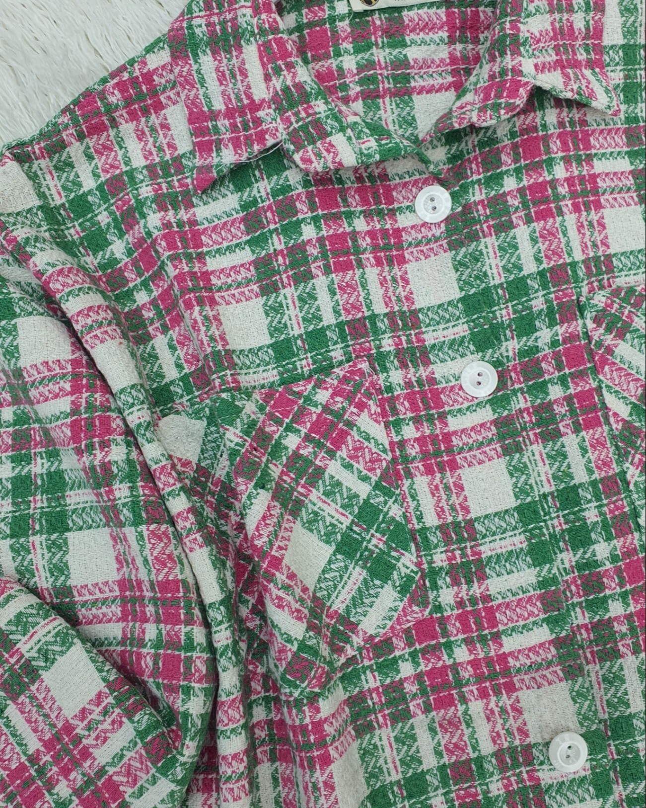 Buttoned Double Pocket Tweed Shirt -Pink