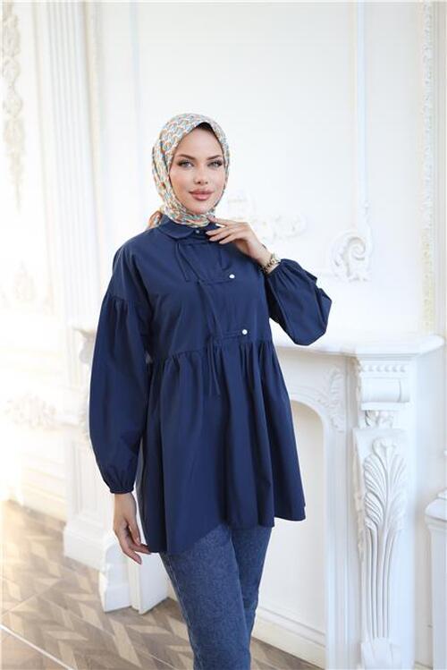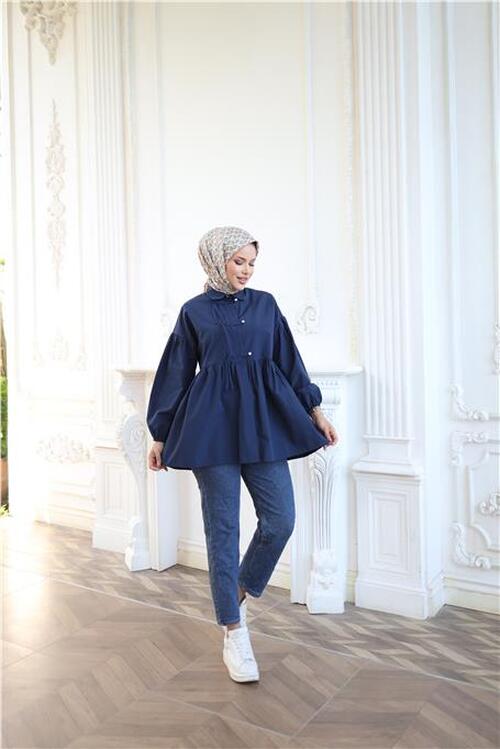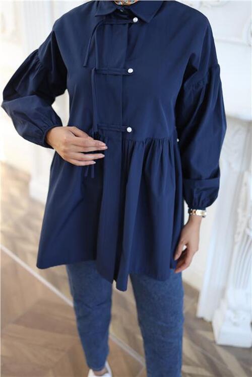 STOCK NAME: - Shirt with Elasticated Sleeves, Drawstring Waist and Button Closure