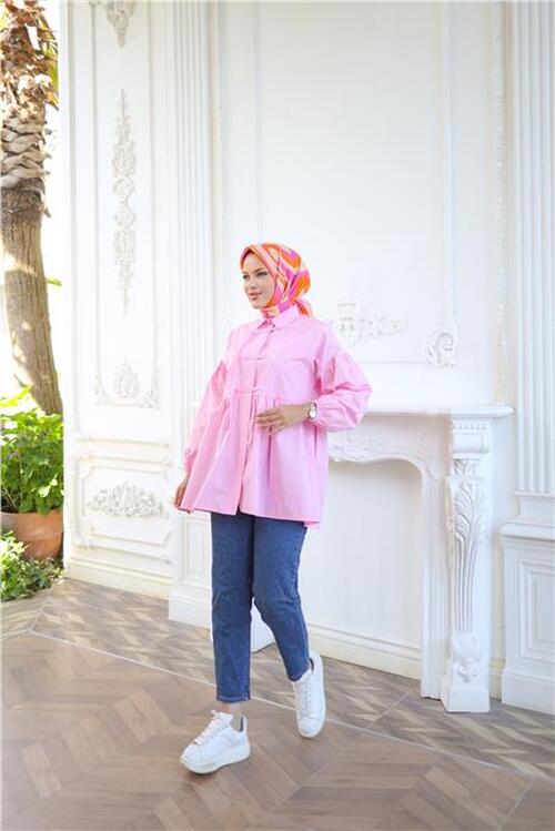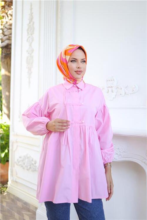 STOCK NAME: - Shirt with Elasticated Sleeves, Drawstring Waist and Button Closure