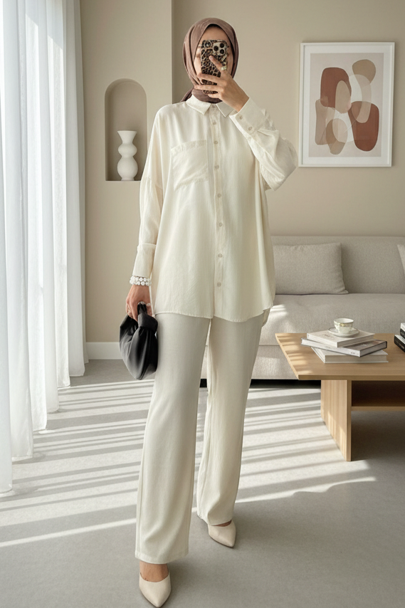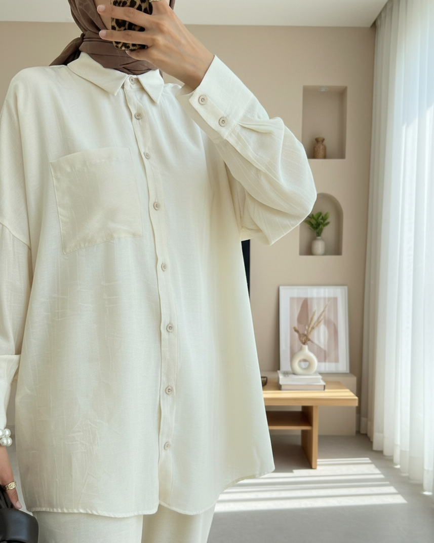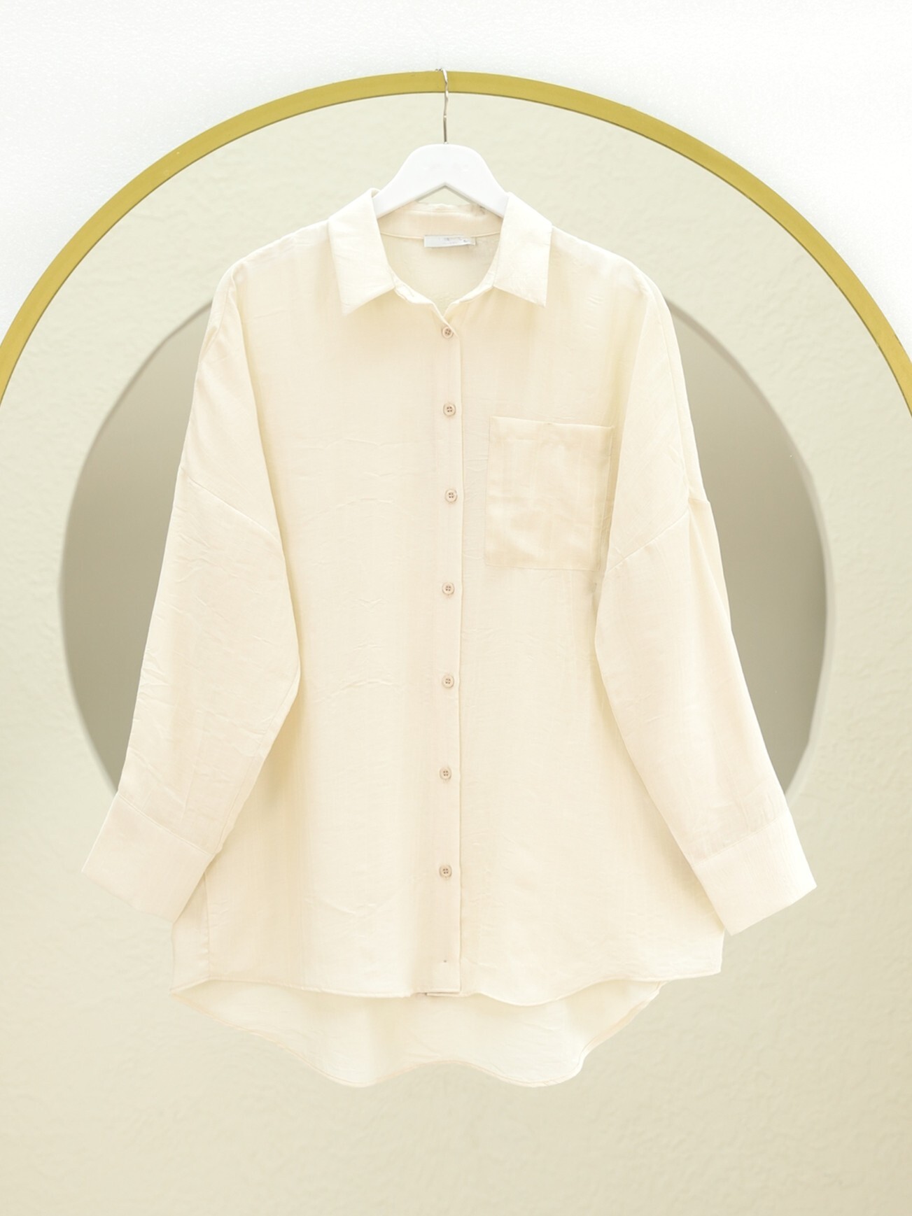Single Pocket Long Back Casual Shirt - Beige