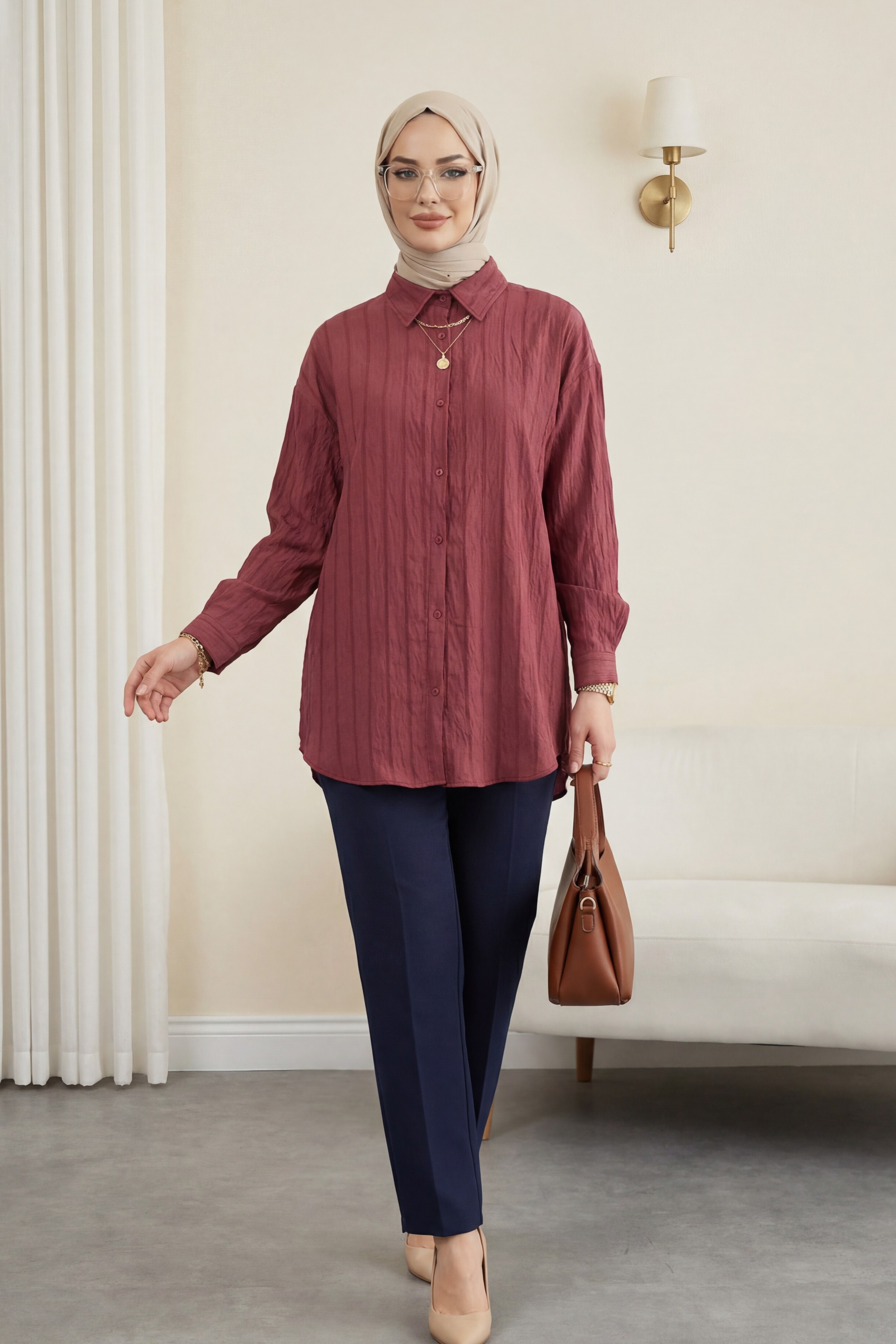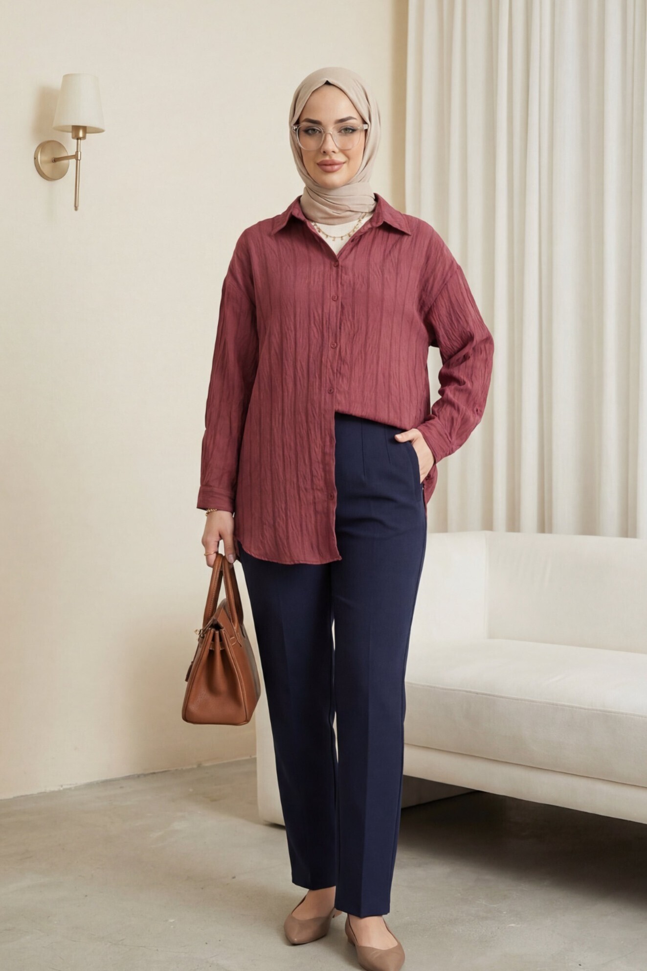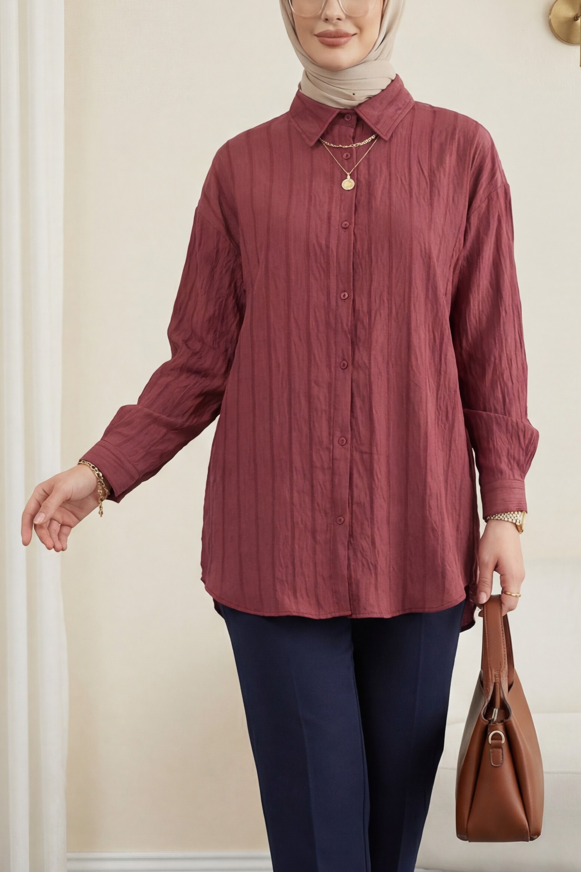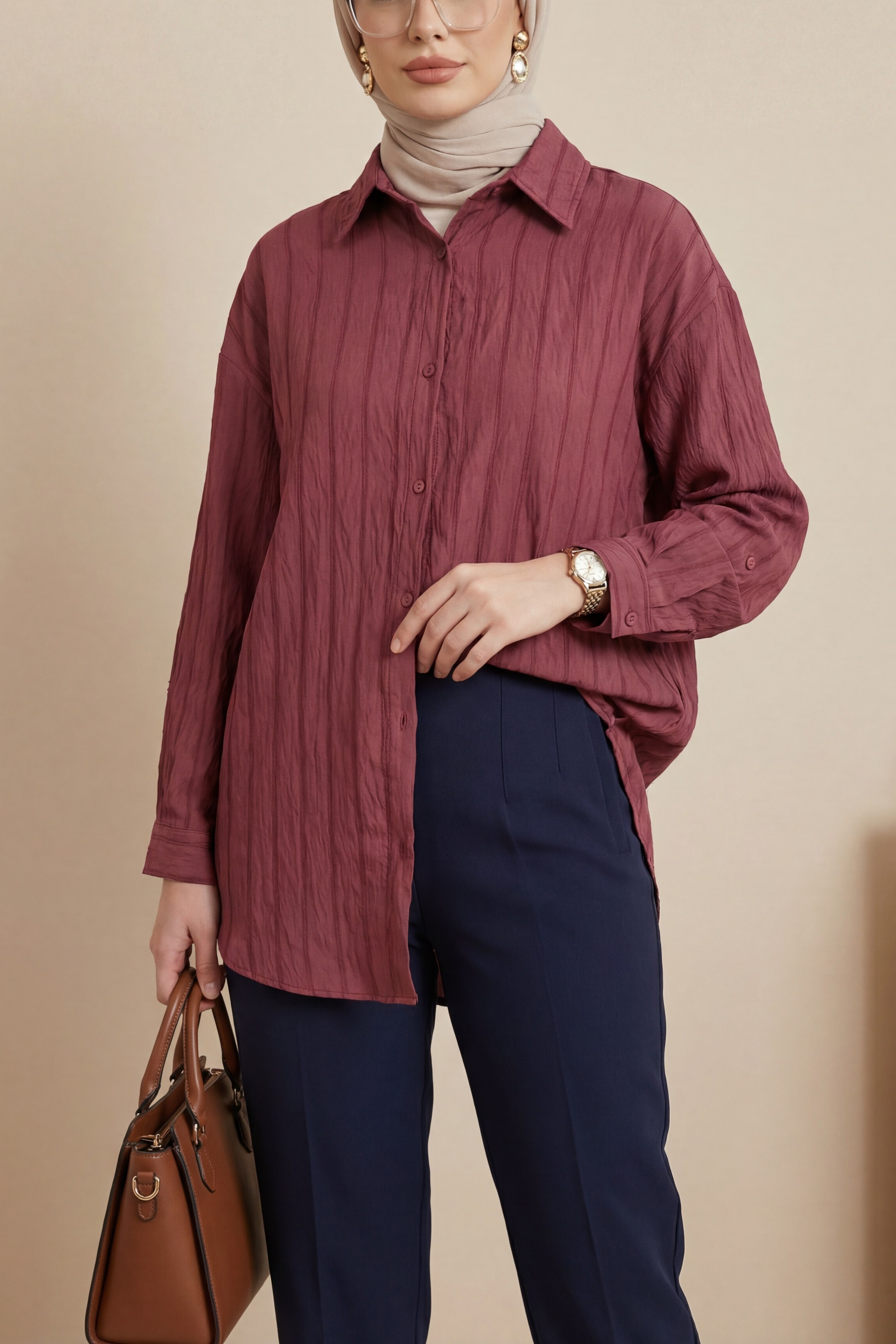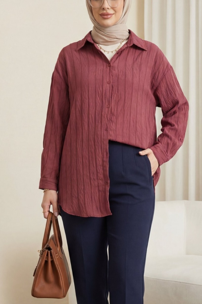 Asymmetrical Crepe Dress with Front Allery Skirt -Maroon