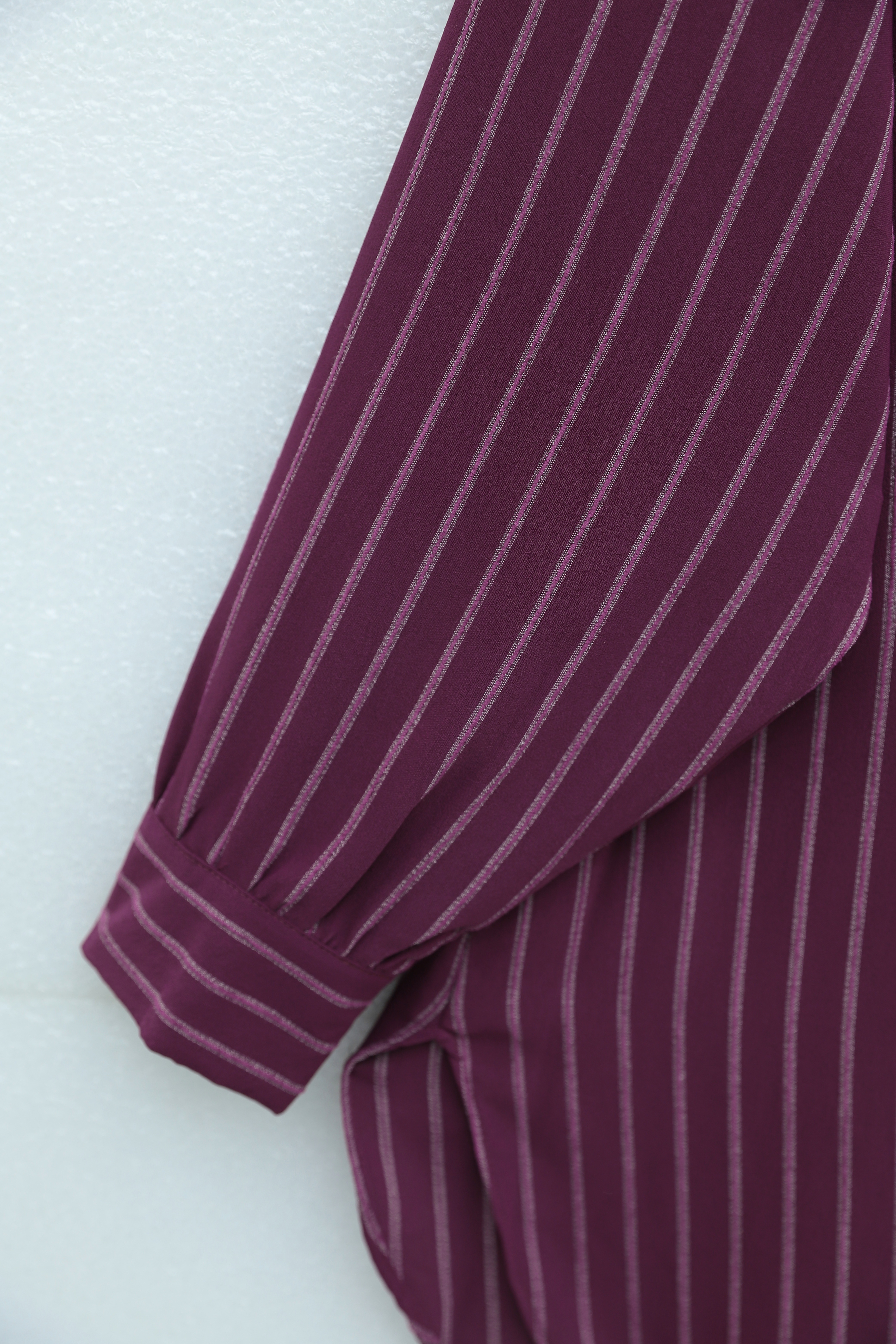 Striped Slit Loose-Fitting Linda Shirt -Maroon