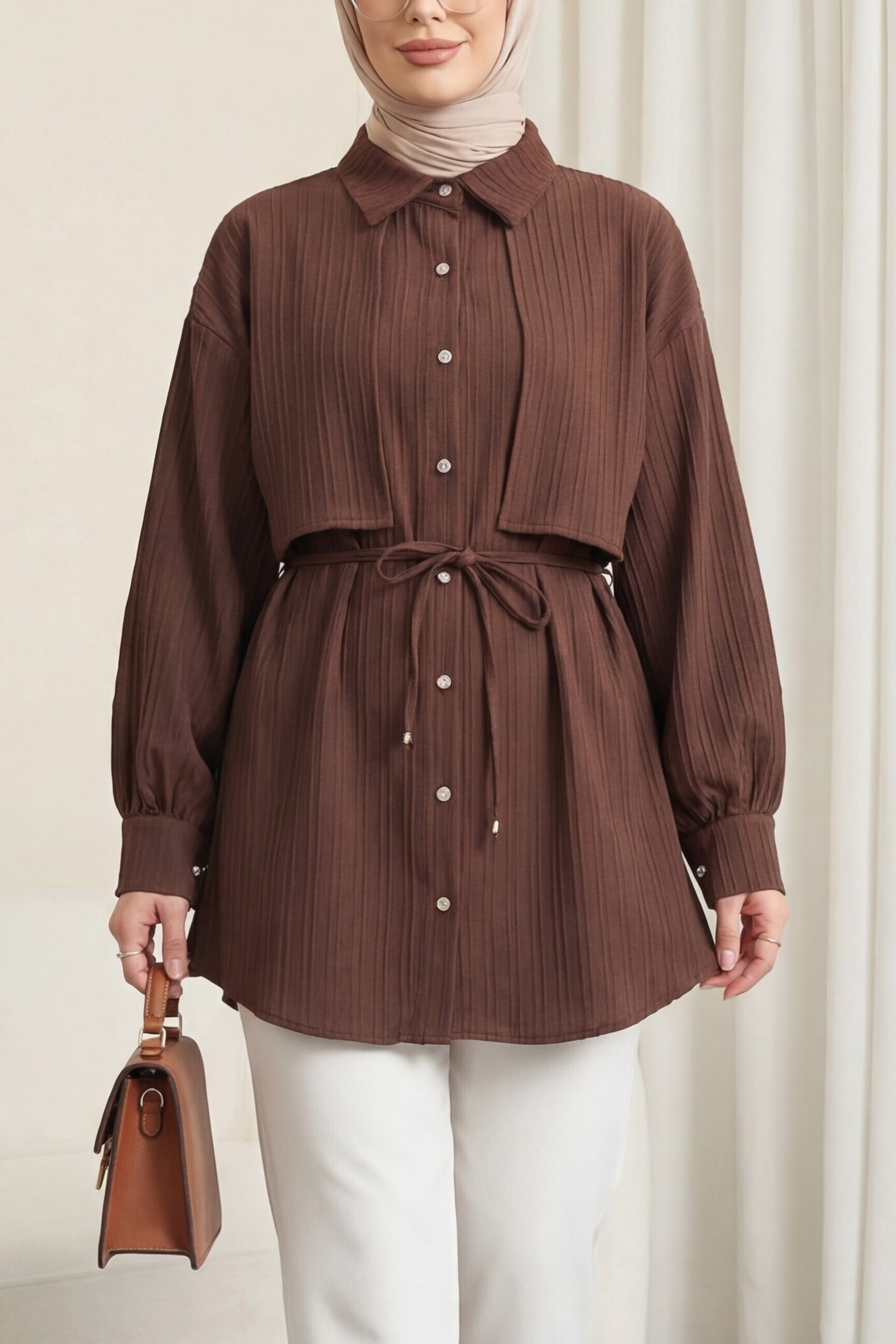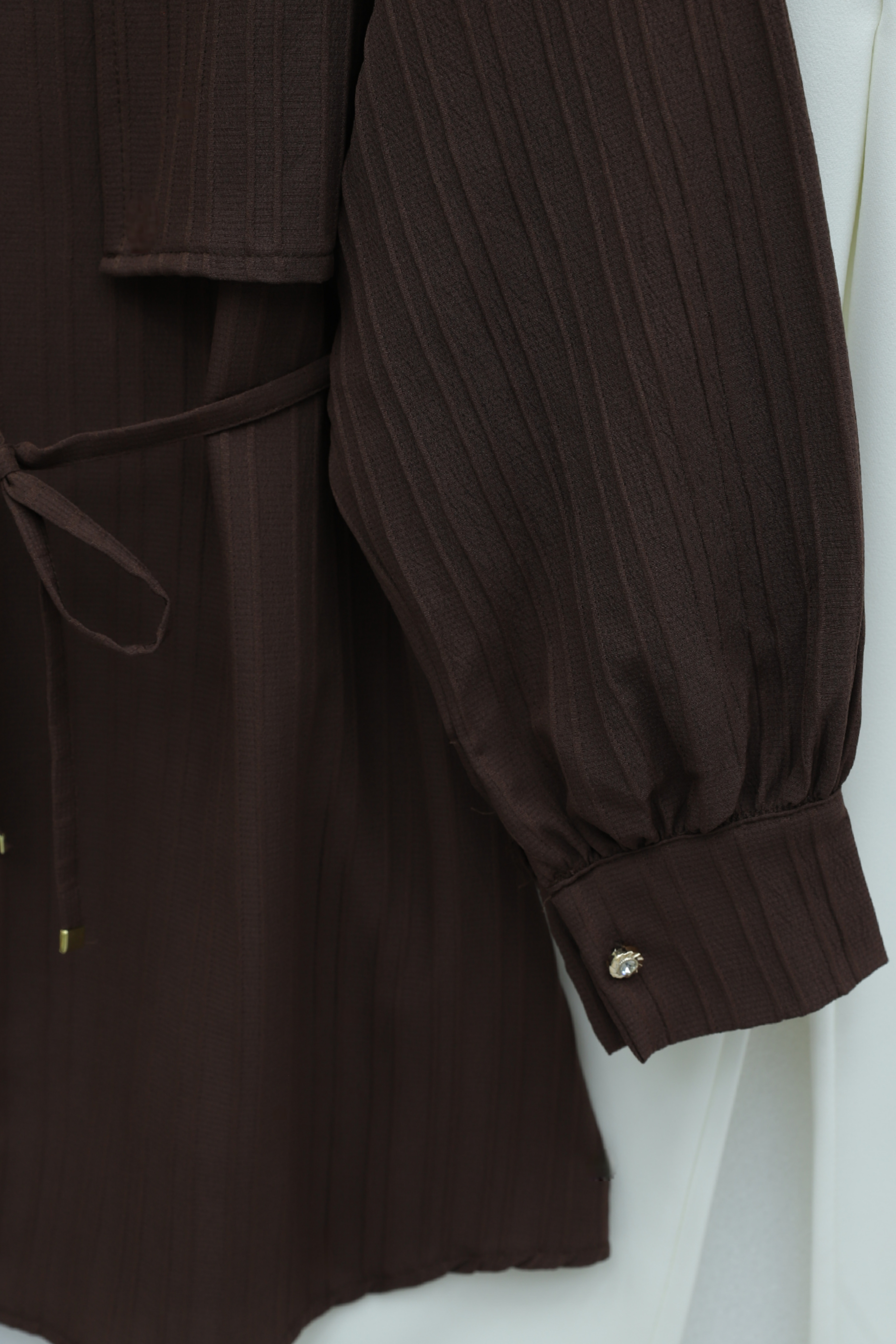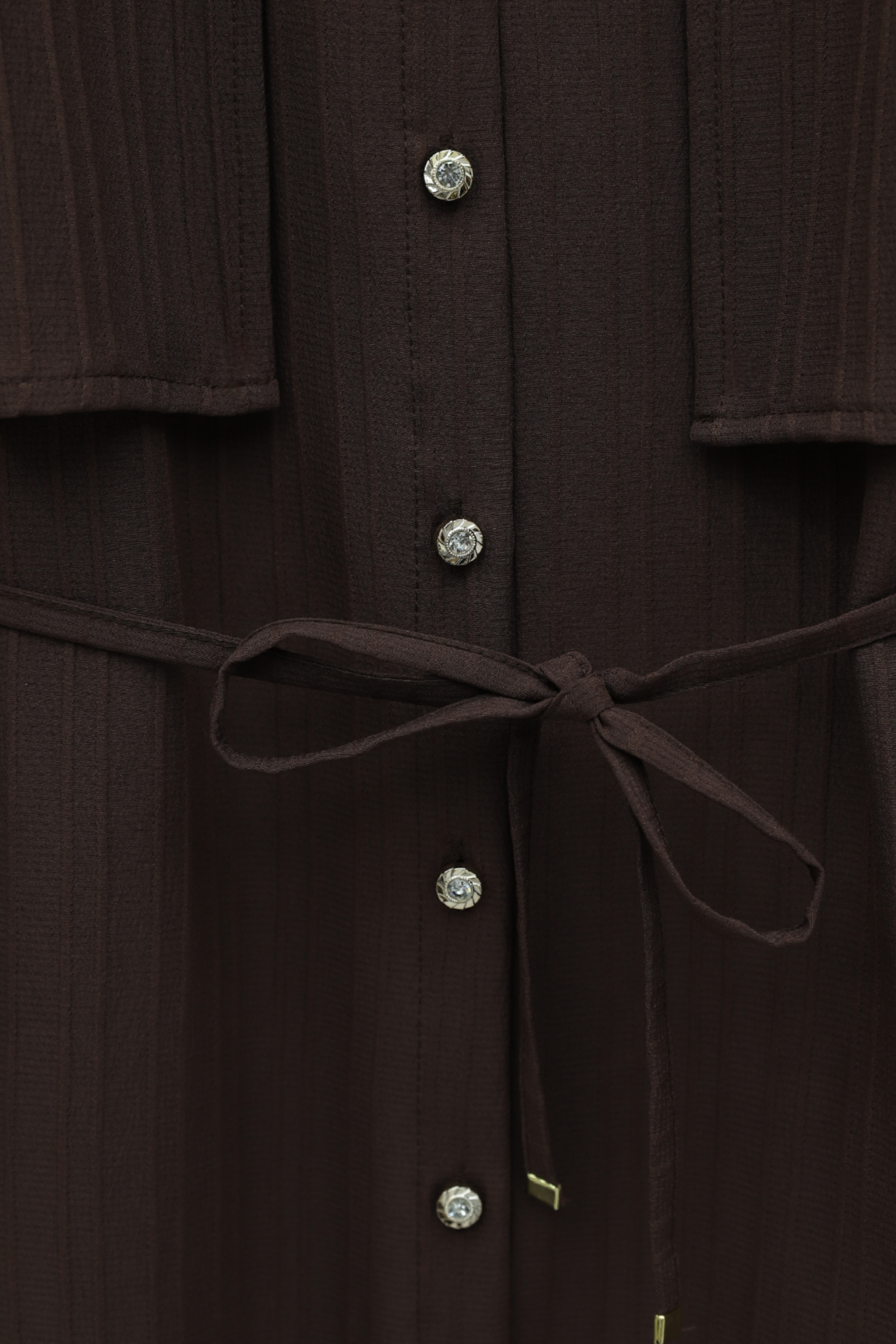 Tied Waist Bolero Detailed Stoned Button -Dark Coffee