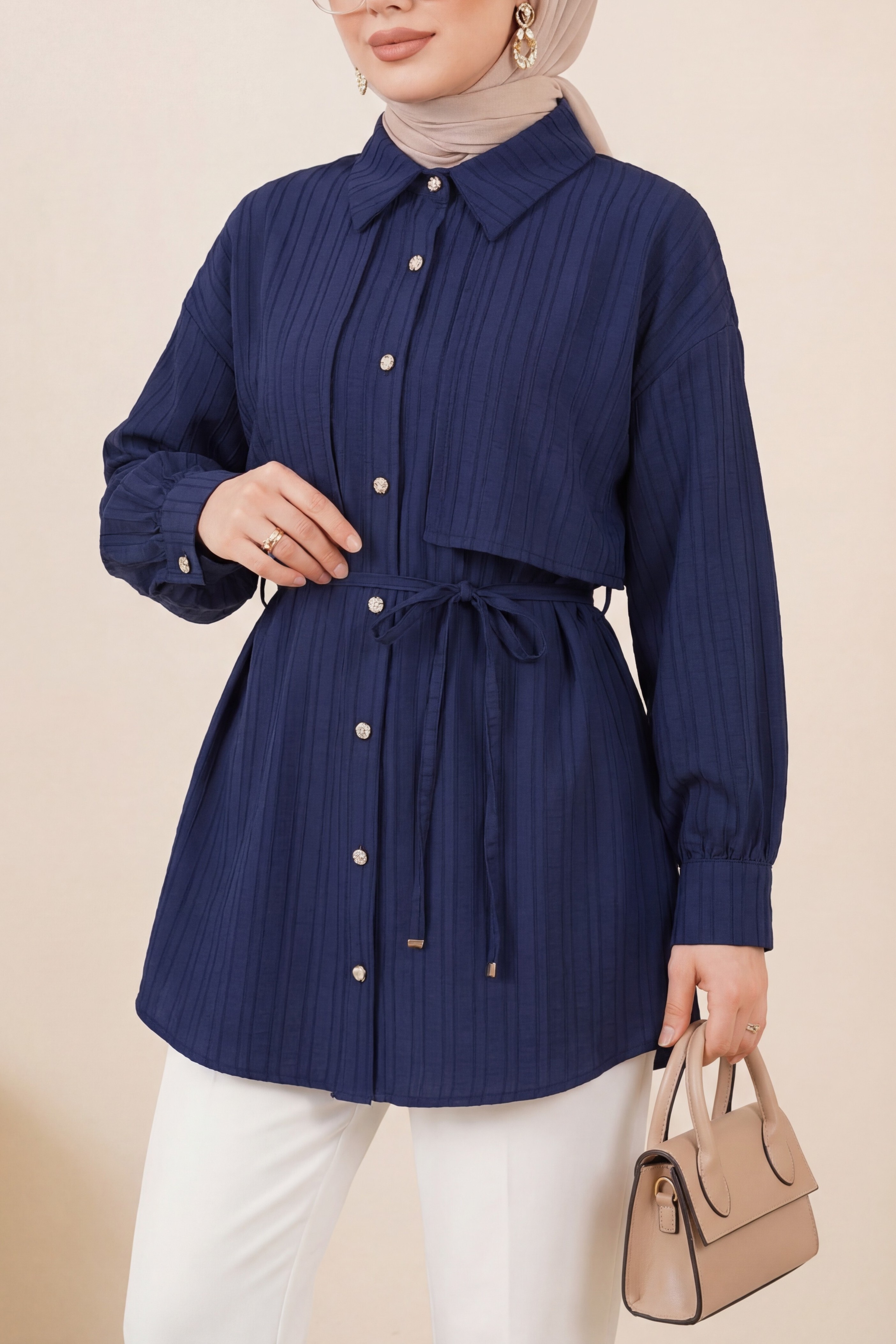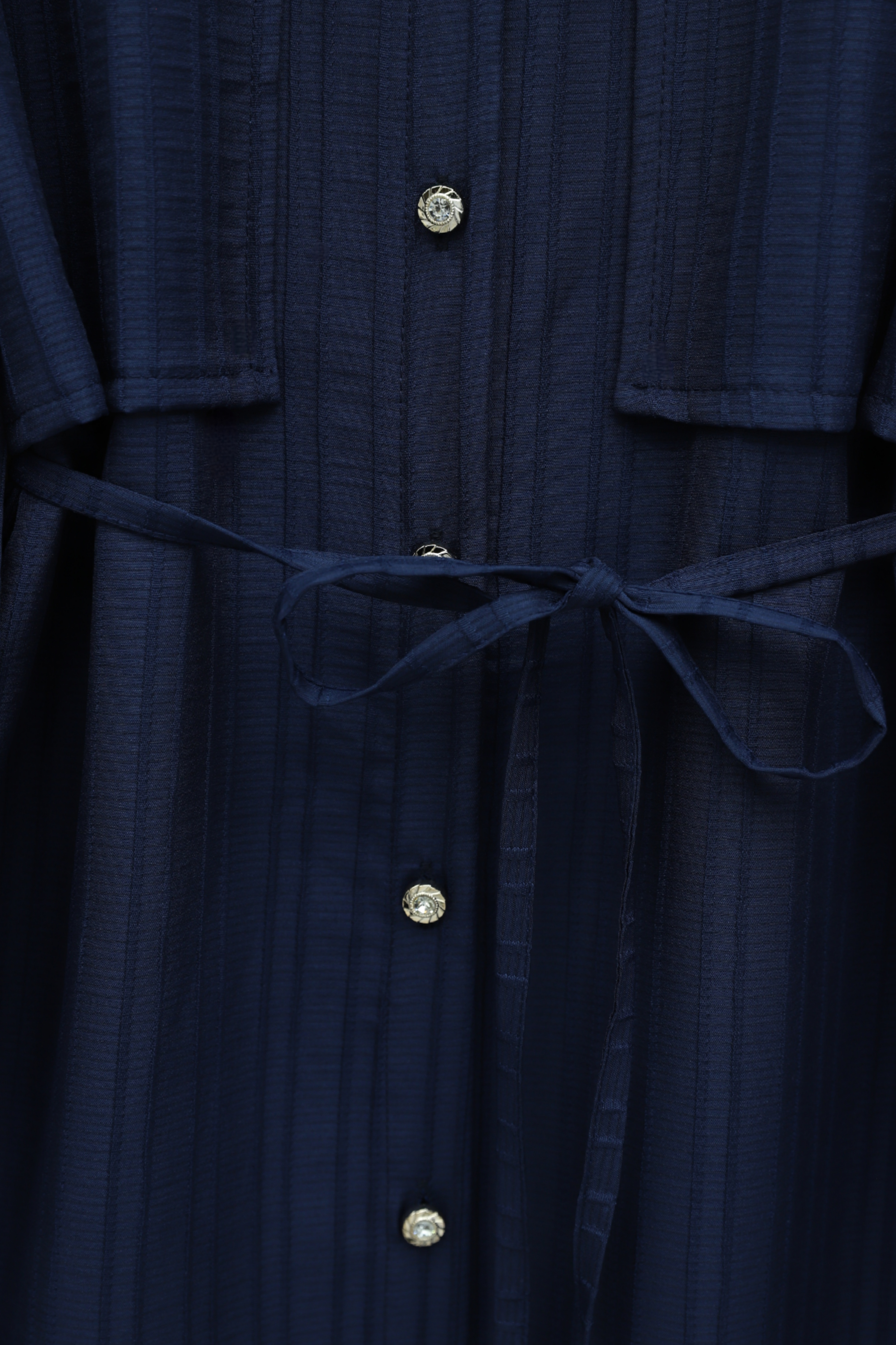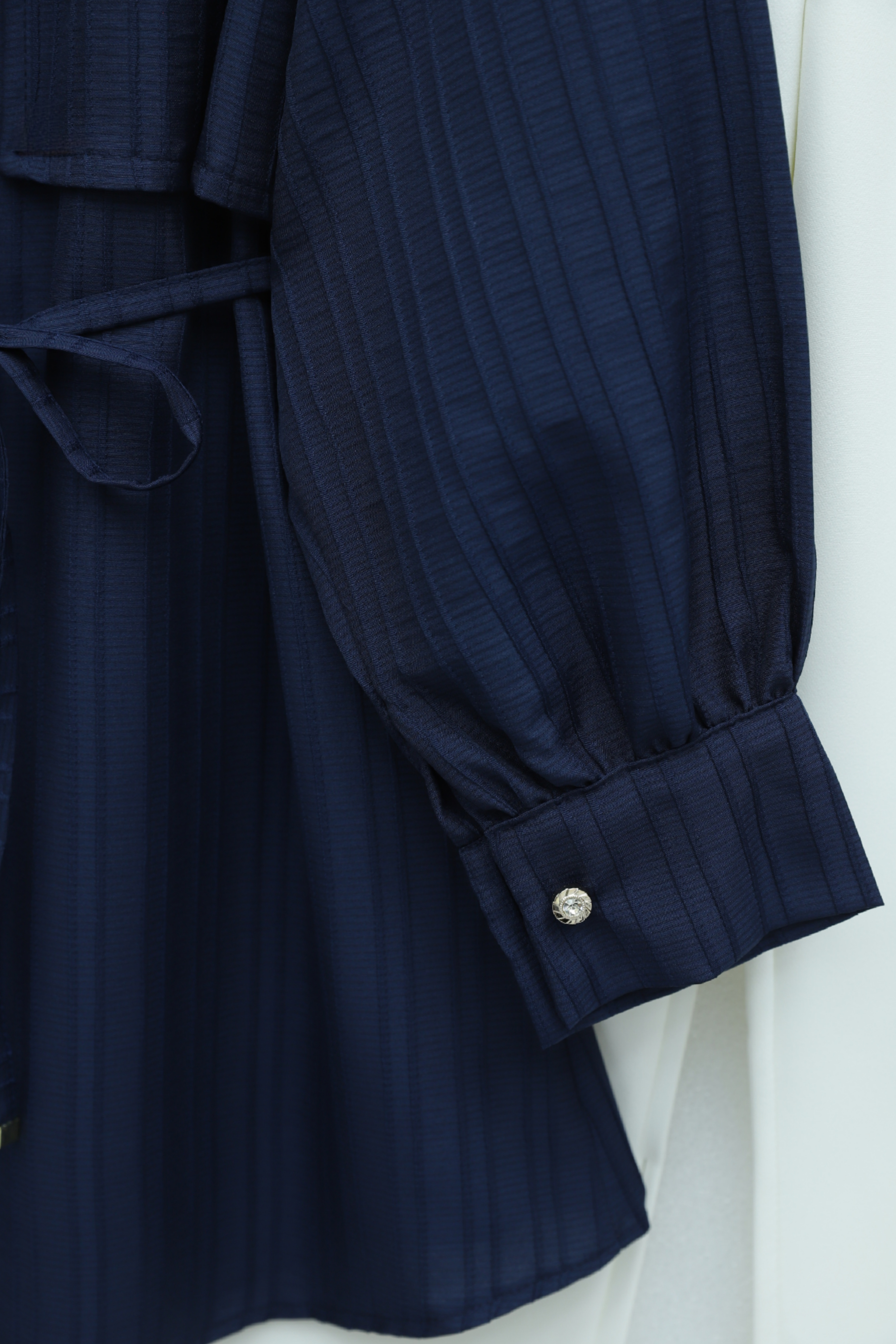 Tied Waist Bolero Detailed Stoned Button -Navy blue