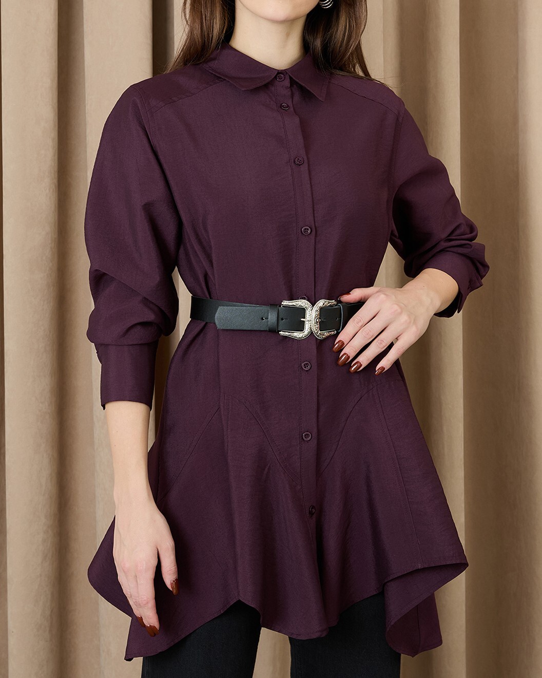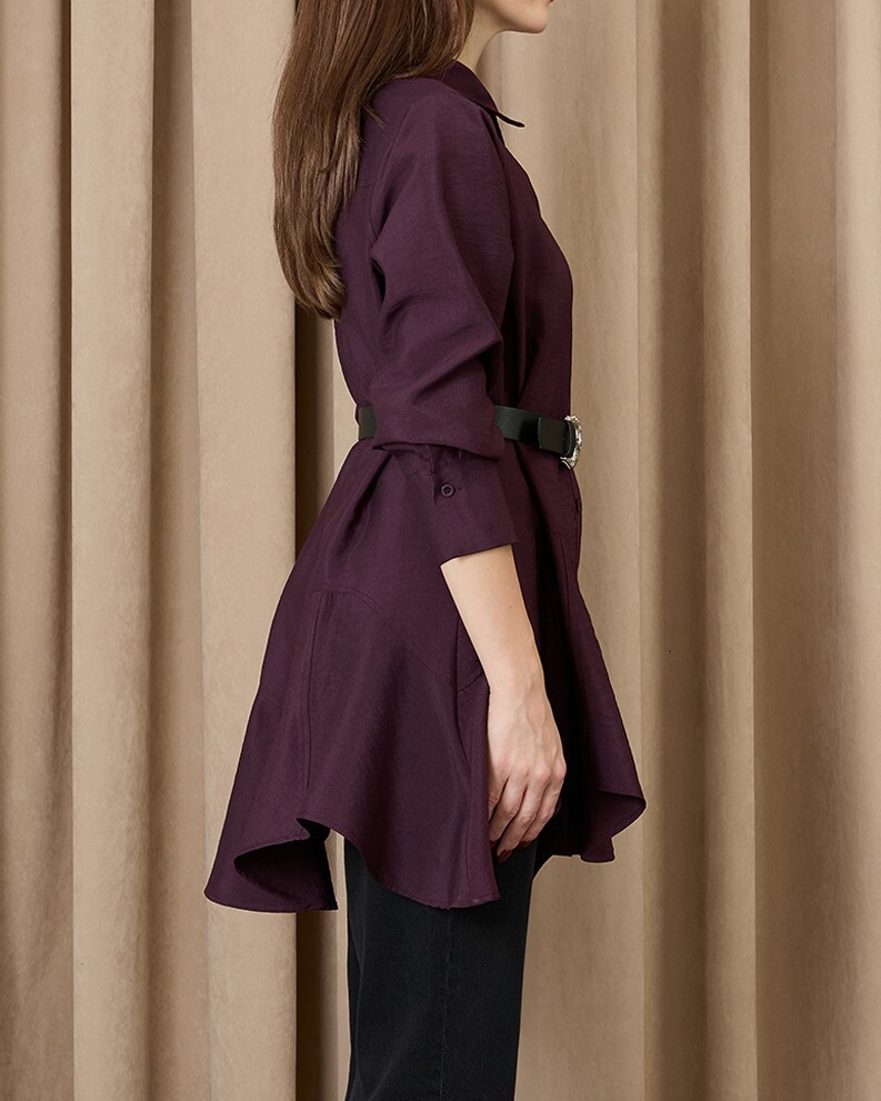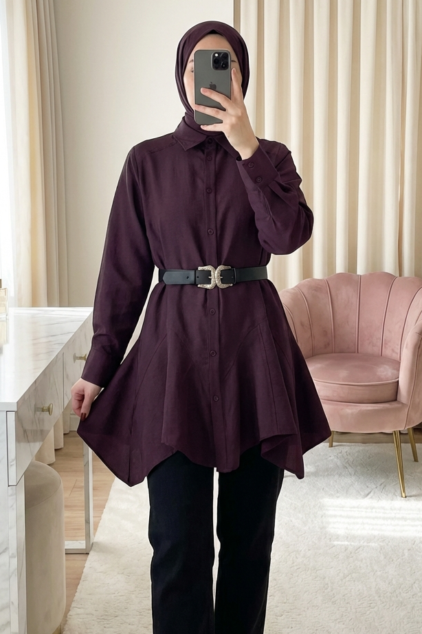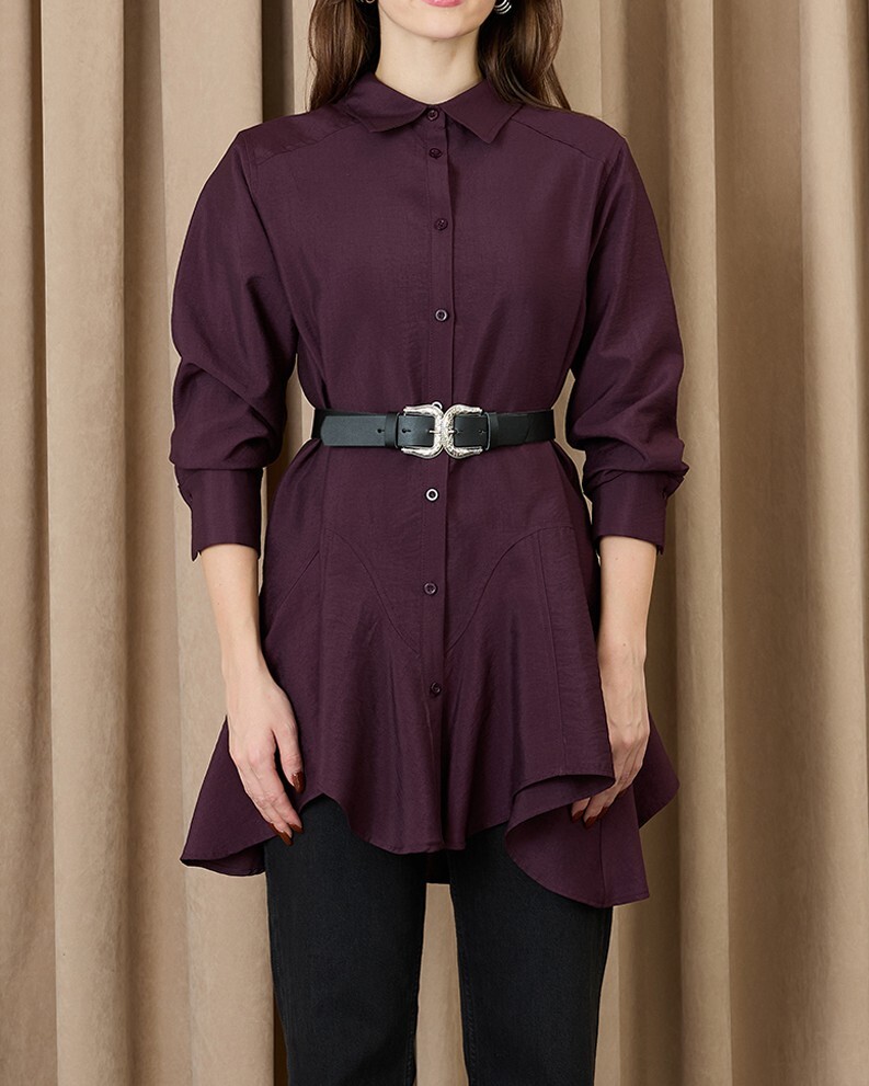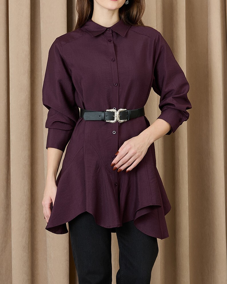 This belted shirt with stitching details stands out with its modern elegance, making it a special piece you can easily wear to both office outfits and everyday styles. The belt detail elegantly accentuates your figure, while the stitching details add a sophisticated look. Offering both style and comfort, this shirt will become one of the most versatile pieces in your wardrobe.