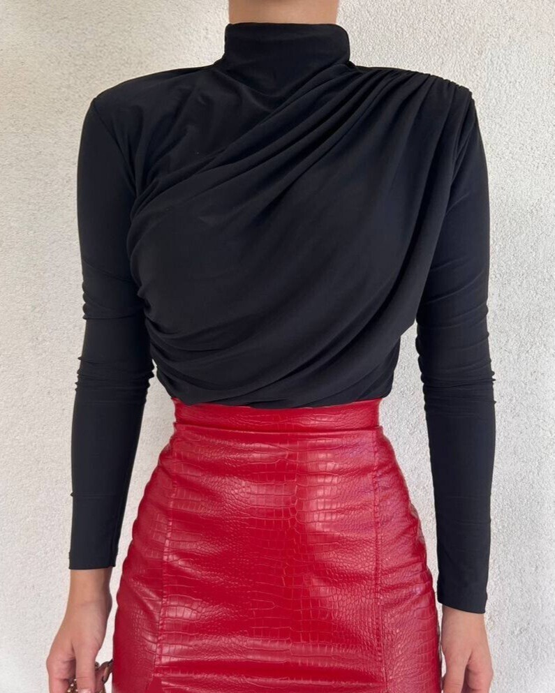Our turtleneck and front draped blouse model is among the most popular models of the new season.