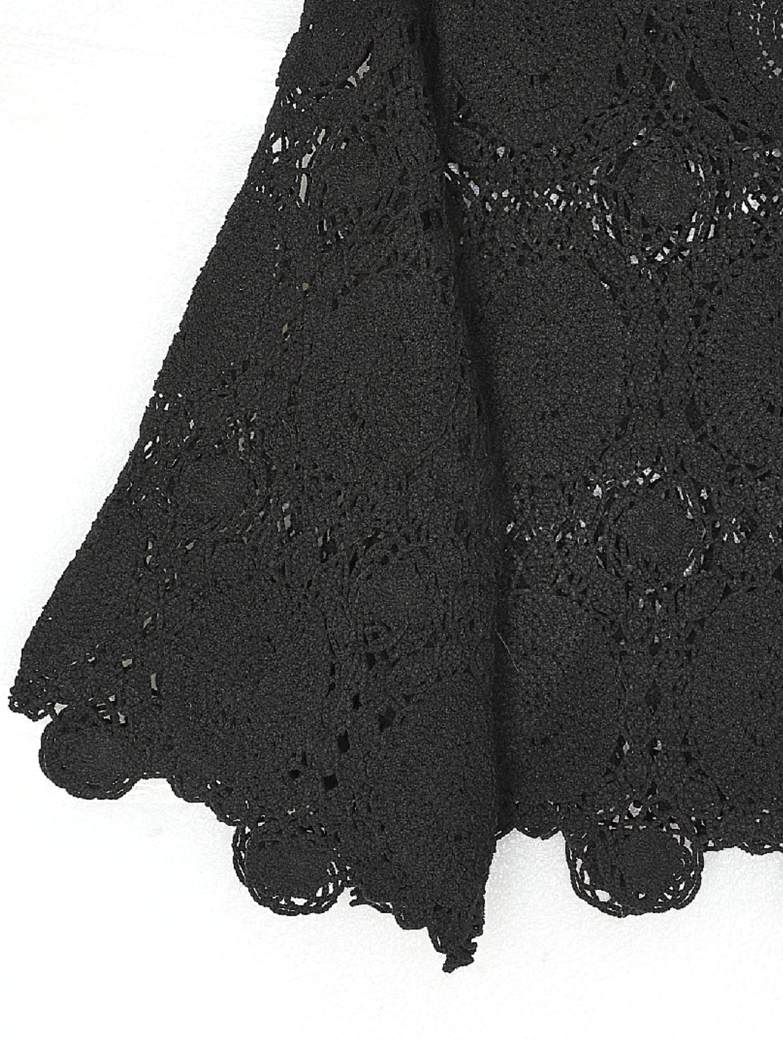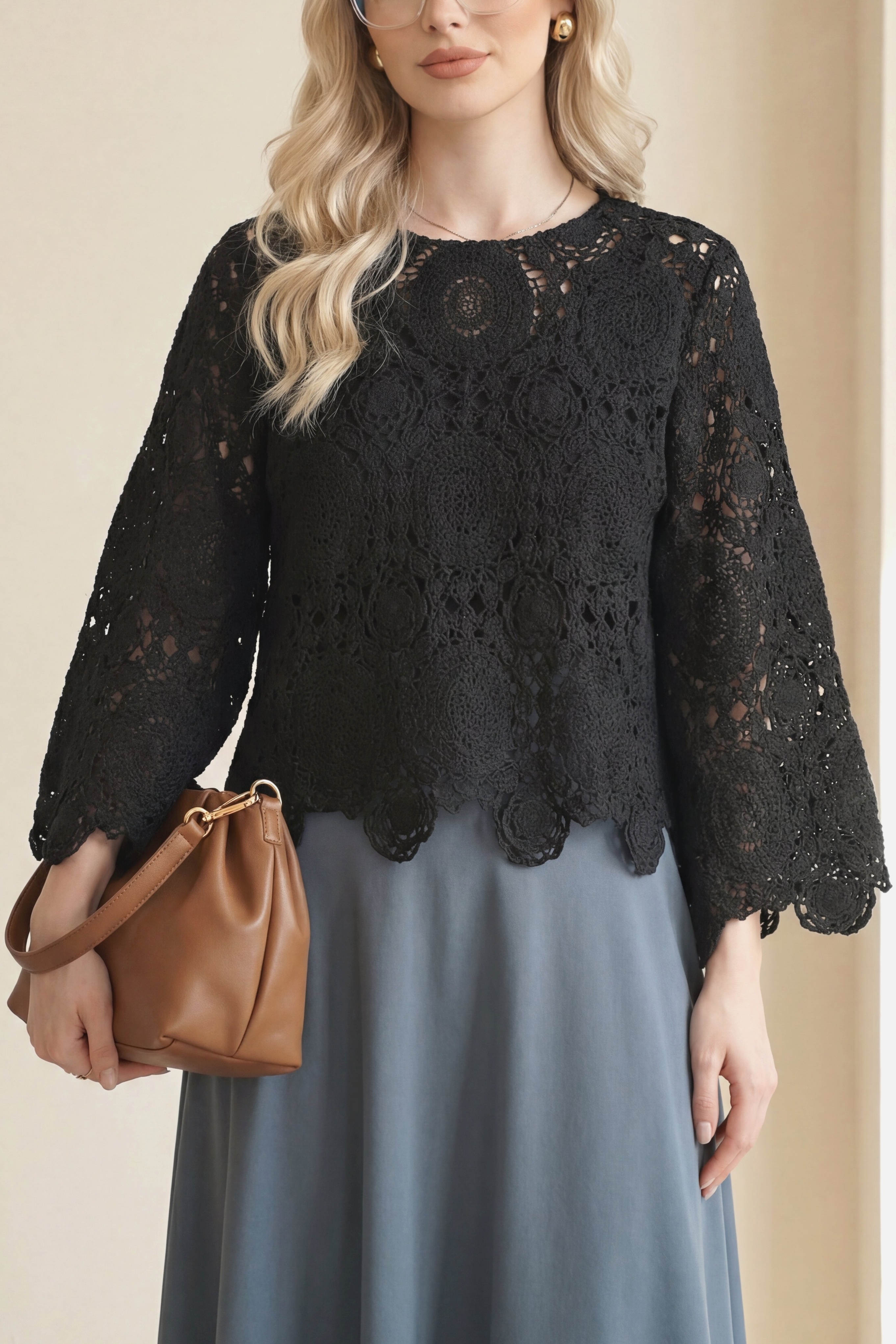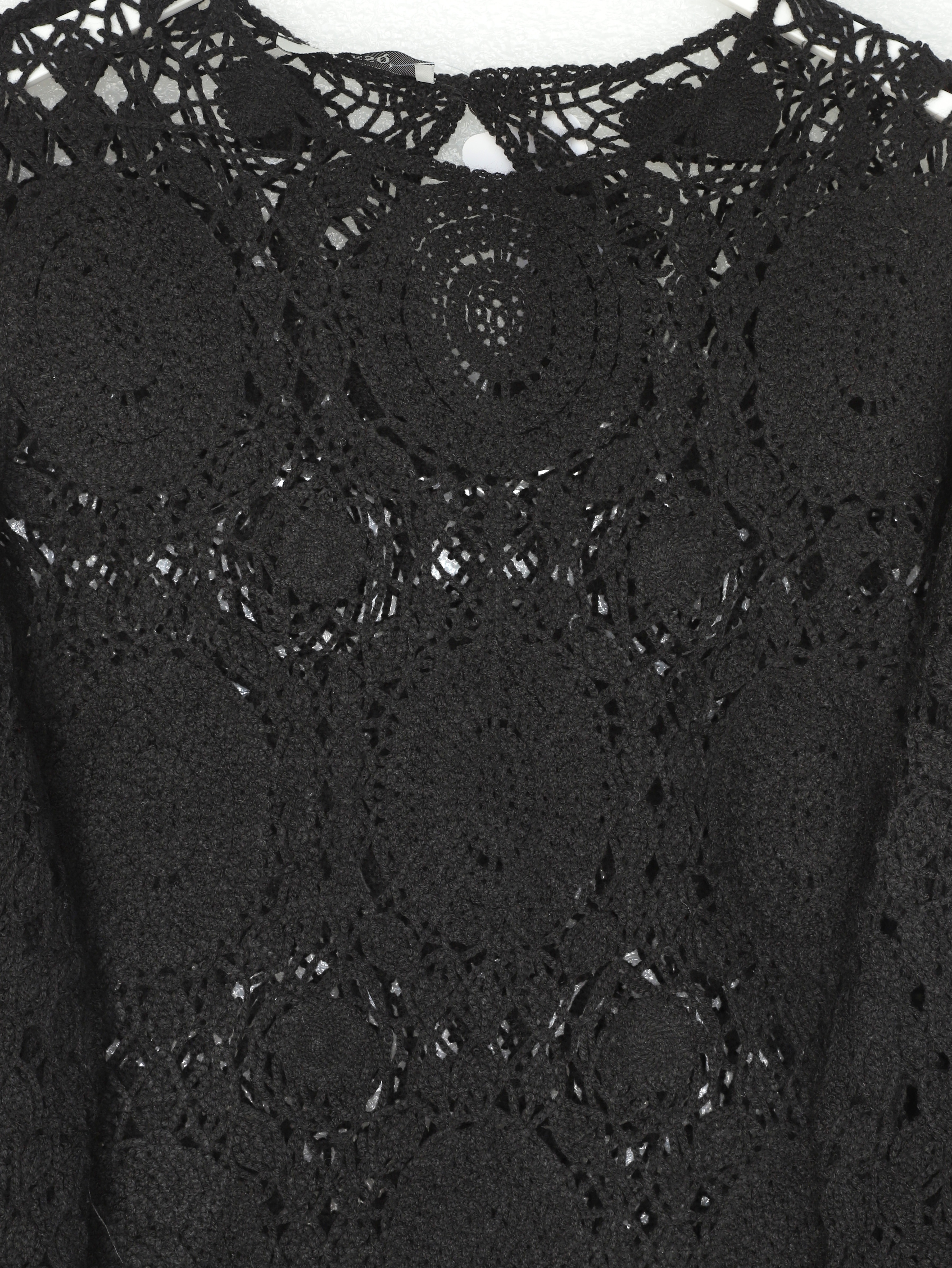 Round Neck Spanish Sleeve Knitted Blouse -Black