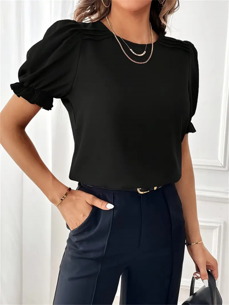 Women's Short Sleeve Crew Neck Gipel Imported Crepe Blouse