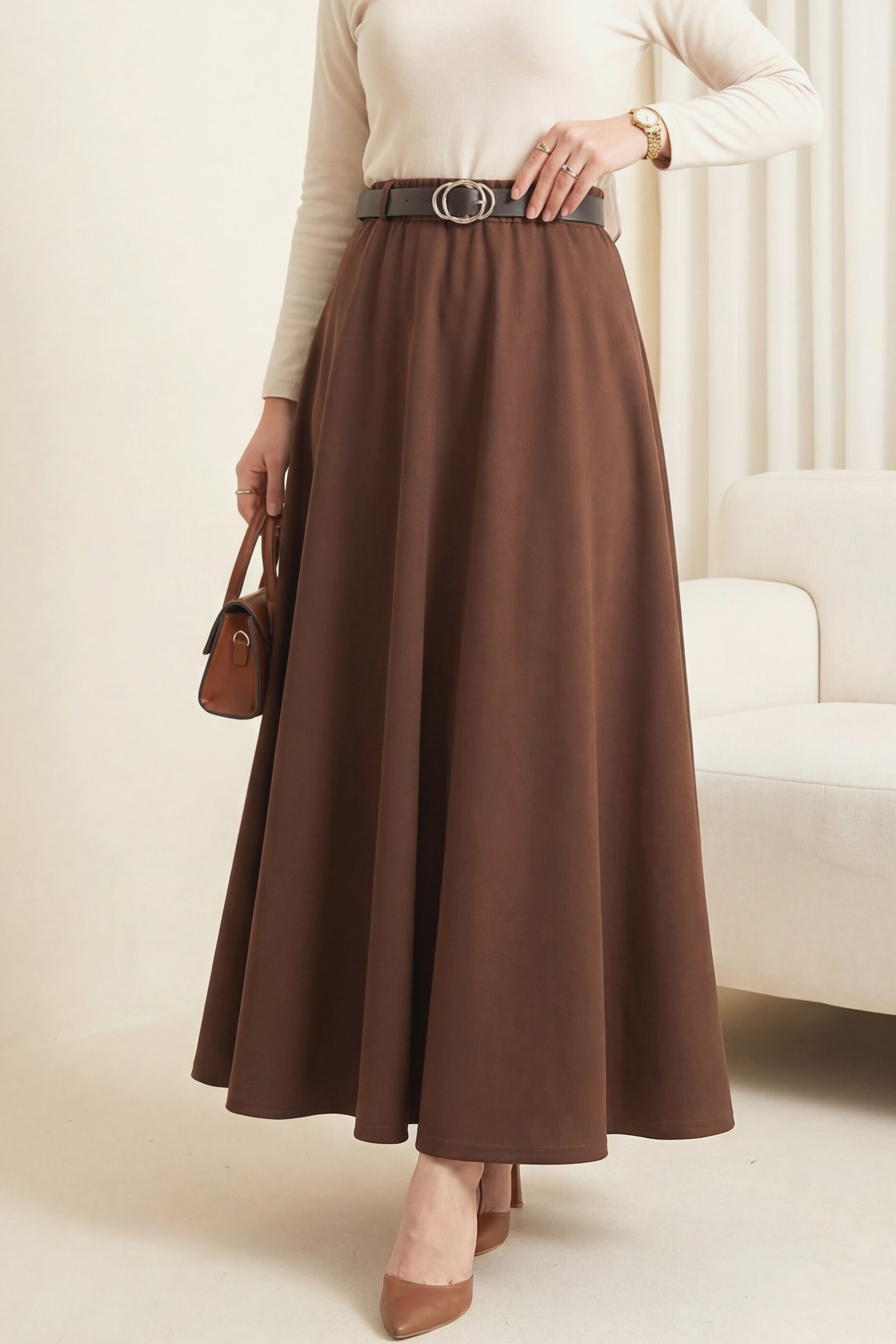 Beli Lastikli Kemerli Salaş Oyşo Etek -Brown