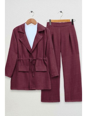Covered Tunnel Bridge Jacket Linen Set -Maroon
