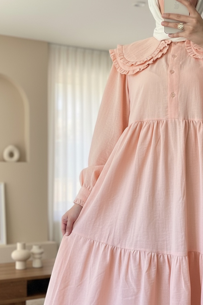 The baby collar, ruffled, panelled imported linen dress features an elegant and stylish design. Made from high-quality imported linen fabric, it offers both comfort and lightweight wear. The baby collar adds a nostalgic touch, while the ruffle details create a feminine and delicate look. The panelled design brings a modern elegance to the dress. Perfect for both casual wear and special occasions, this dress combines style and comfort seamlessly.