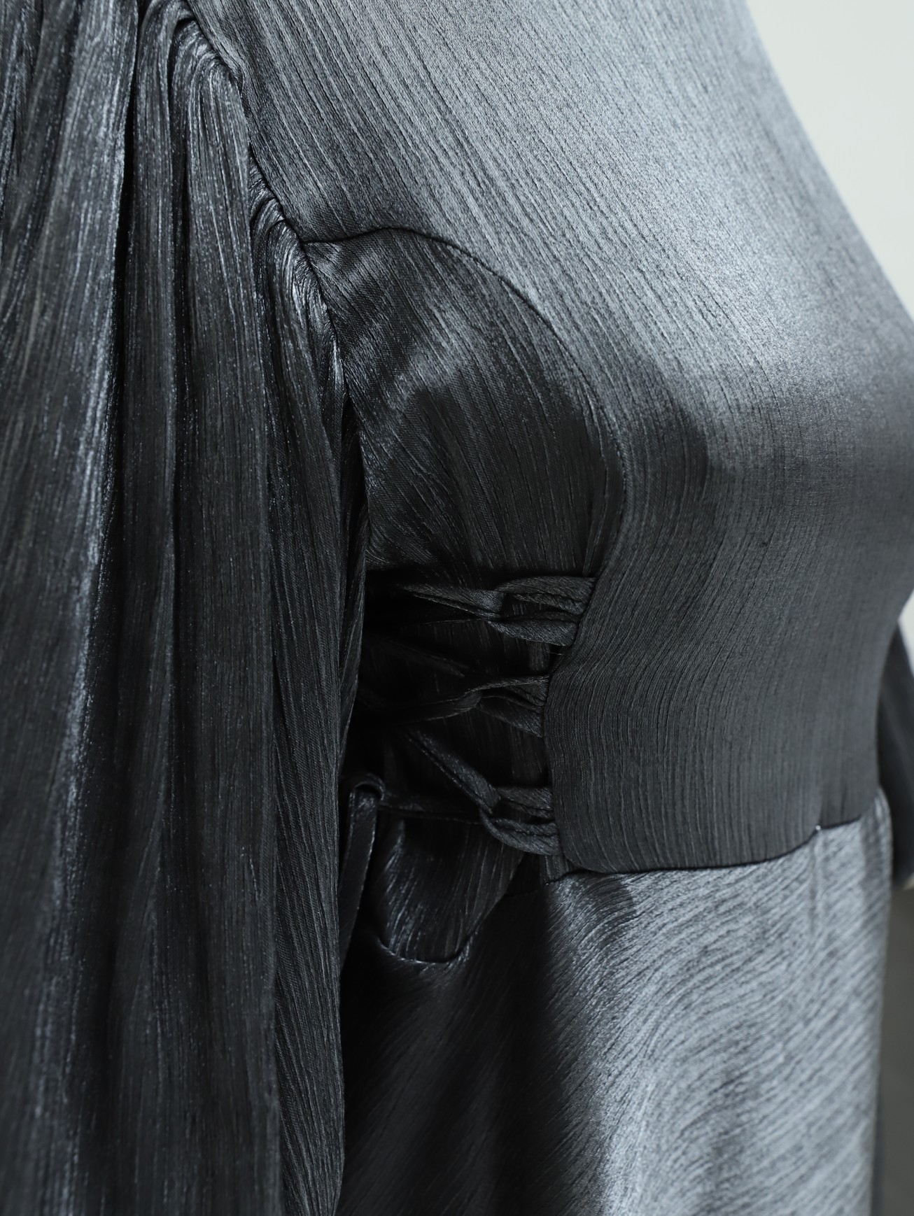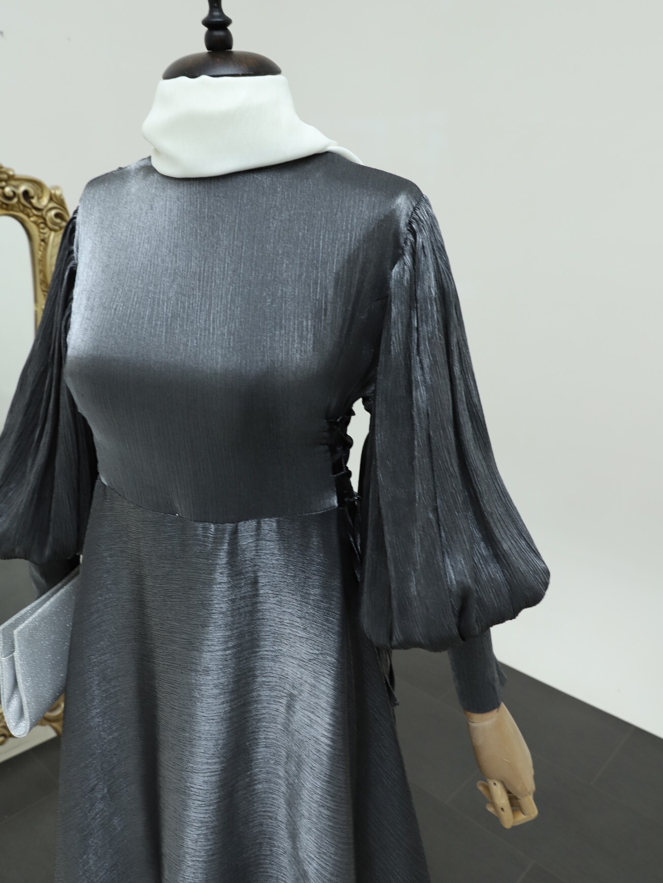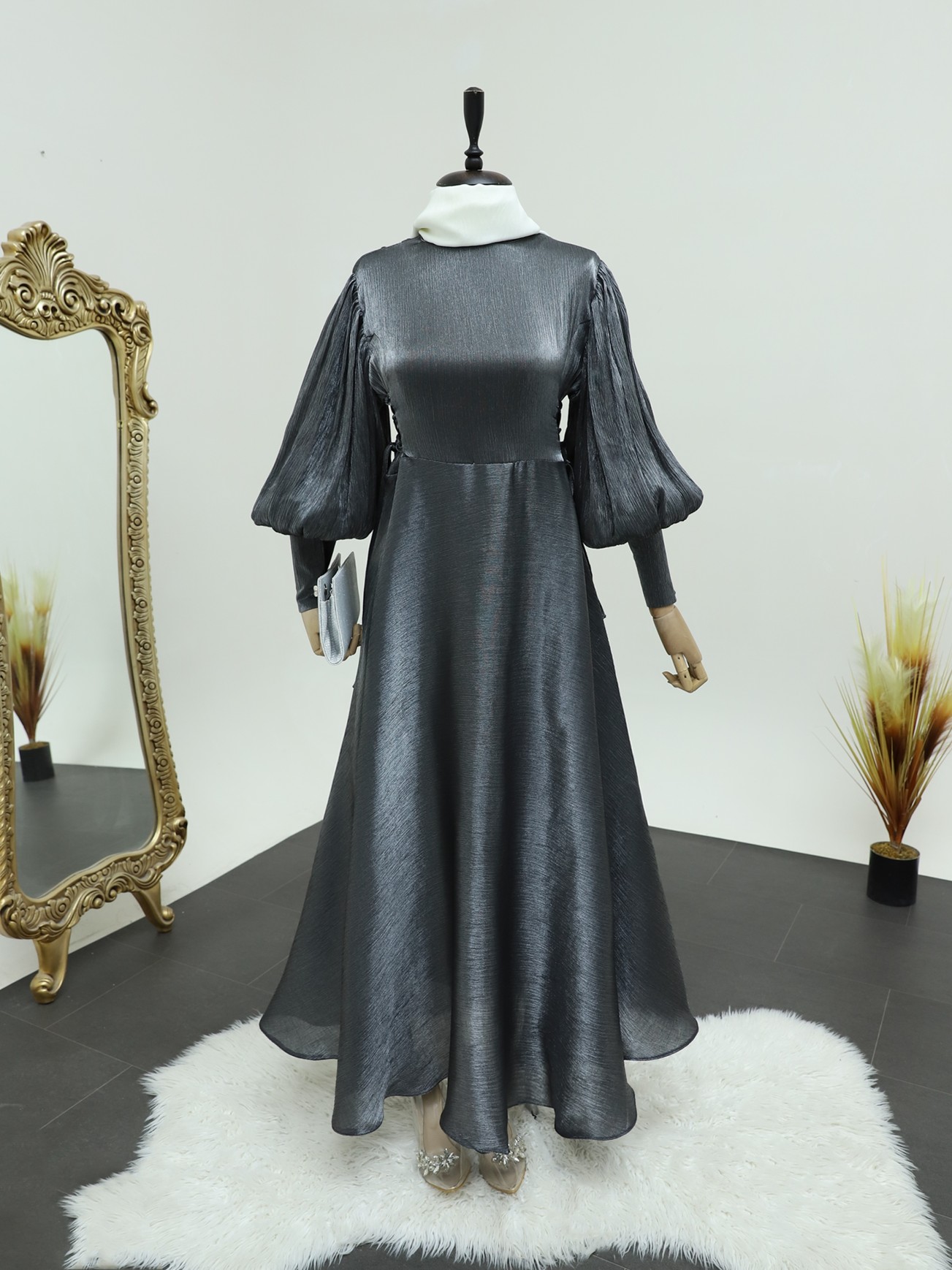 The side-tied balloon sleeve jacquard evening dress is a unique design that combines elegance and sophistication. The side tie detail adds a delicate touch, while the balloon sleeves create a modern look. The jacquard fabric offers rich texture and intricate patterns, enhancing the dress with depth and style. Perfect for special occasions and evening events, this dress offers a graceful and eye-catching appearance.