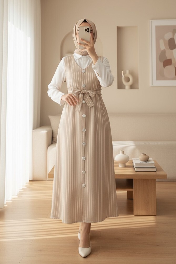 Depending on the user and region, this product can also be called a comfortable gilet, hijab gilet, daily gilet, seasonal gilet, belted gilet, striped gilet.