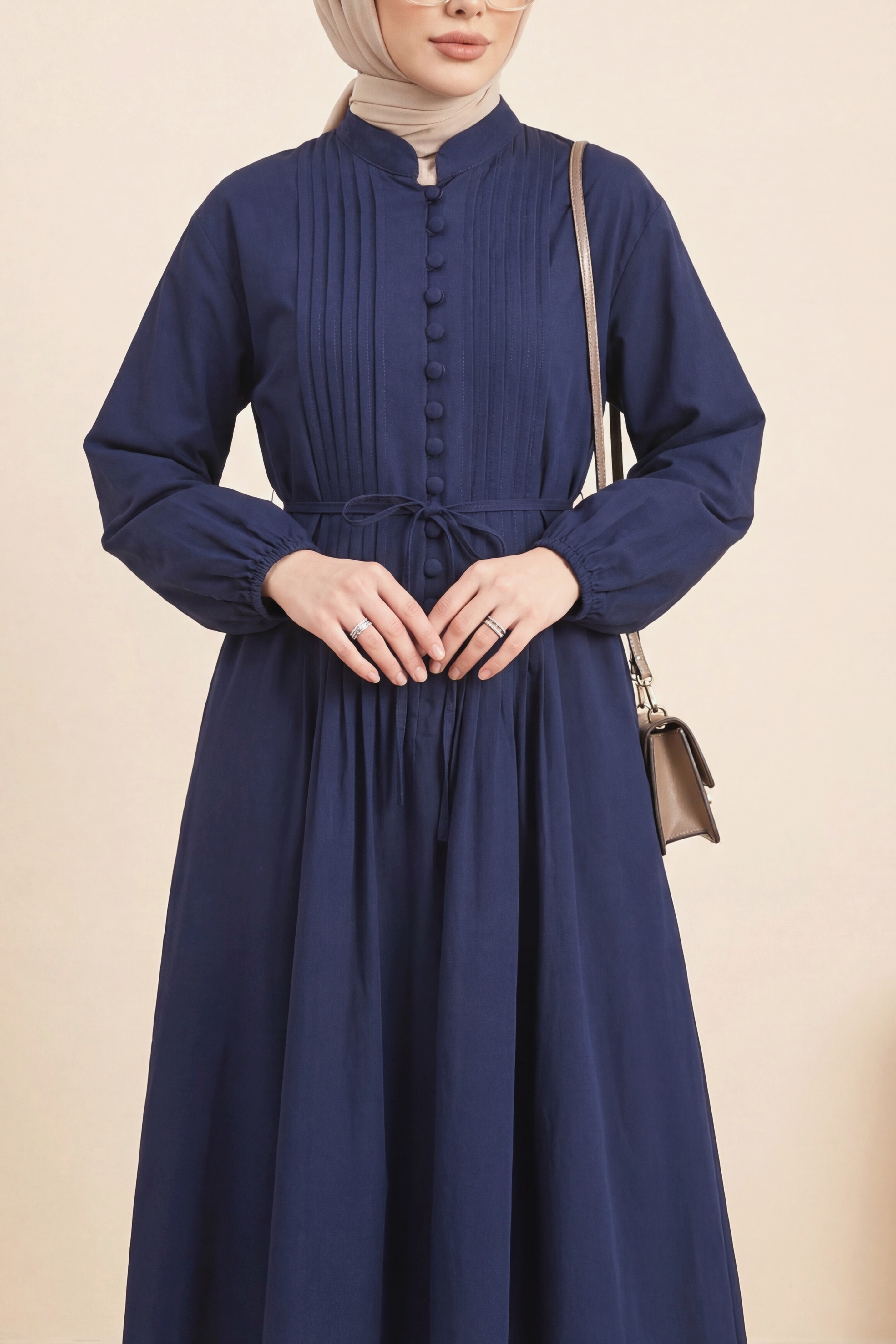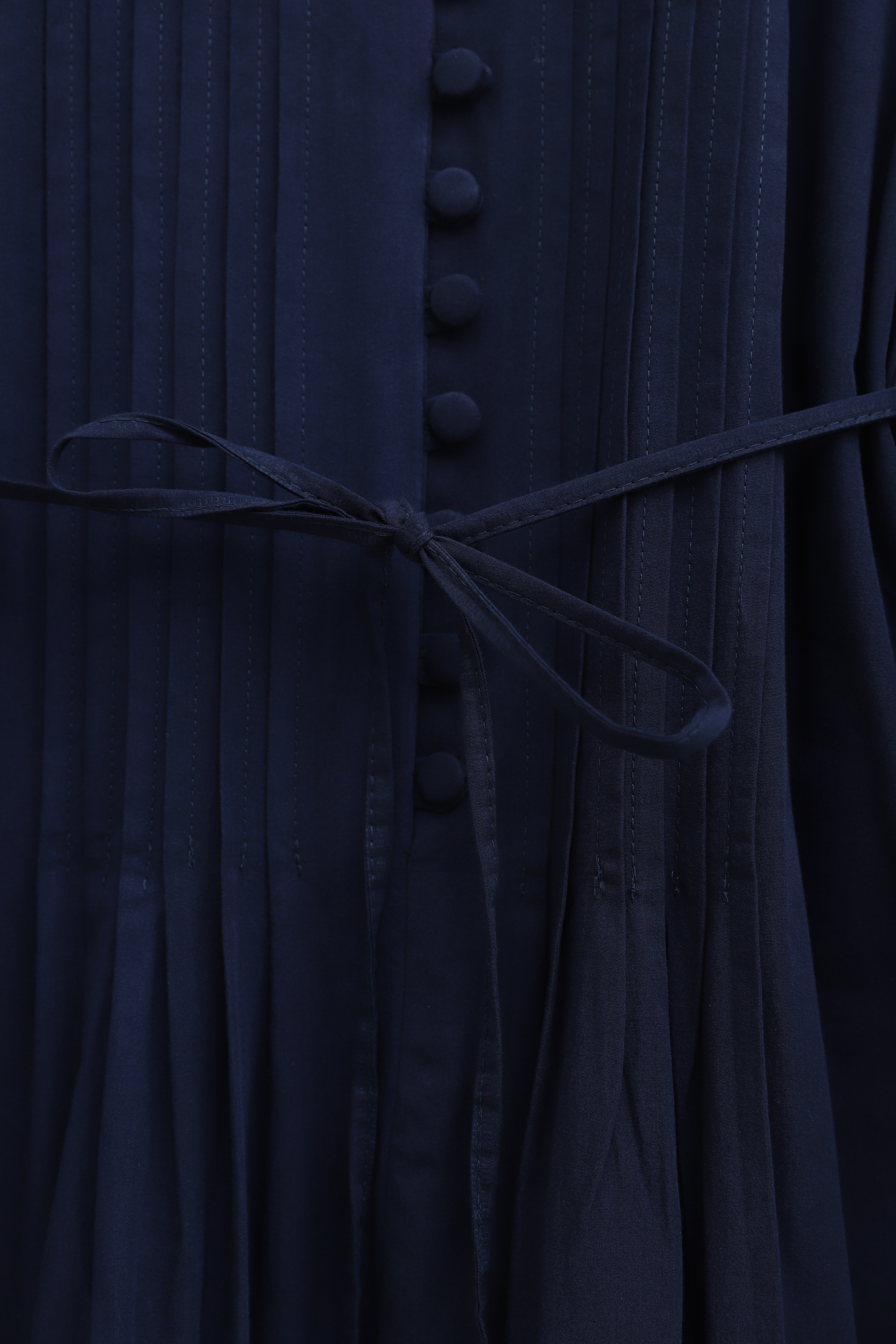 Front Ribbed Half-Button Poplin Dress -Navy blue