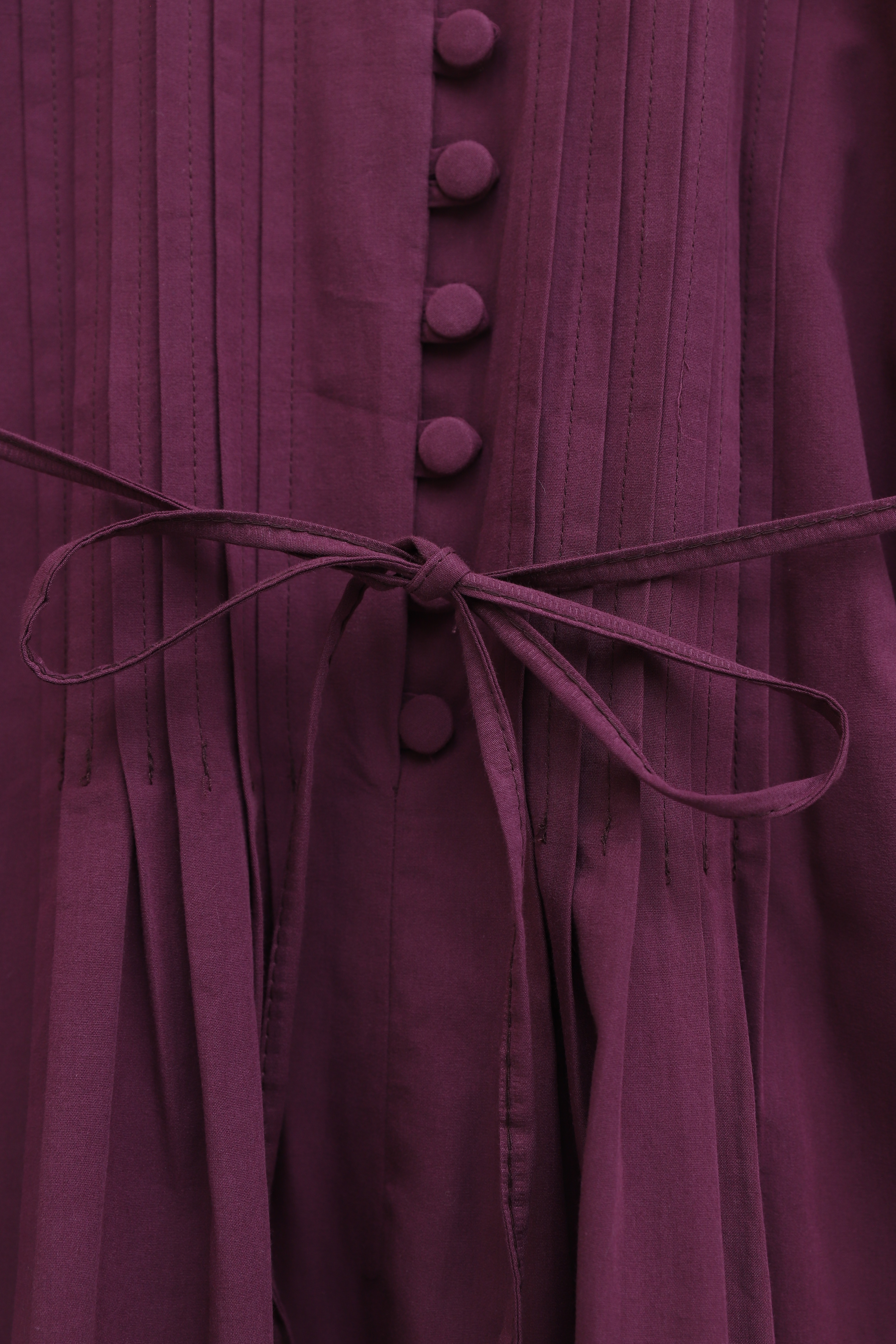Front Ribbed Half-Button Poplin Dress -Damson