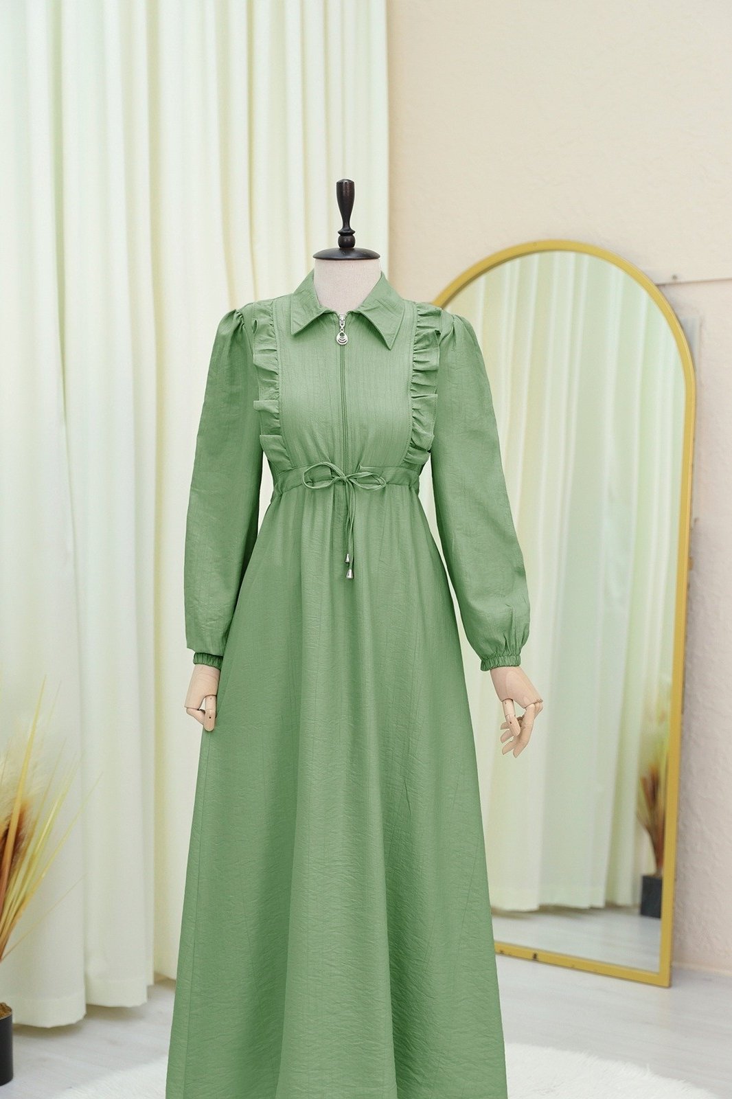 Covered Tunnel Bridge Jacket Linen Set -Green