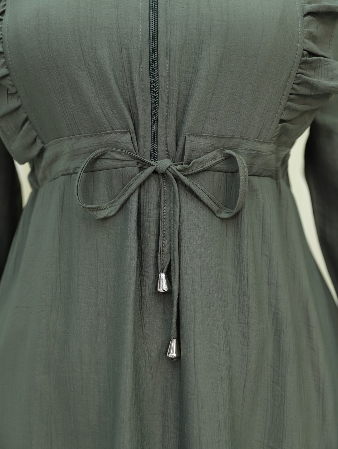 Fitted Crinkle Shirt with Waist Tie -Sea green