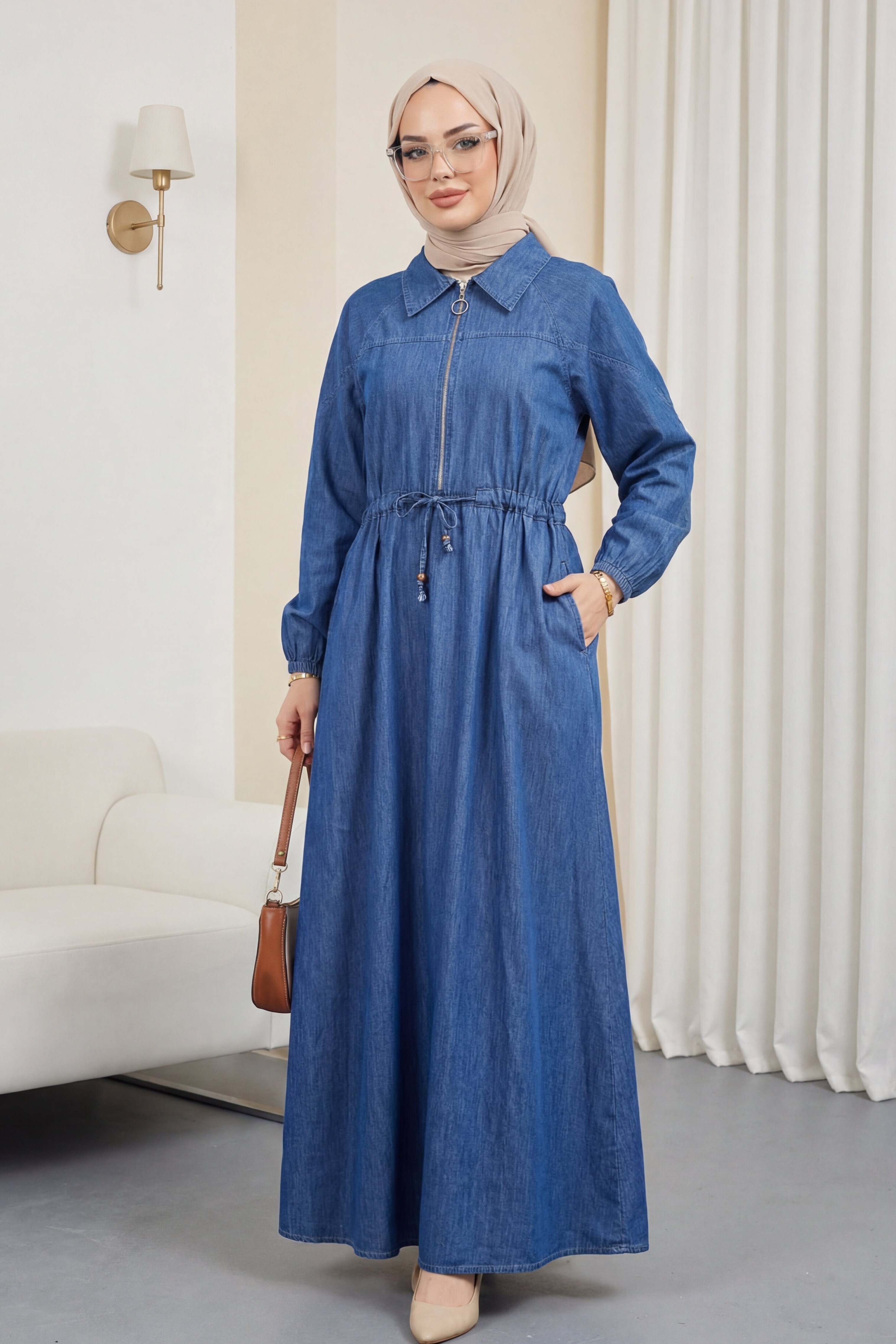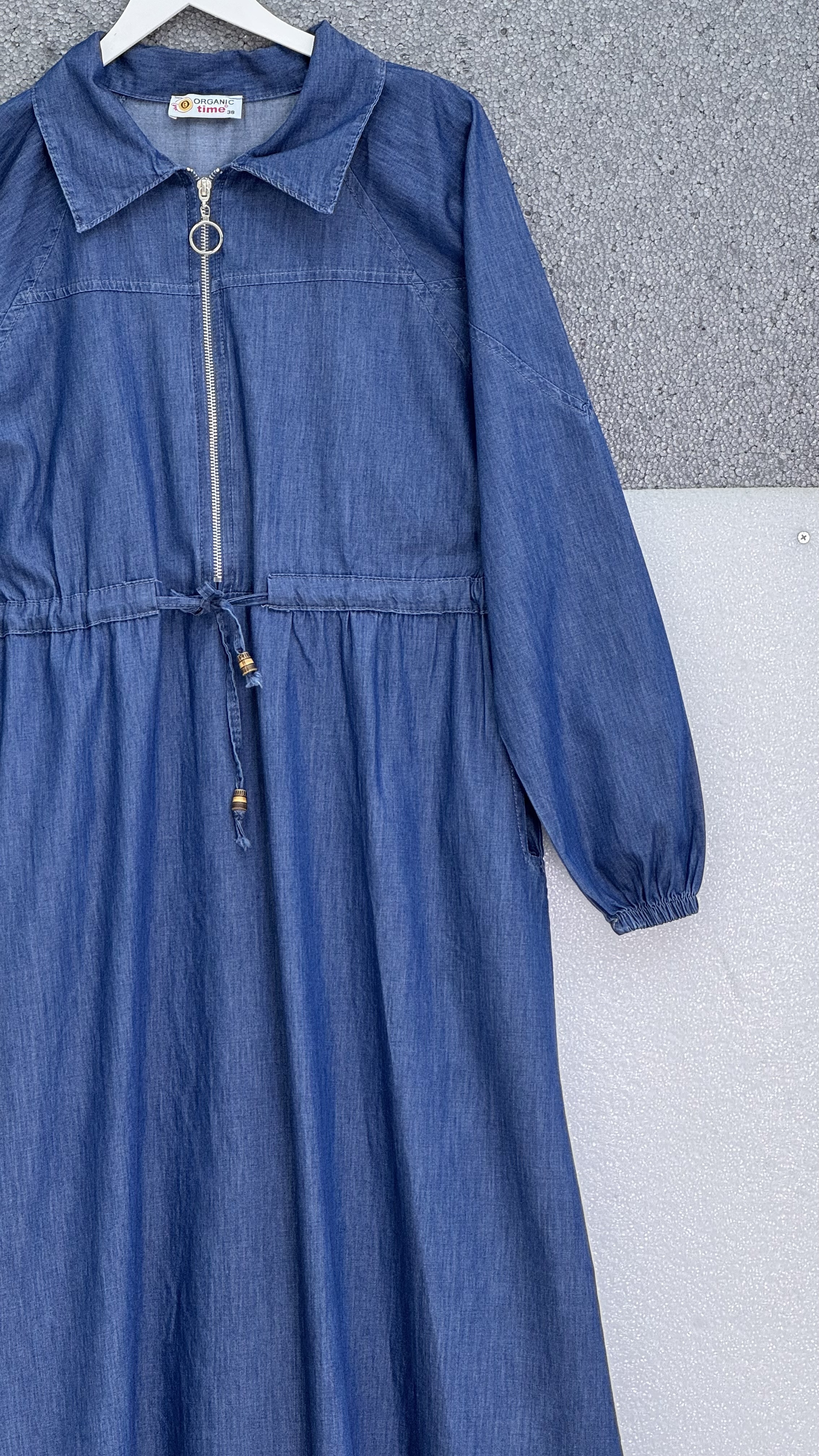 Wide Leg Waist Elastic Lacing Detail Jeans -Blue